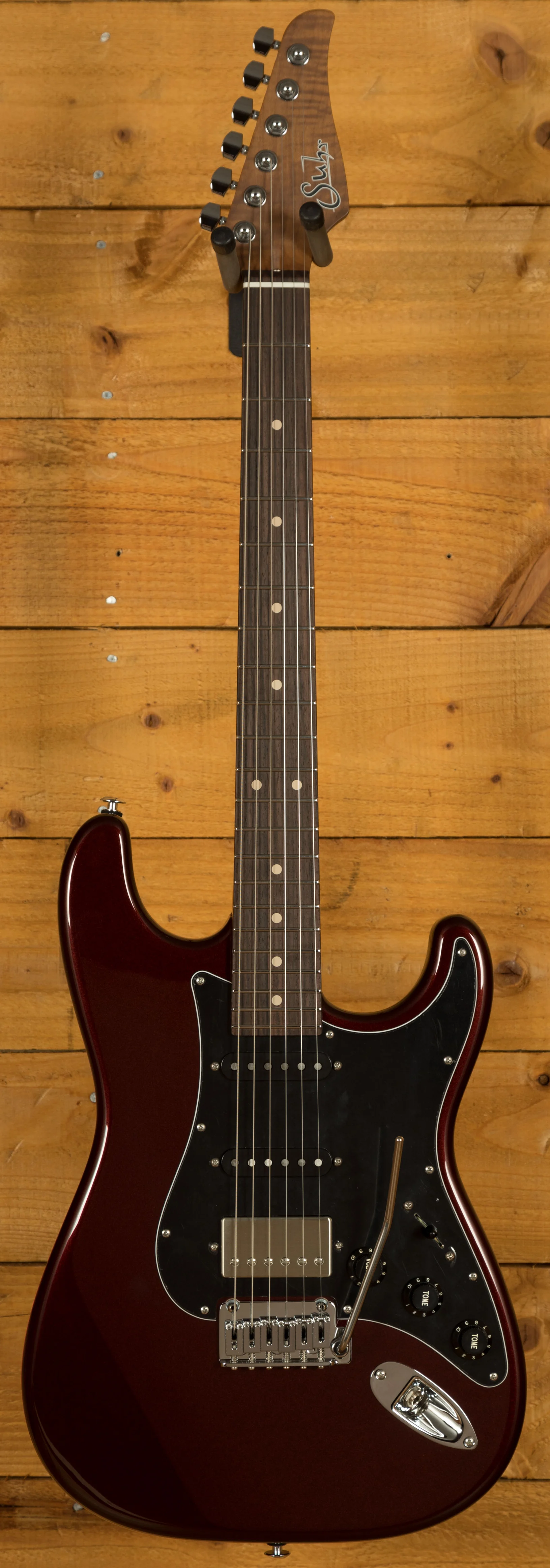 Benefitting from 2 V60LP single coil pickups it replicates those famous Strat tones, rich, punchy and ready to growl. With a Suhr SSH humbucker at the bridge you get even greater tonal variation. The Classic S Metallic is versatile and adaptable and boosted by the Suhr SSCII, a completely transparent noise reduction system. Installed inside the body, it reduces 60 cycle hum and has no effect on tone, it just helps keep those crystal clear tones ringing!