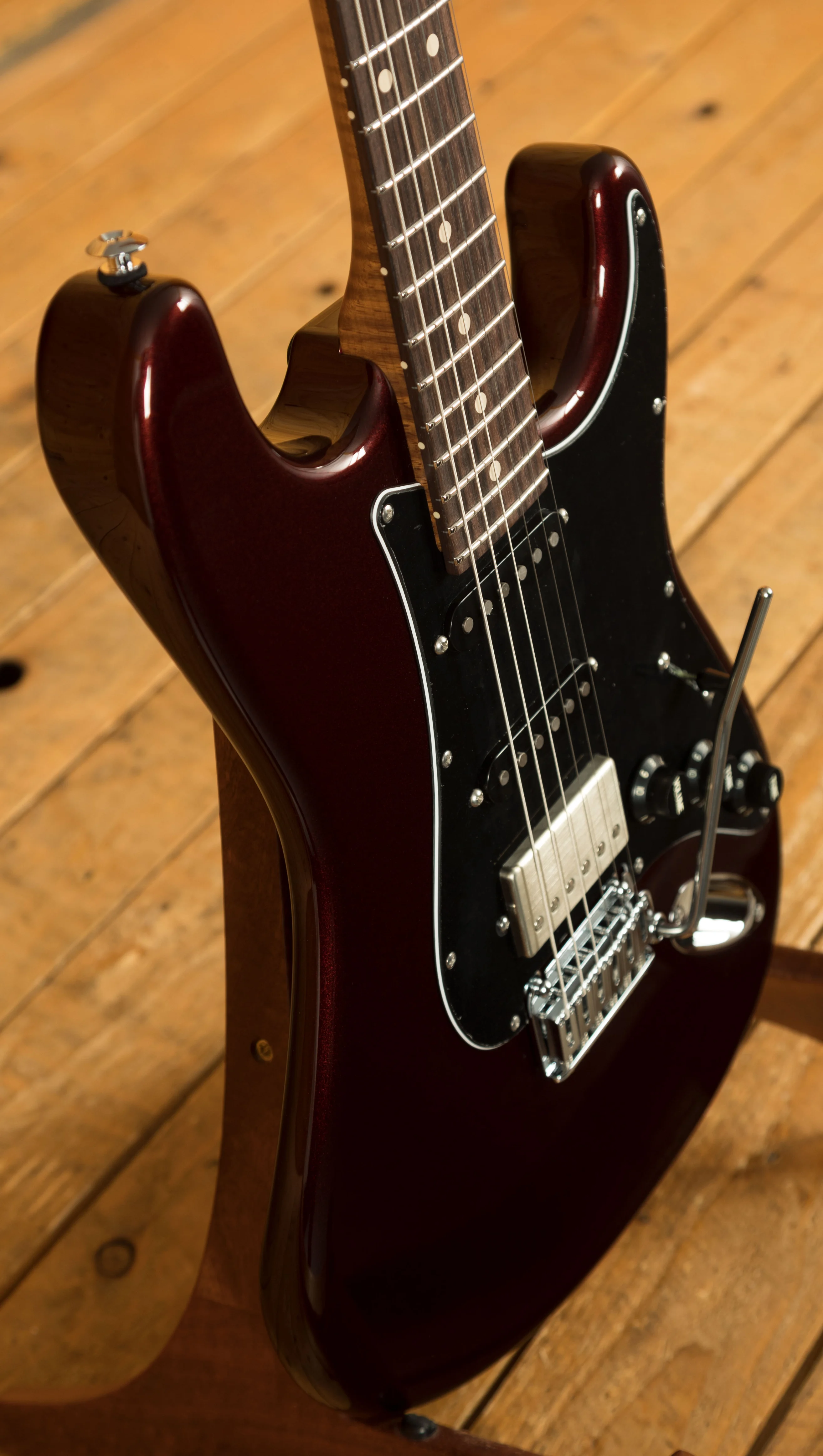 The Roasted Flame Maple neck has an Even C Slim profile for a really comfortable experience underhand and with a 10"-14" compound radius it really can cope with anything you throw at it! The Indian Rosewood fingerboard and Jumbo stainless steel frets fuse luxury and practicality for a flawless playing surface.
