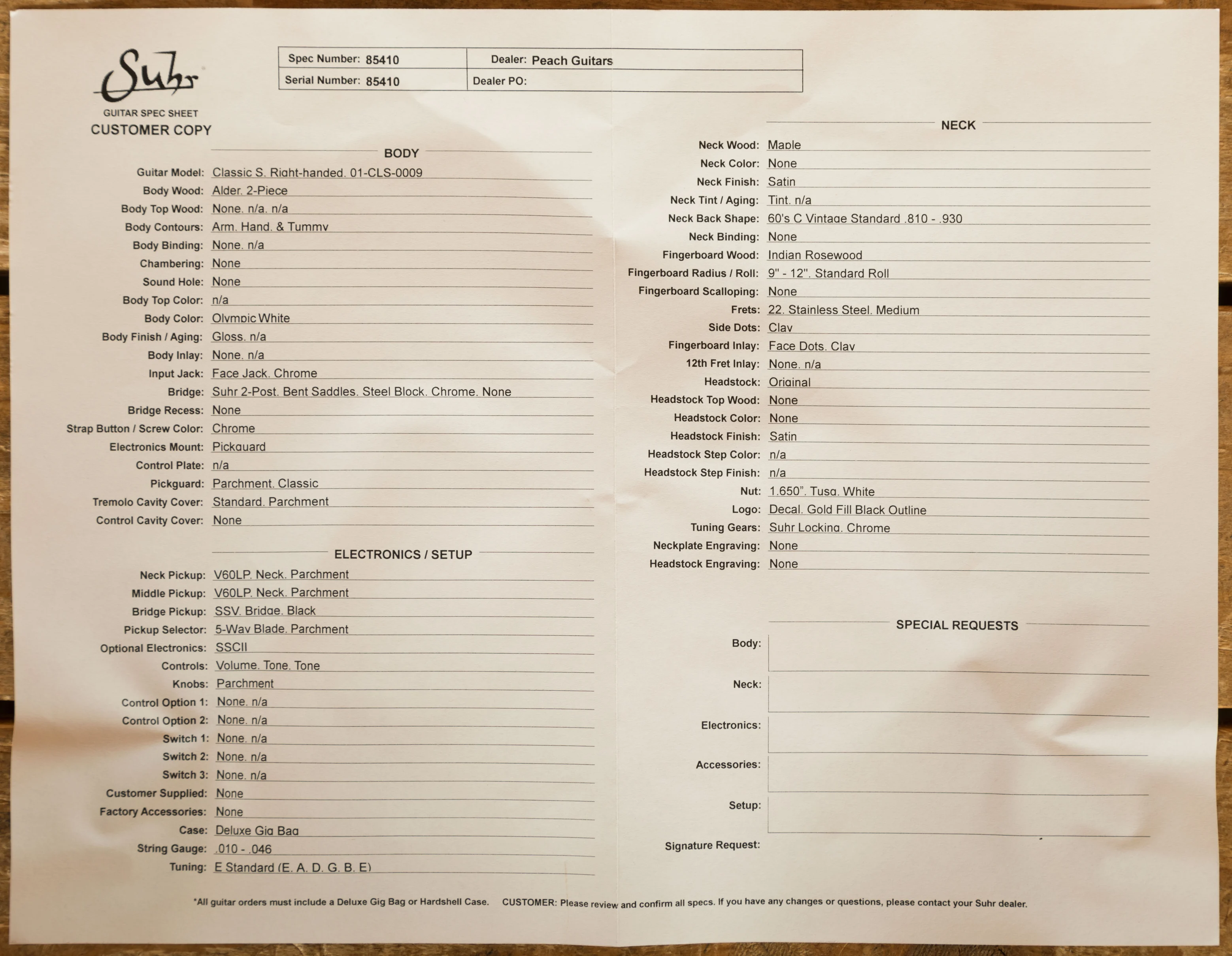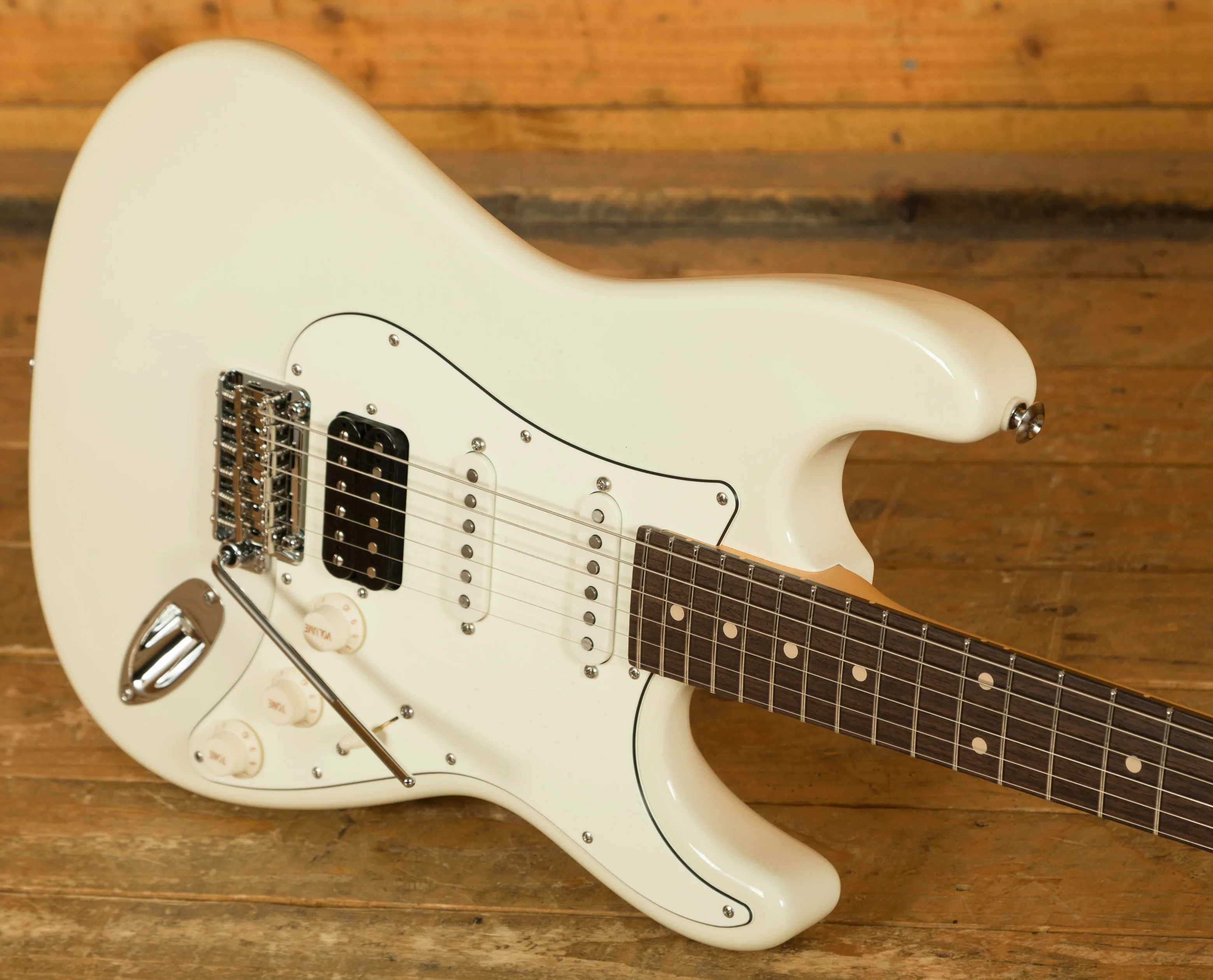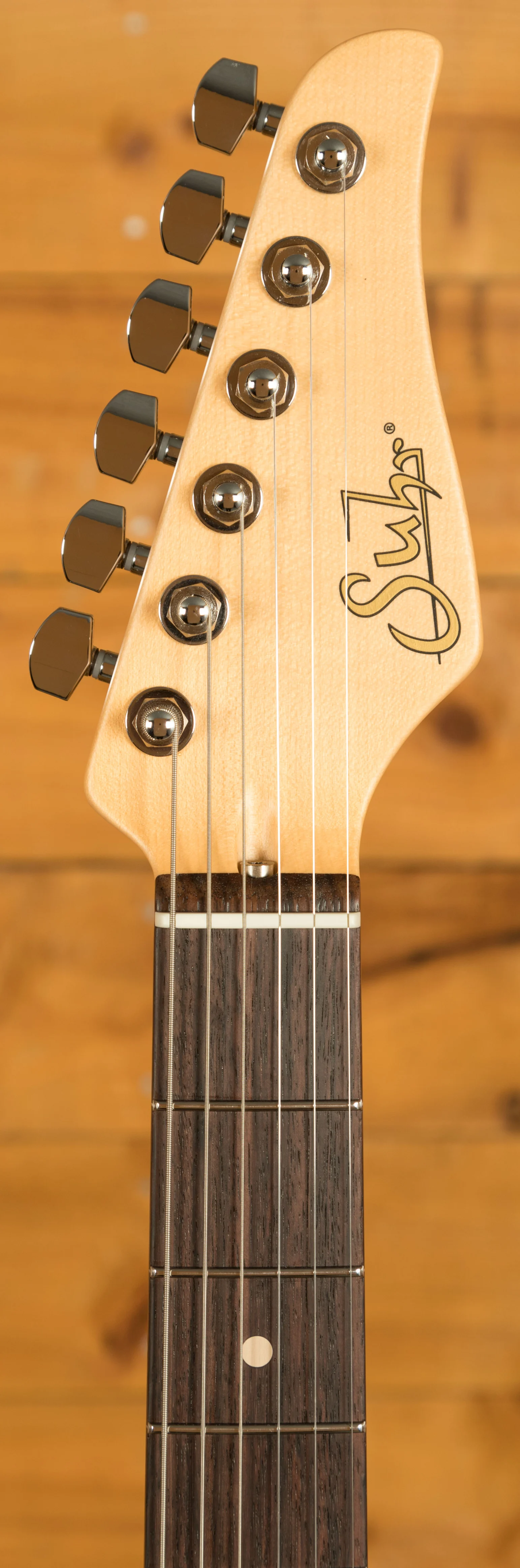 The Maple neck has a satin finish for a smooth, slick feel. With a 60's C vintage standard (.810"-.930") profile, 22 medium stainless steel rolled frets, a 9''-12'' radius, and an Indian Rosewood fingerboard this a substantial but real comfortable guitar.