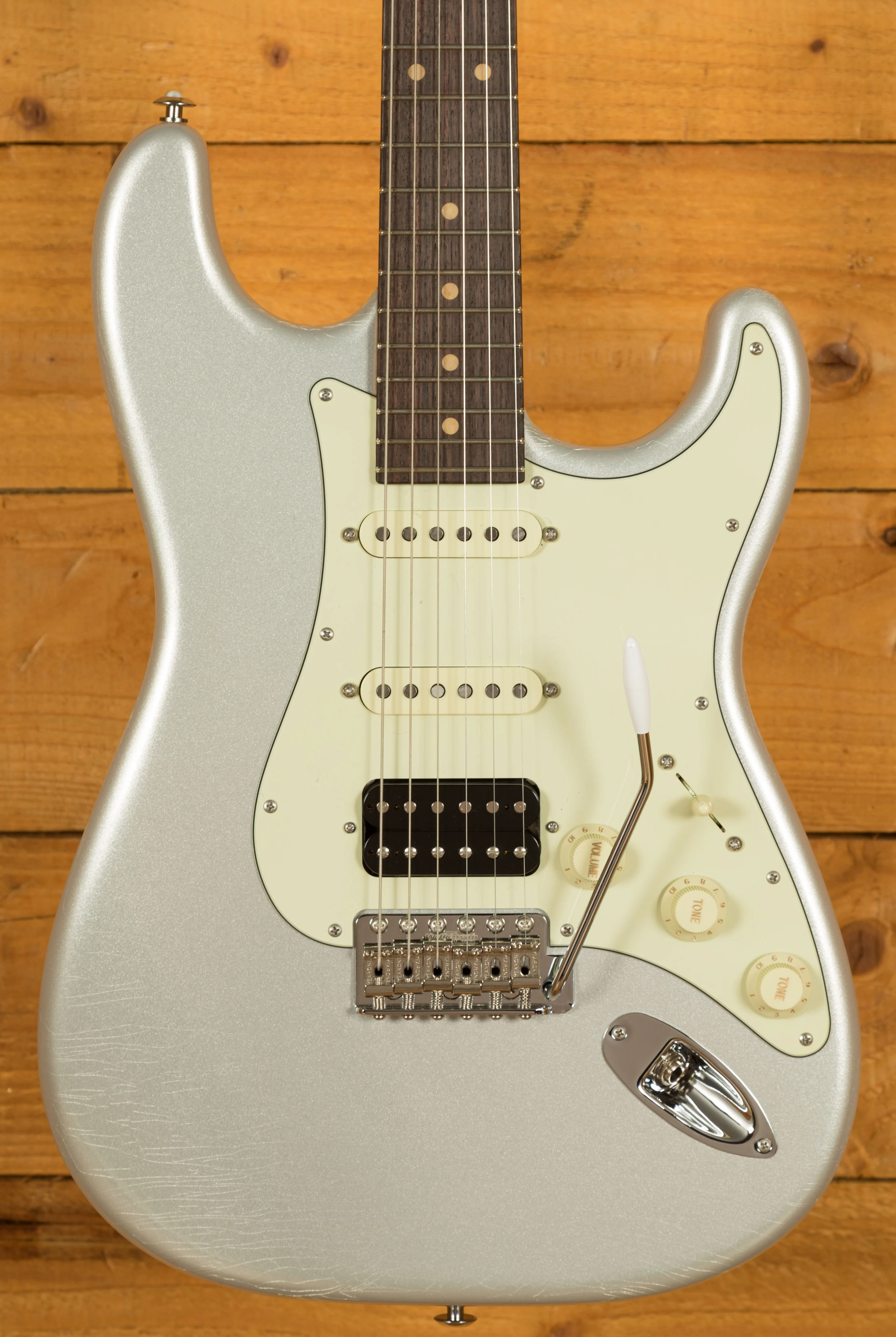 The Classic S Vintage features a 3-piece Alder body with a lightly aged lacquer finish, providing an authentic vintage aesthetic. The oiled Roasted Maple neck, Rosewood fingerboard, and nickel frets contribute to the warm, classic tone reminiscent of guitars from the past. The 9-12" compound radius fretboard ensures effortless playability across the entire 60's vintage standard neck, giving you the freedom to explore your musical creativity.