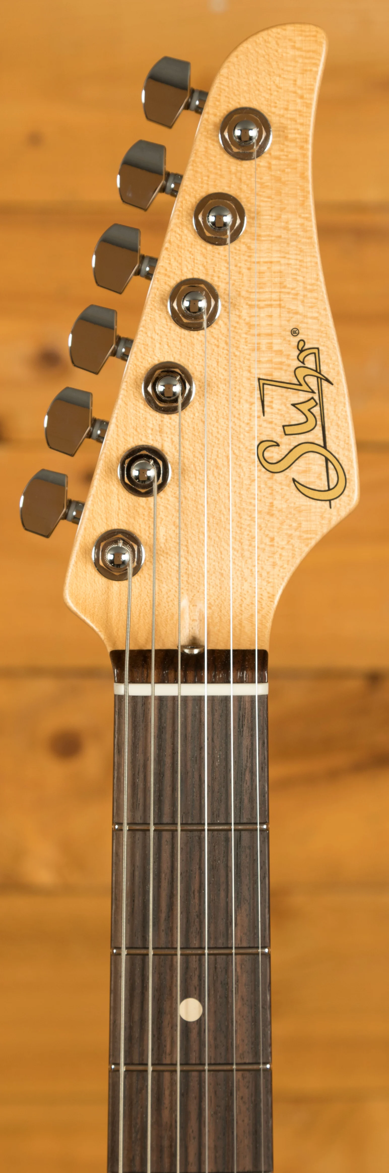 Benefitting from A Classic T bridge pickup it replicates those famous Tele tones, rich, punchy and ready to growl. A Classic T single coil sits nicely at the neck, it's a versatile and adaptable set up boosted by the Suhr SSCII, a completely transparent noise reduction system. Installed inside the body, it reduces 60 cycle hum and has no effect on tone, it just helps keep those crystal clear tones ringing!