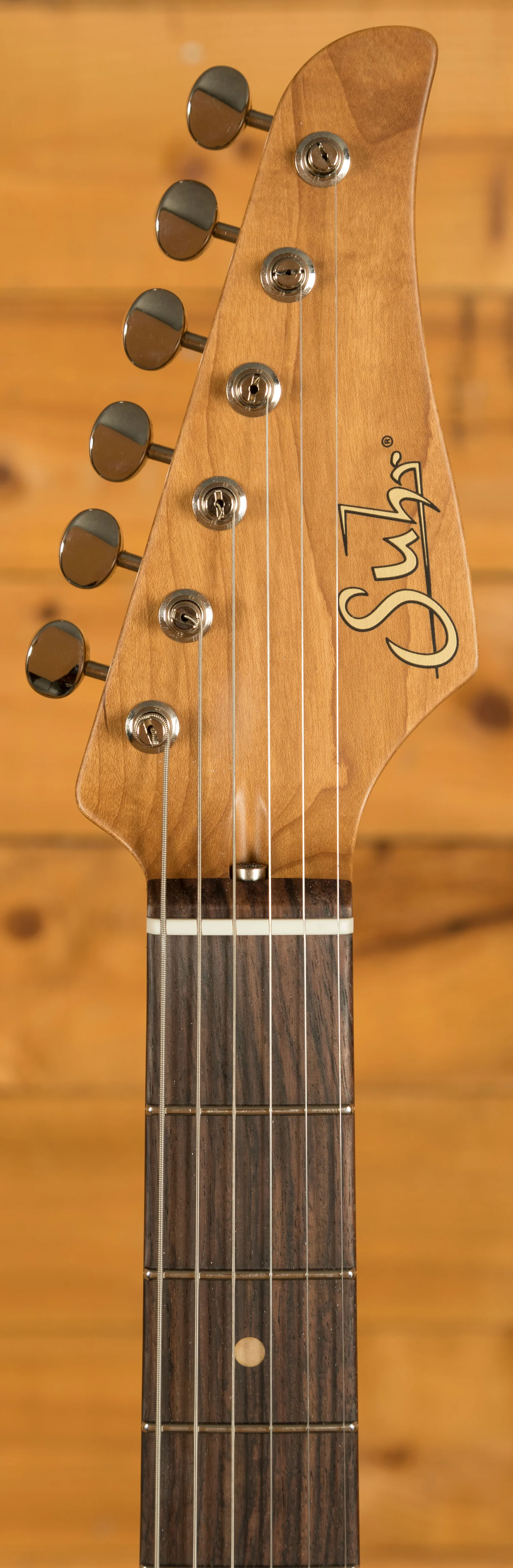 The Roasted Maple neck is oil finished for a smooth, effortless feel. With a 60's C Vintage Standard profile - measuring .810" at the 1st fret and .930" at the 12th - rolled frets, and a compound 9"-12" radius Indian Rosewood fretboard, this is a substantial but real comfortable guitar.