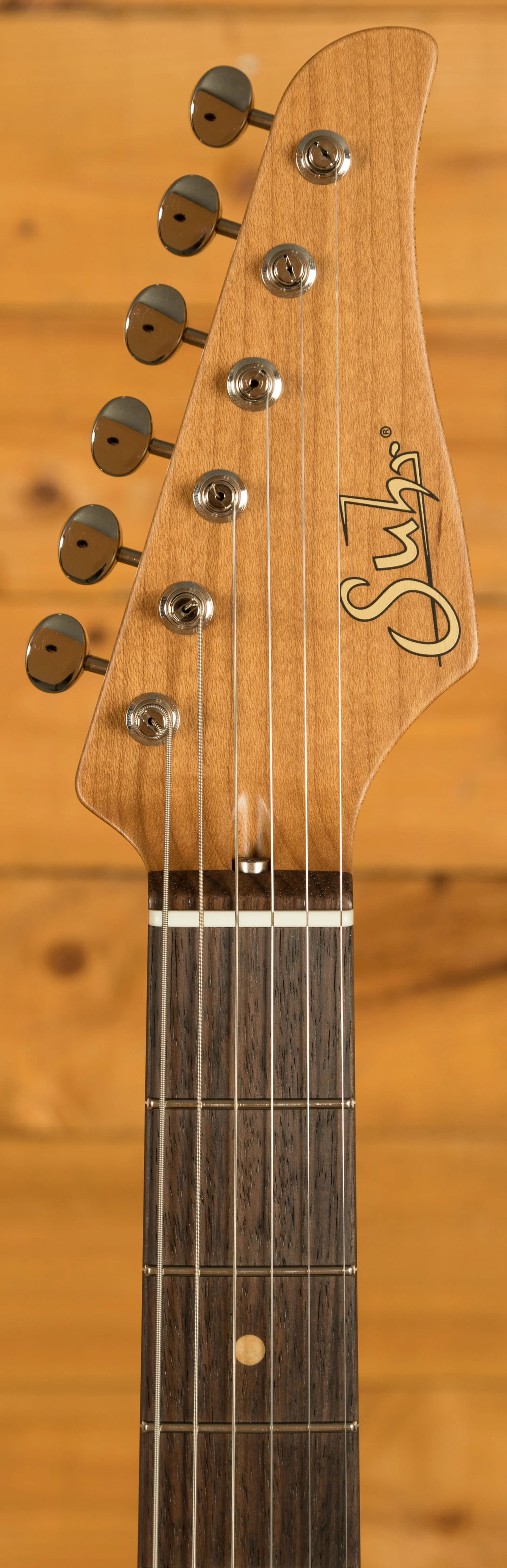 The Roasted Maple neck is oil finished for a smooth, effortless feel. With a 60's C Vintage Standard profile - measuring .810" at the 1st fret and .930" at the 12th - rolled frets, and a compound 9"-12" radius Indian Rosewood fretboard, this is a substantial but real comfortable guitar.