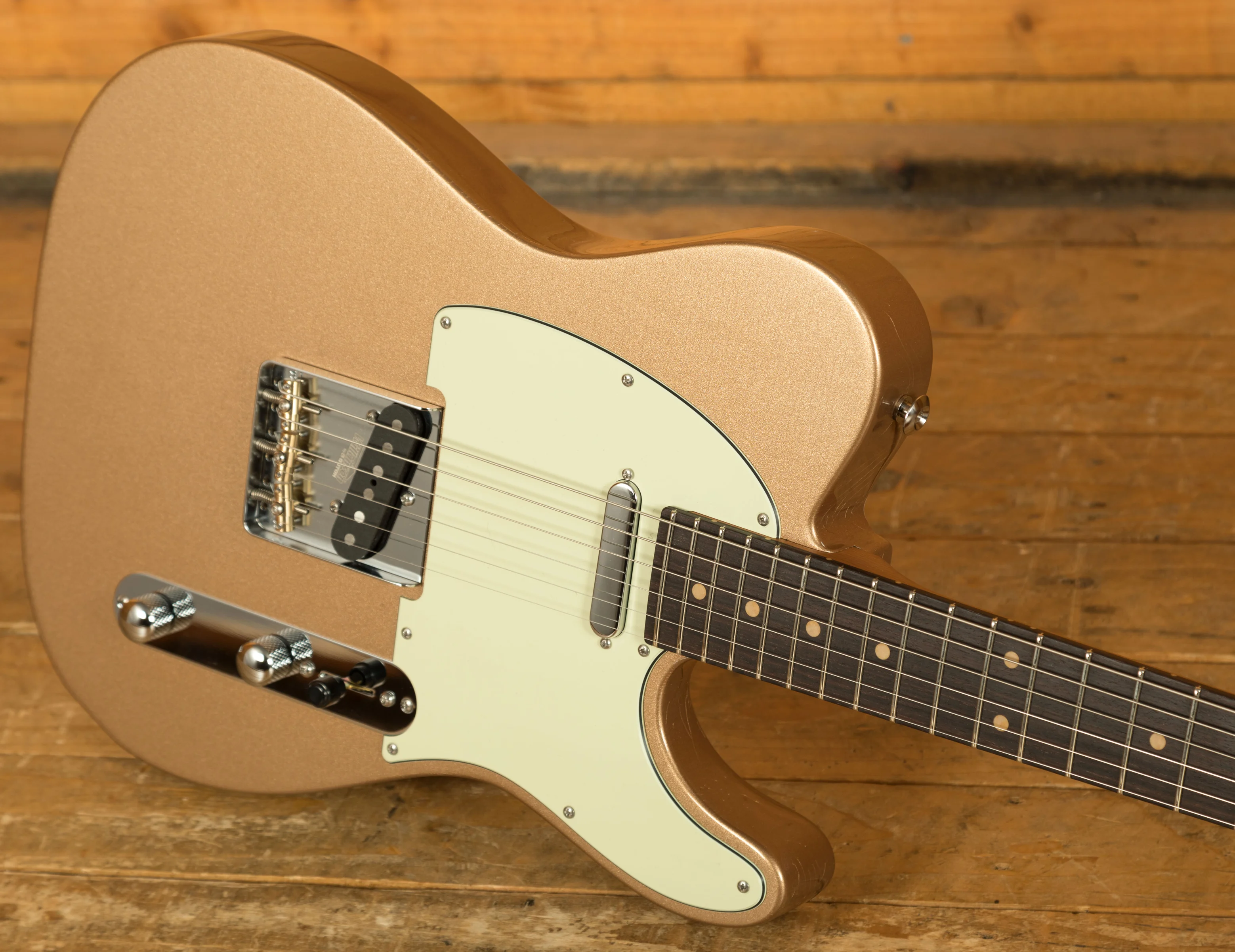 The Roasted Maple neck is oil finished for a smooth, effortless feel. With a 60's C Vintage Standard profile - measuring .810" at the 1st fret and .930" at the 12th - rolled frets, and a compound 9"-12" radius Indian Rosewood fretboard, this is a substantial but real comfortable guitar.