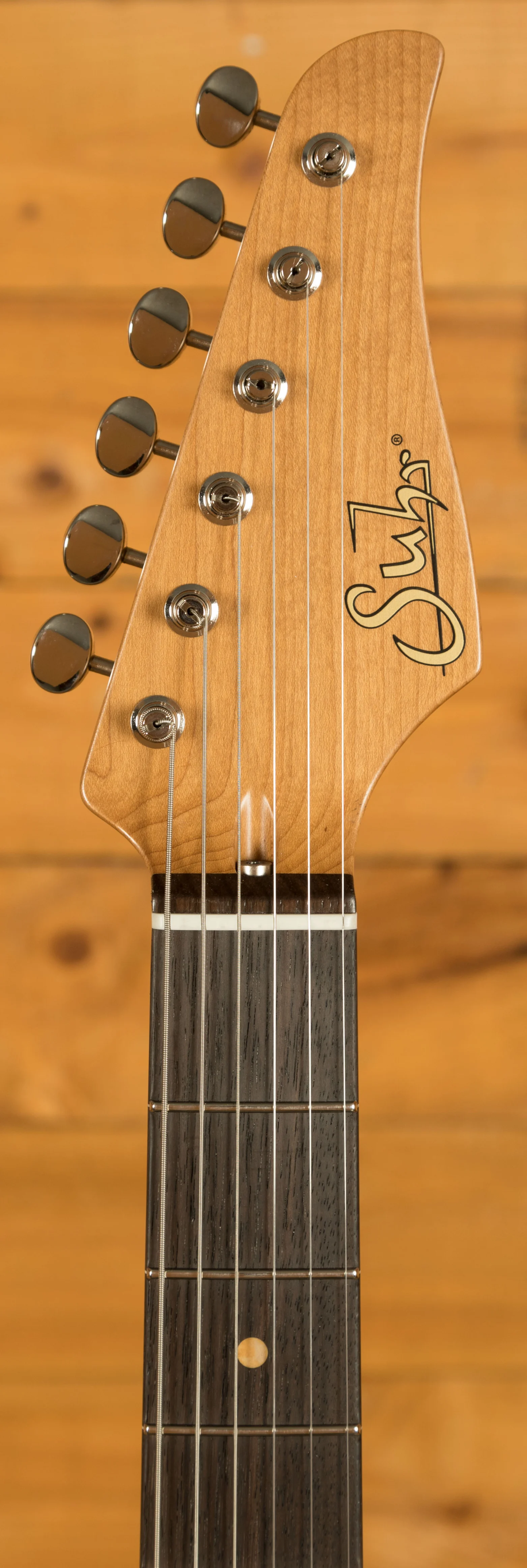 The Roasted Maple neck is oil finished for a smooth, effortless feel. With a 60's C Vintage Standard profile - measuring .810" at the 1st fret and .930" at the 12th - rolled frets, and a compound 9"-12" radius Indian Rosewood fretboard, this is a substantial but real comfortable guitar.