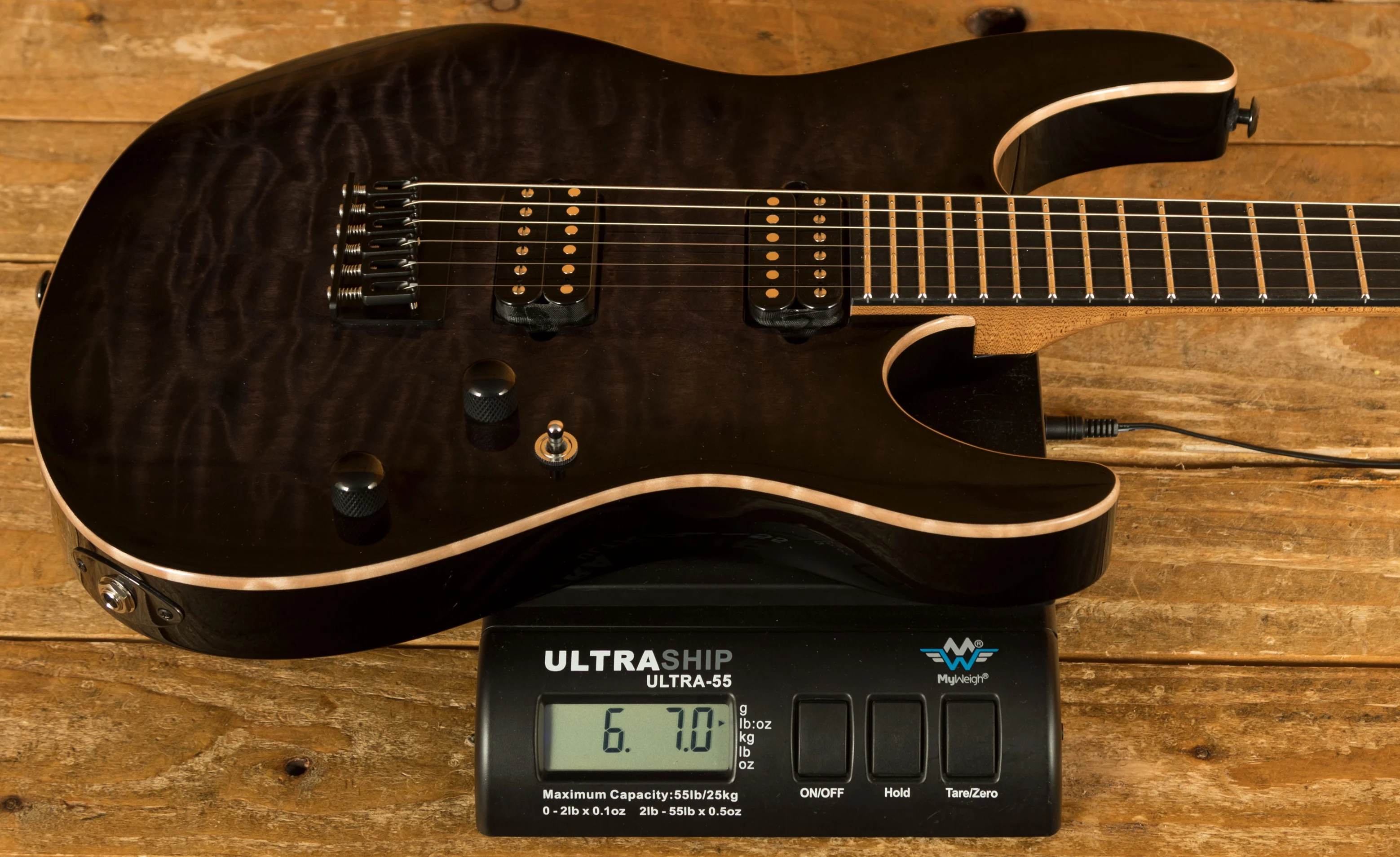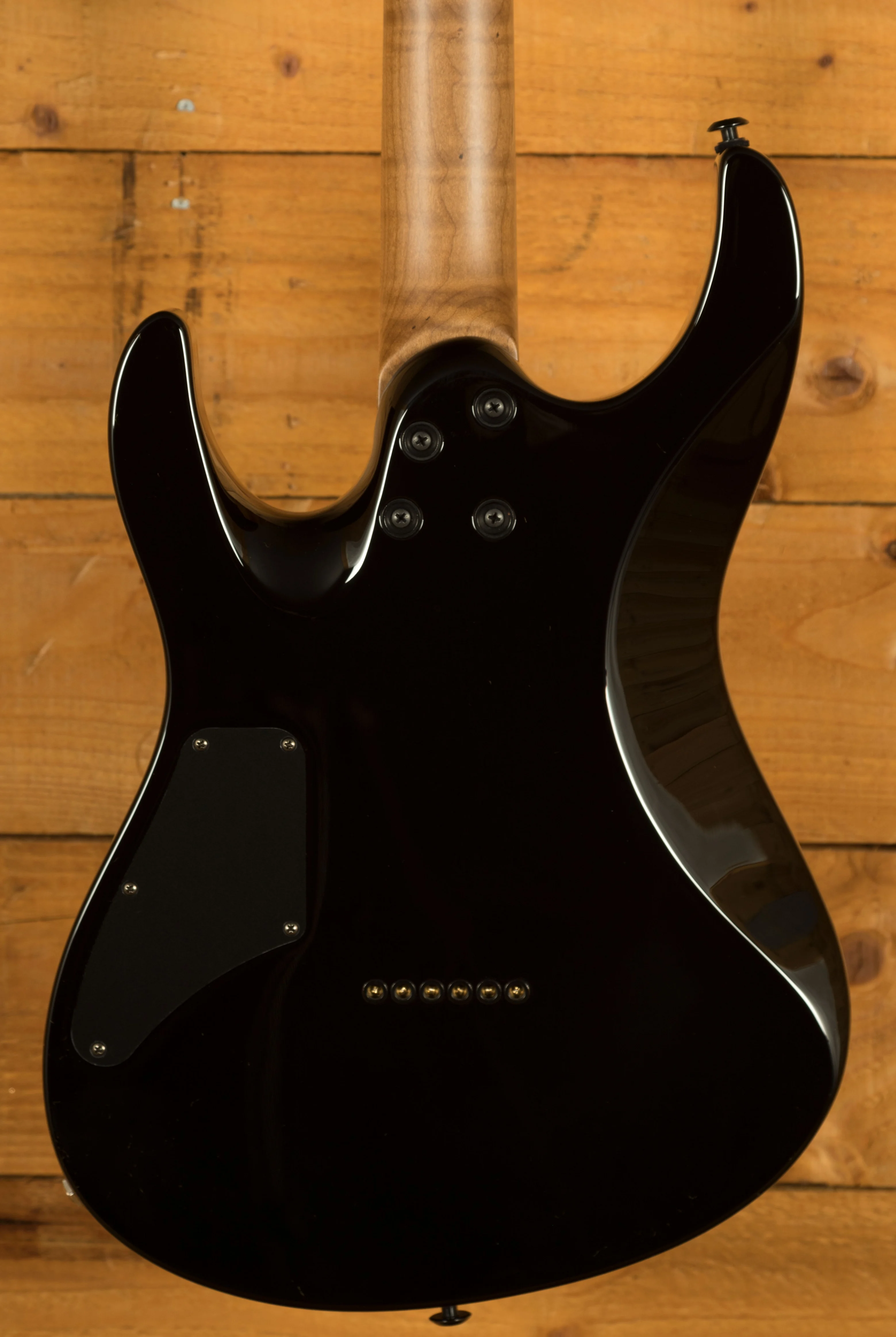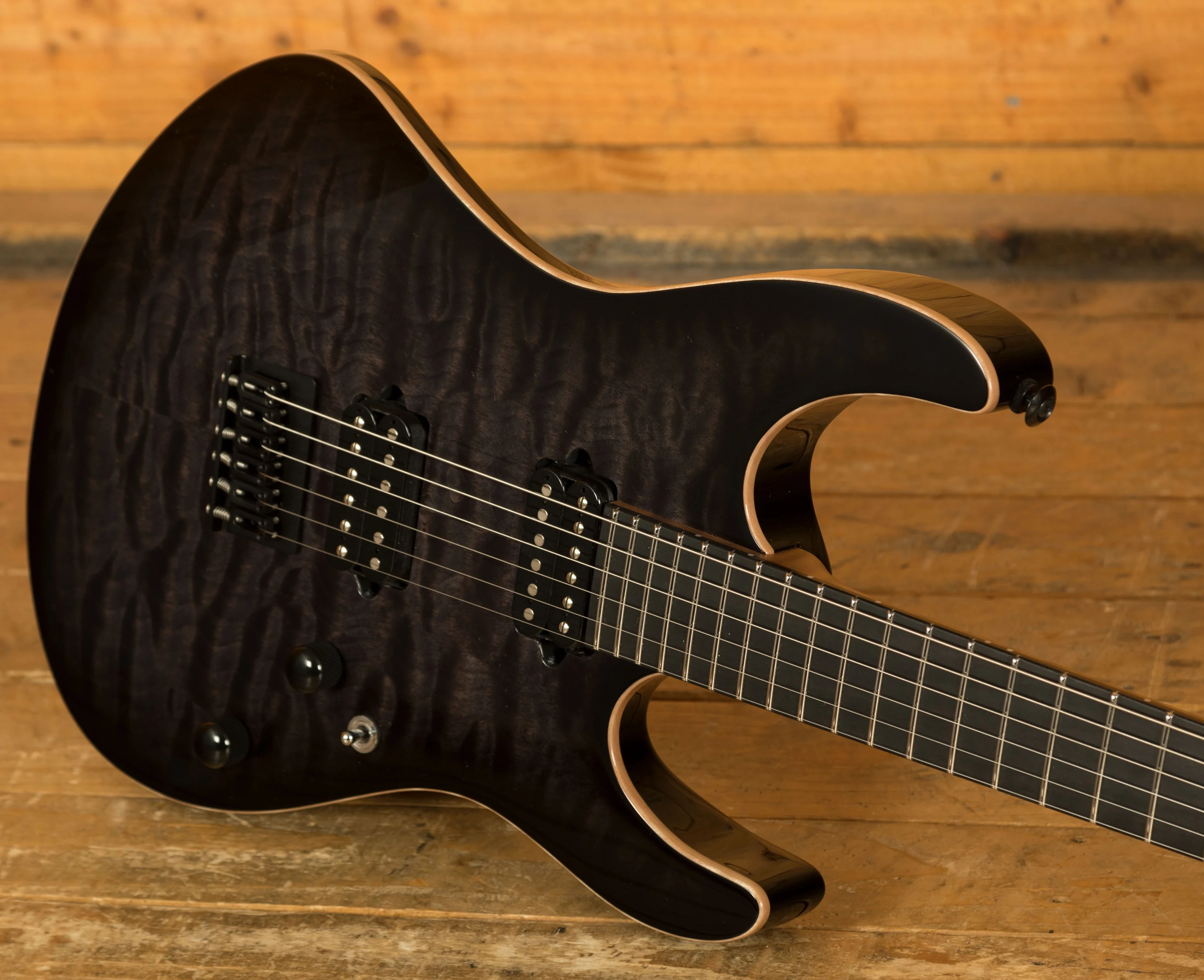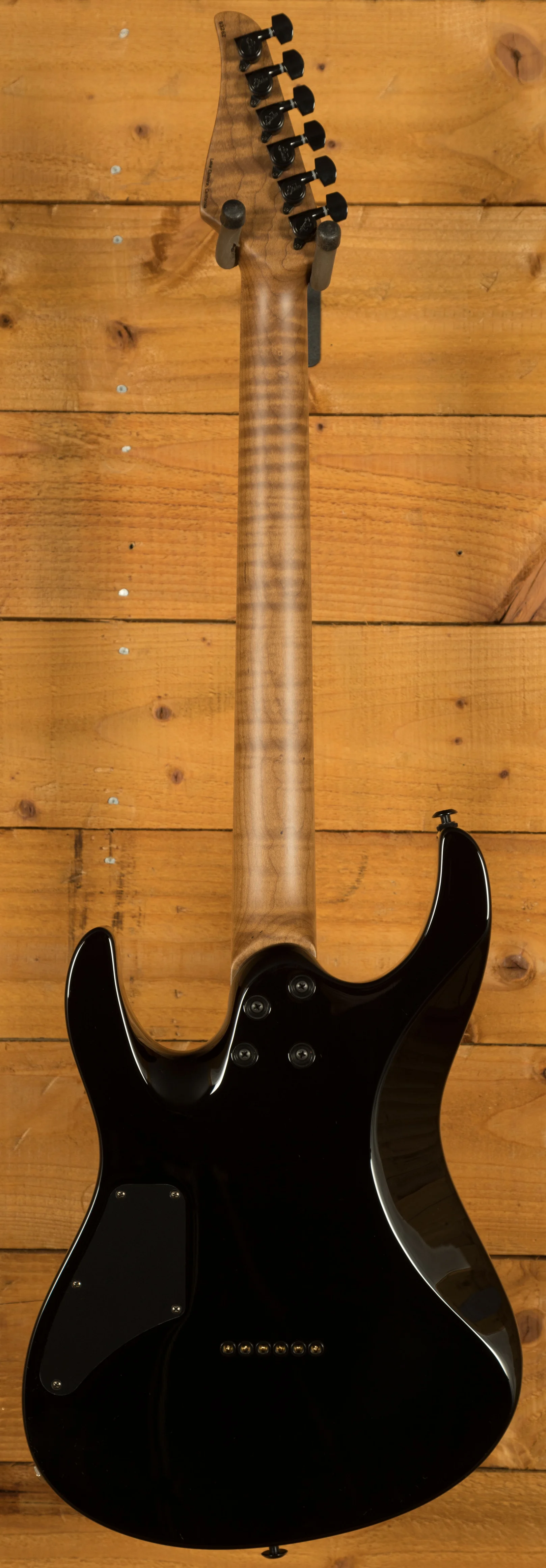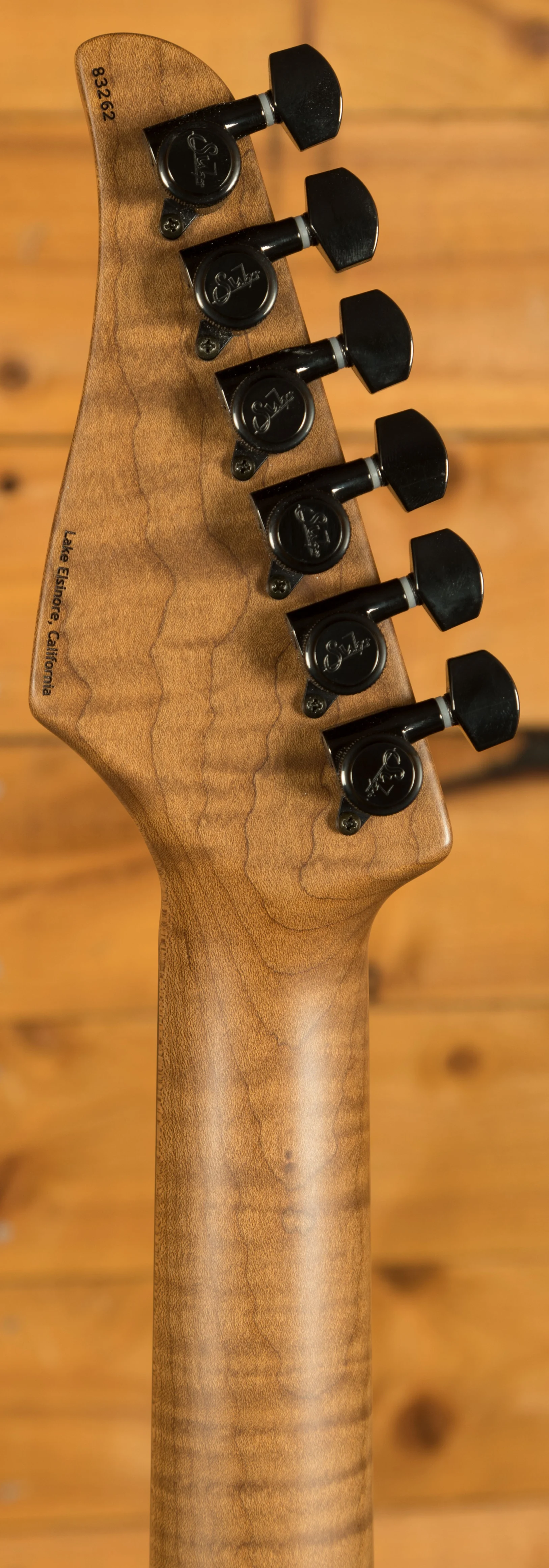 With a Roasted Flame Maple neck, the Modern benefits from a 10"-14" fingerboard radius and an Ebony fingerboard for a smooth playing experience. With a Modern Elliptical .800"-.850" neck profile and 1.687" Tusq nut, it's extremely comfortable. The 24 Jumbo stainless steel frets offer great string bending potential and long lasting playability.