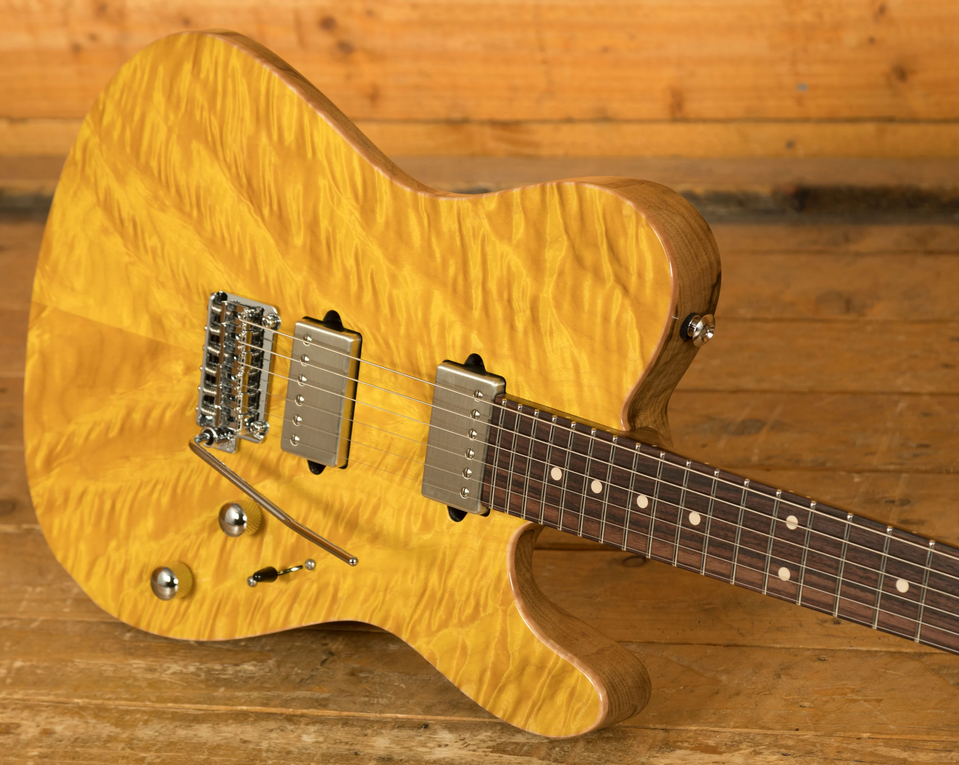 With a Black Limba chambered body and a Handpicked Quilted Maple top, it's tonally superior, light weight and beautifully poised for action. Suhr have finished it in a really cool Trans Lemon Yellow and utilised arm, hand and tummy contours for a really comfortable playing experience.