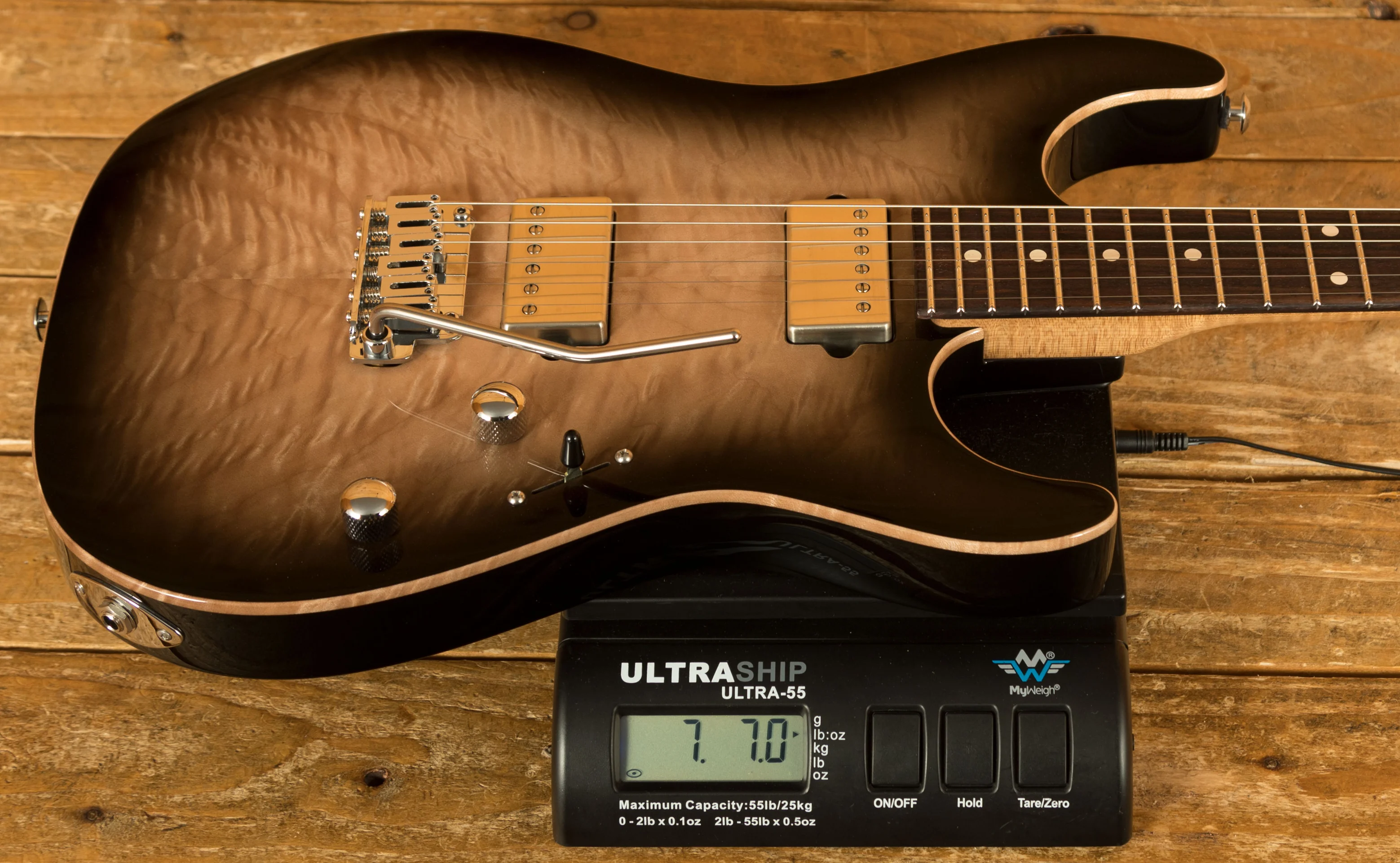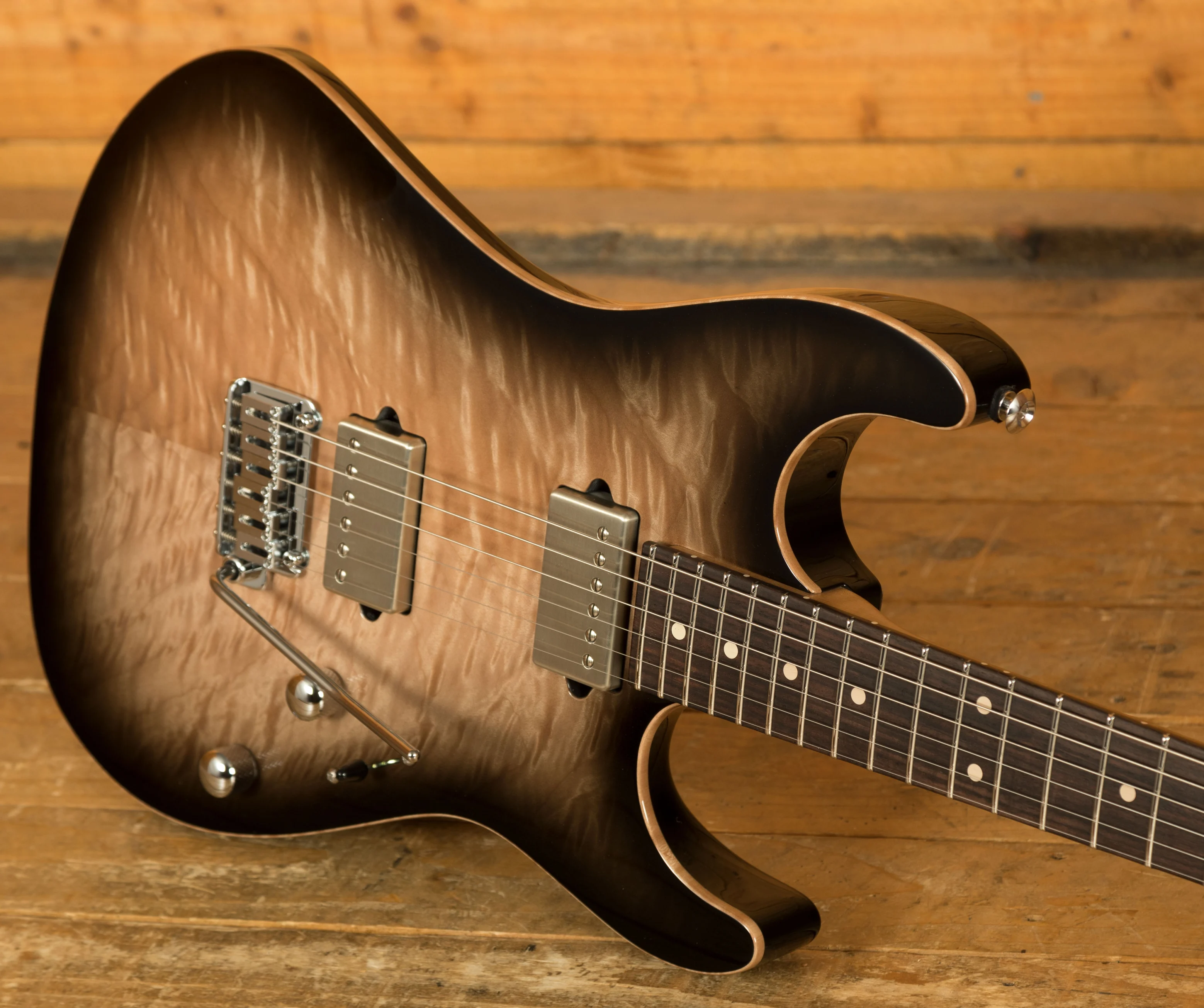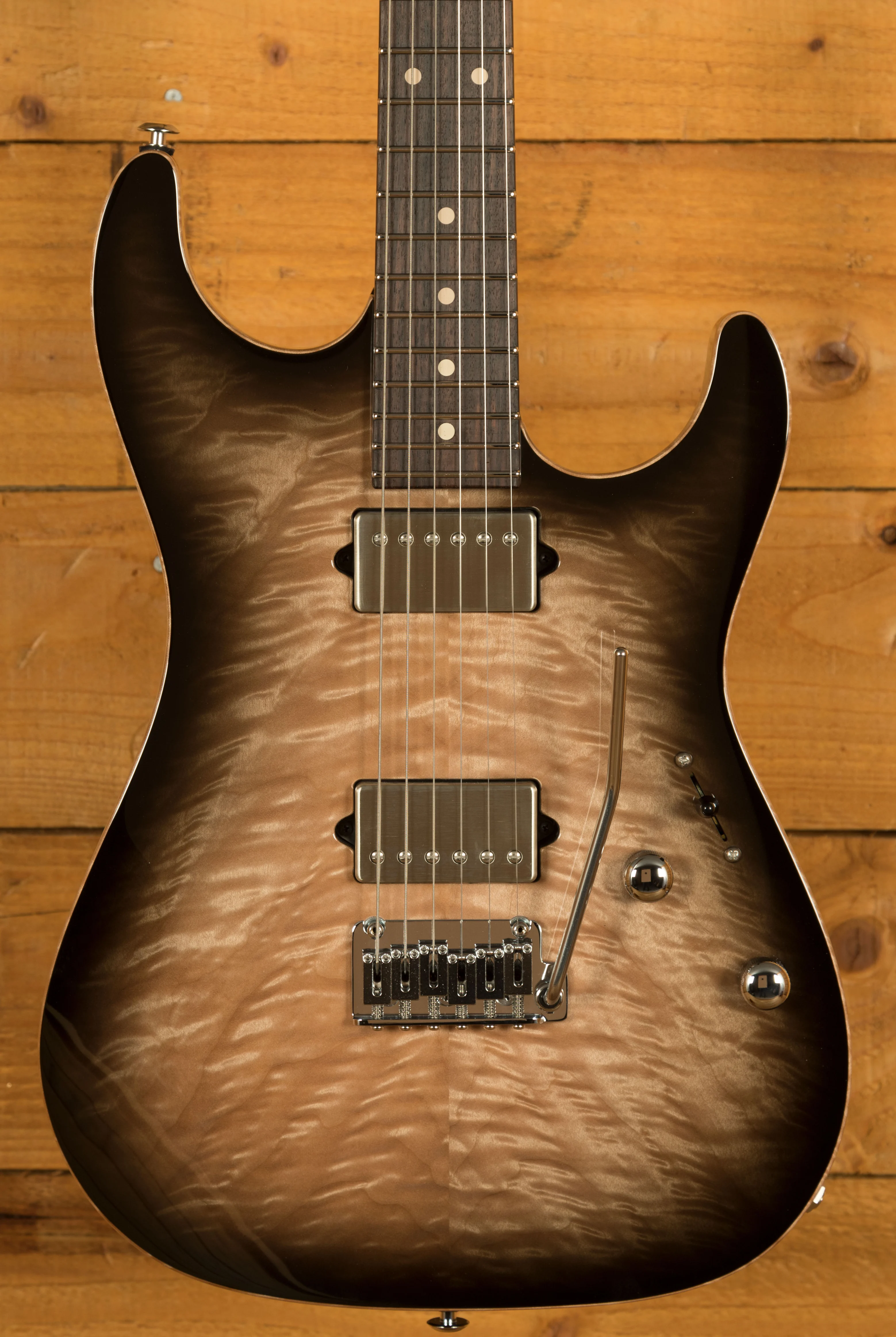 With the powerhouse pickup HH combo, this guitar delivers monster tonal options. With an SSH Plus at the bridge and an SSV at the neck, this guitar is really versatile. It's smooth and responsive and capable of kicking out some seriously raunchy tones. Even more versatility is given to players with a push-push control for wiring the bridge pickup in parallel.