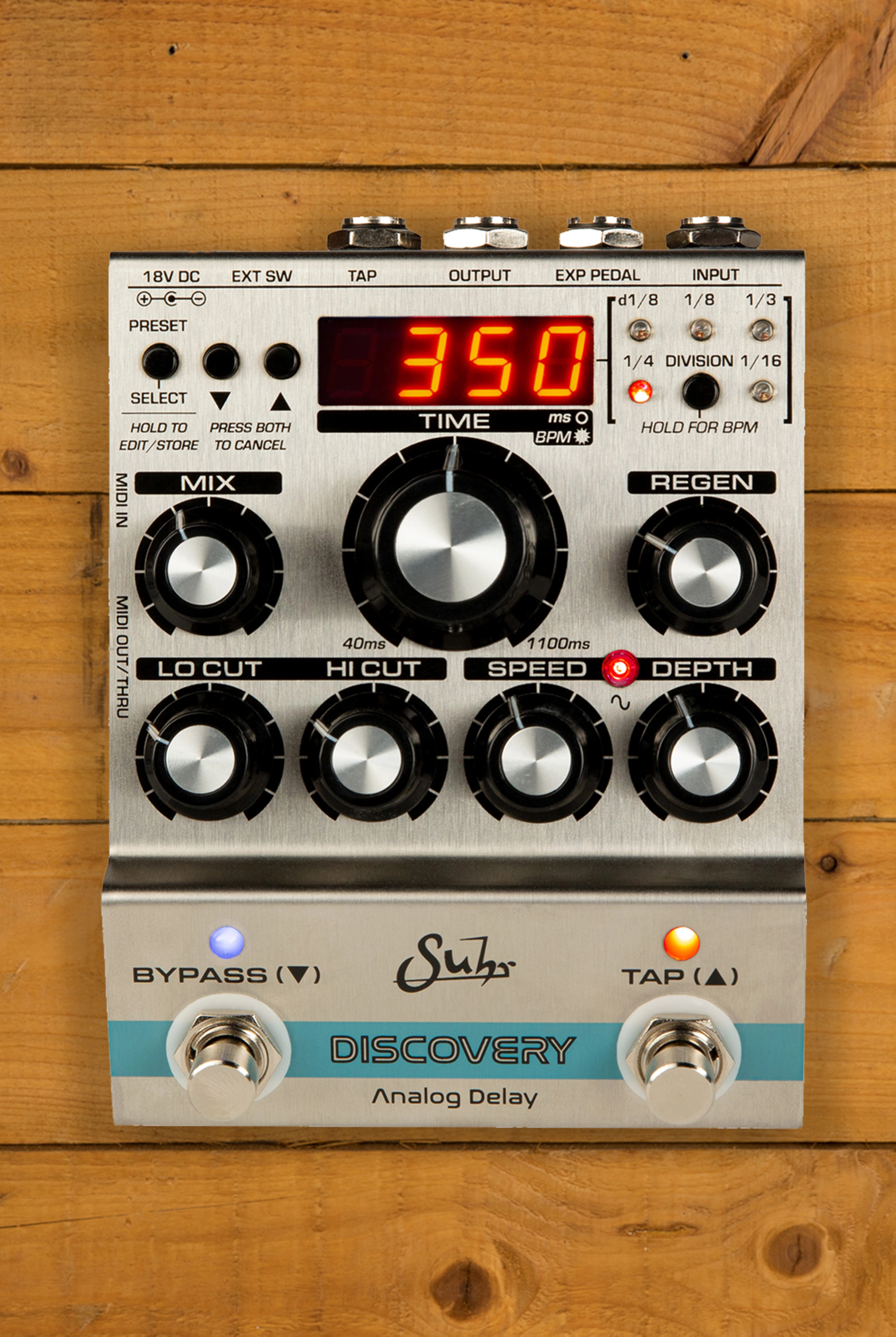 The Suhr Discovery Analog Delay pedal is the all-new revolutionary pedal, designed by Kevin Suhr. The Analog Delay is the first of it's kind, for both Suhr and the world of guitar as a whole. It retains the tone, vibe and creative inspiration of iconic analog delay units, yet adding the versatility of modern technology.