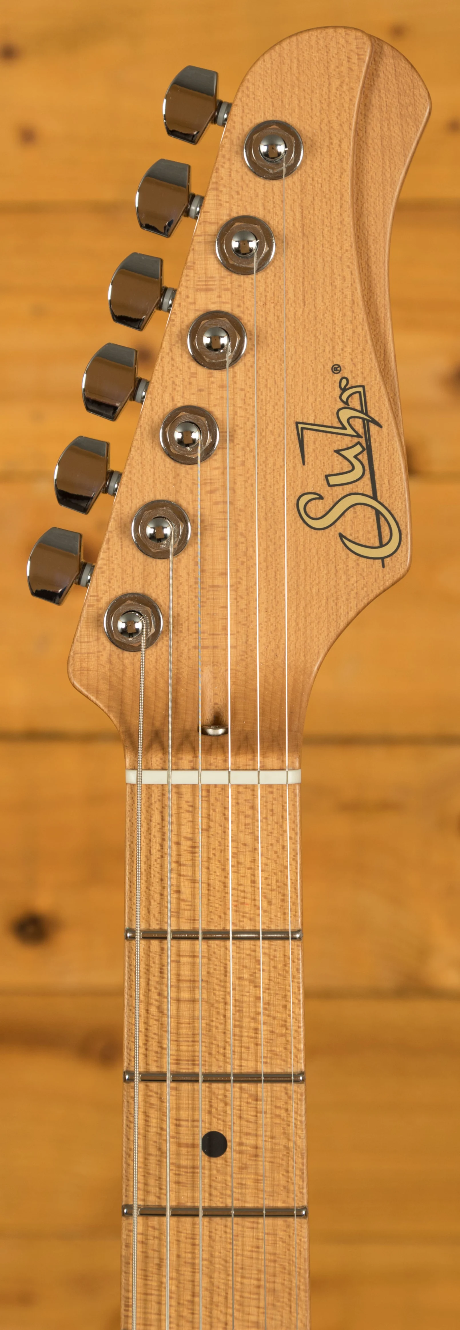 Benefitting from 2 Suhr Aldrich humbucker pickups it offers an alternative take on those famous Strat tones, rich, punchy and ready to growl. With a Suhr ML Standard in the middle you get even greater tonal variation. The tone controls double up as push/pull pots to run the neck and bridge pickups in parallel to offer you ultimate tonal control.