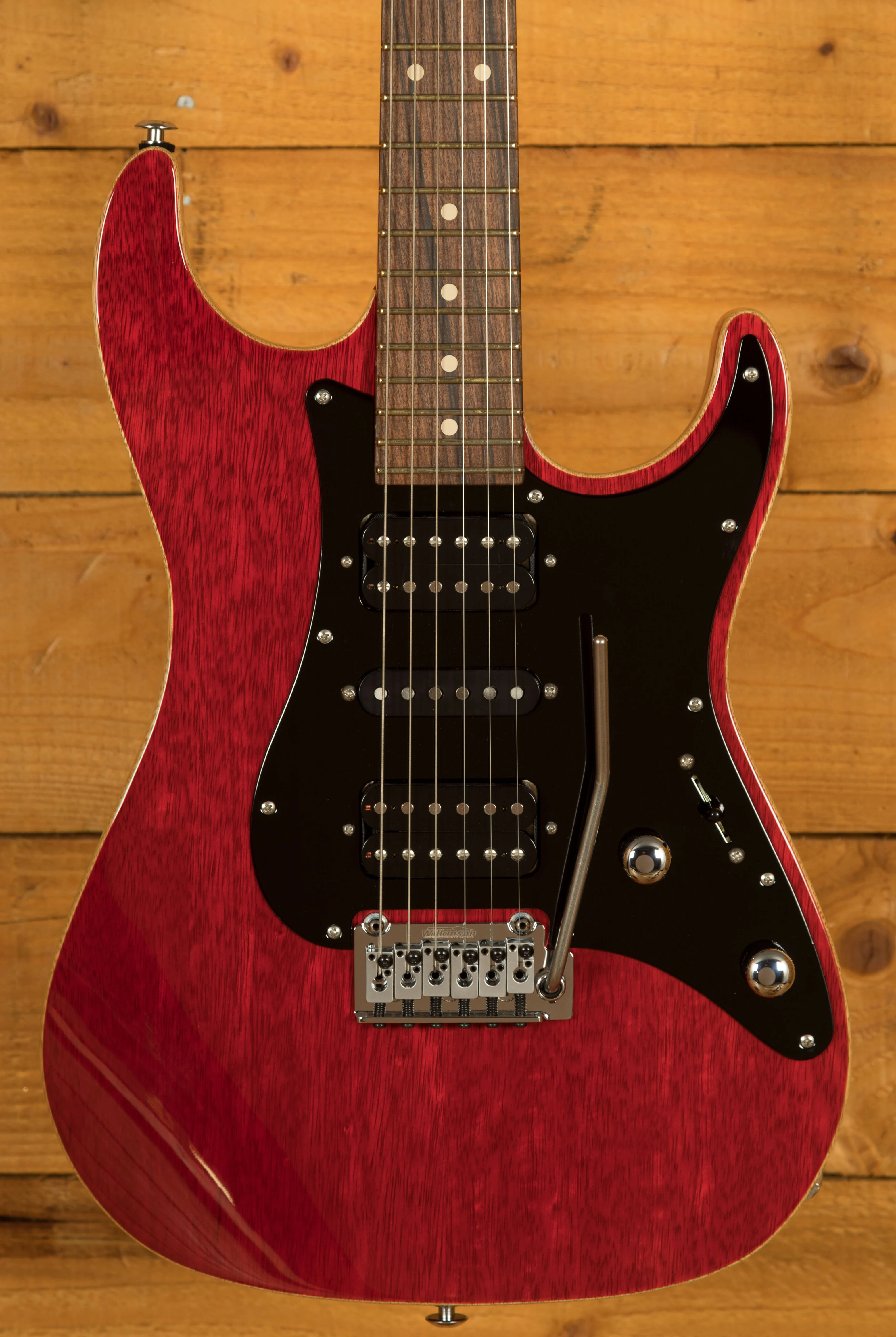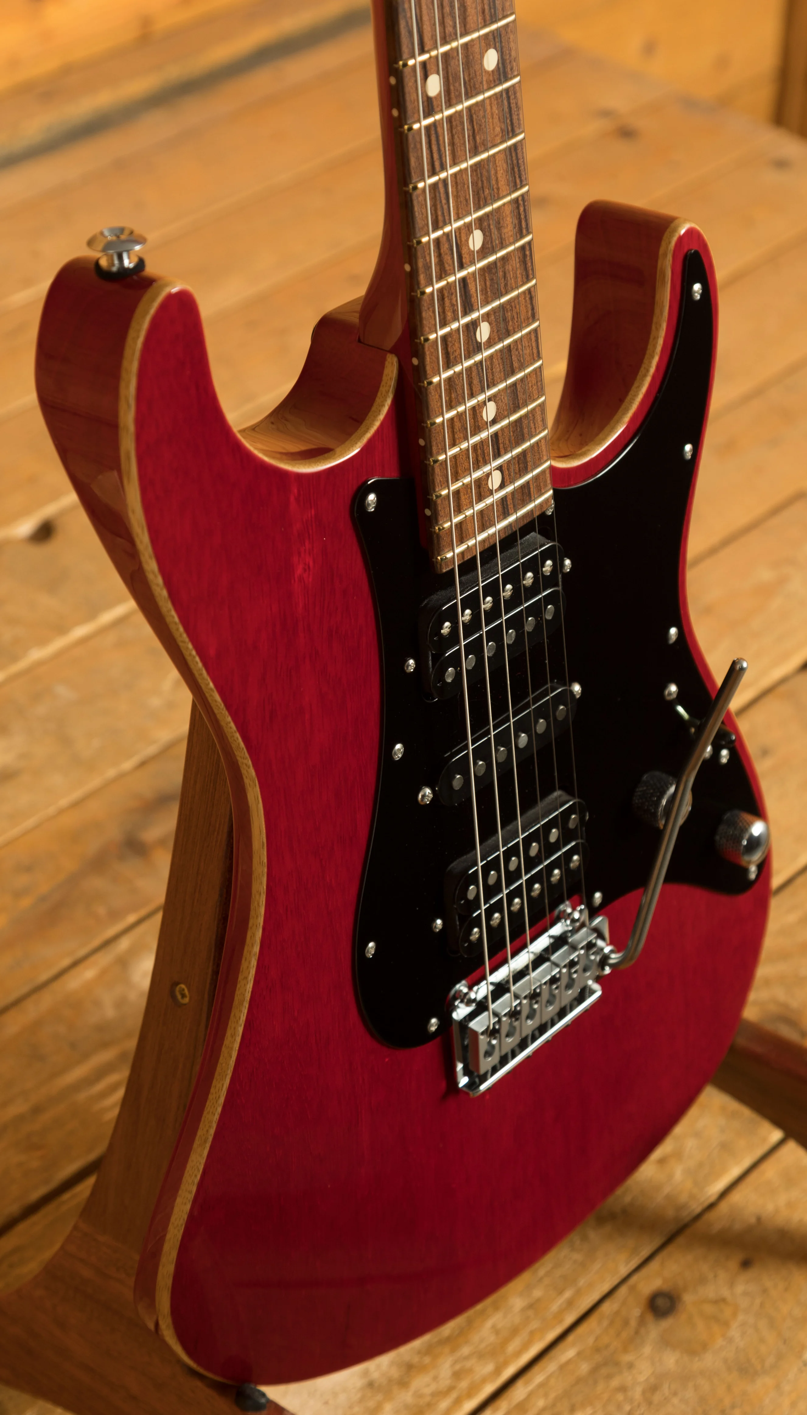 Constructed with a chambered White Limba body, for many years this has been one of John's all time favourite tone woods and is at the heart of his signature series guitar. The choice of chambering this guitar really adds to the midrange and top-end sweetness.Finished in the awesome Trans Red finish you can really appreciate the beauty of the wood. This guitar looks awesome!