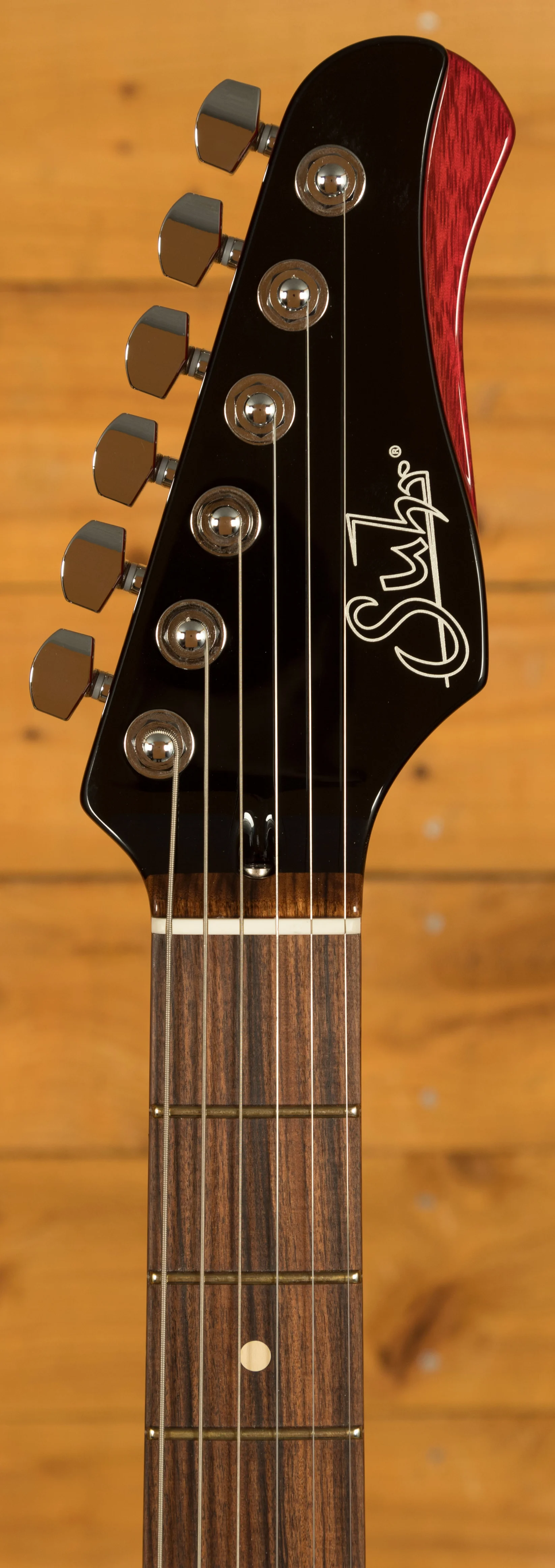 Paired up with a White Limba neck that boasts a Pau Ferro Fingerboard. Pau Ferro is a staple wood within the whole of the Suhr catalogue, tonally it gives a slightly brighter sound and retains lots of depth and warmth. With a 10"-14" fingerboard radius, 22 jumbo frets and an even "C" slim neck shape. The John Suhr signature is a real dream to play.