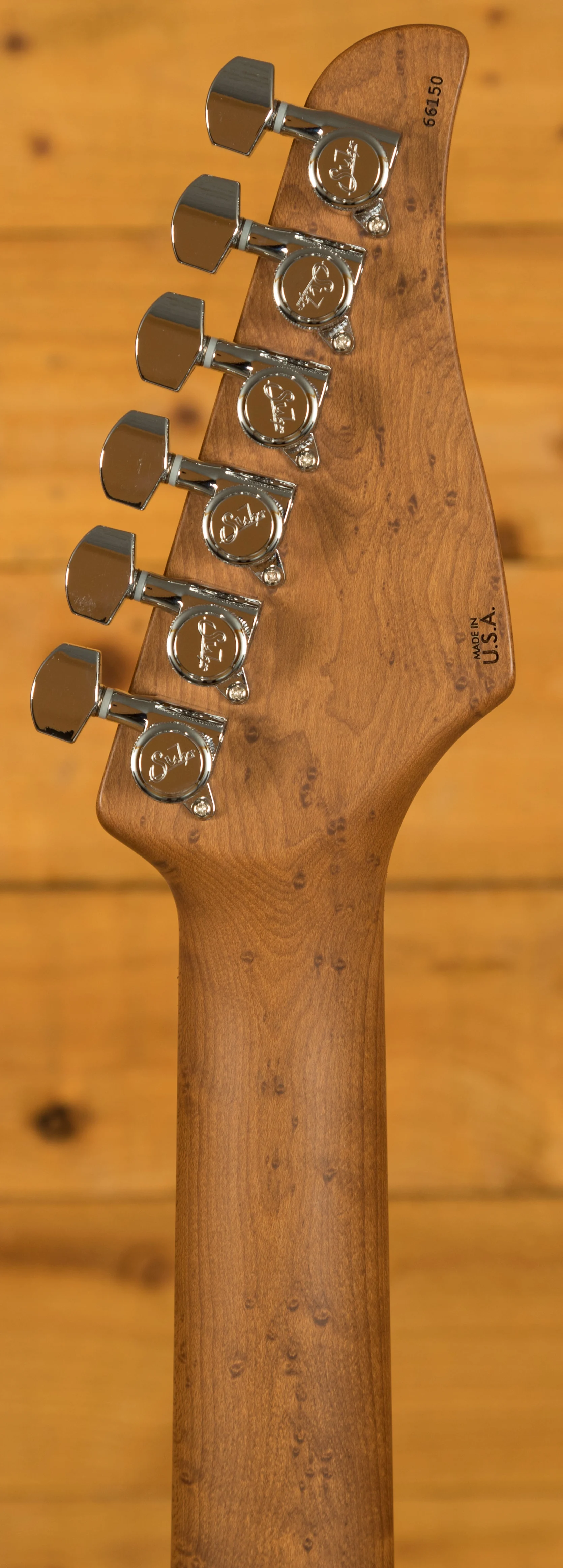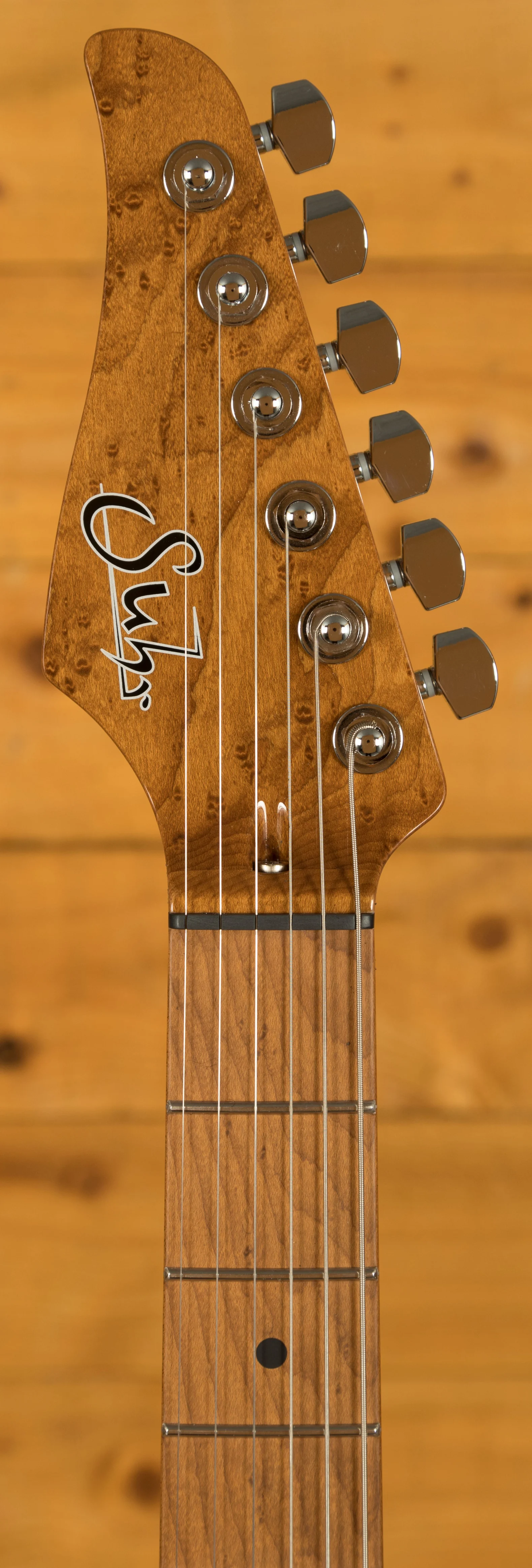 The Paulownia Suhr is equipped with Suhr's 60's C Vintage Standard neck profile with rolled edges, The 3A Roasted Birdseye fingerboard and a 9"- 12" radius offers an extremely comfortable shape. The Maple neck is finished in satin, which provides the smooth feel of natural wood as well as protection from moisture. The 22 stainless steel frets offer great string bending potential and long lasting playability.