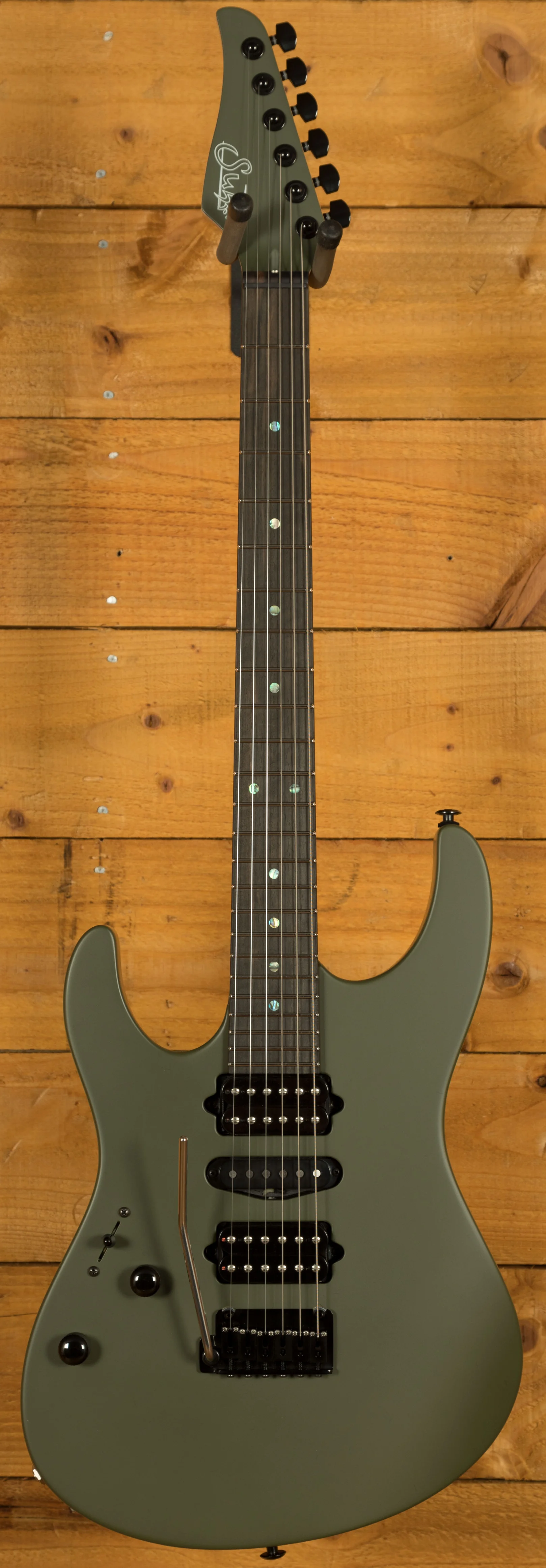With a Basswood body and a Plain Maple top, its tonally superior, light weight and beautifully poised for action. Suhr have finished it in an awesome Dark Forest Green which looks super slick and has a real minimalistic feel to it.