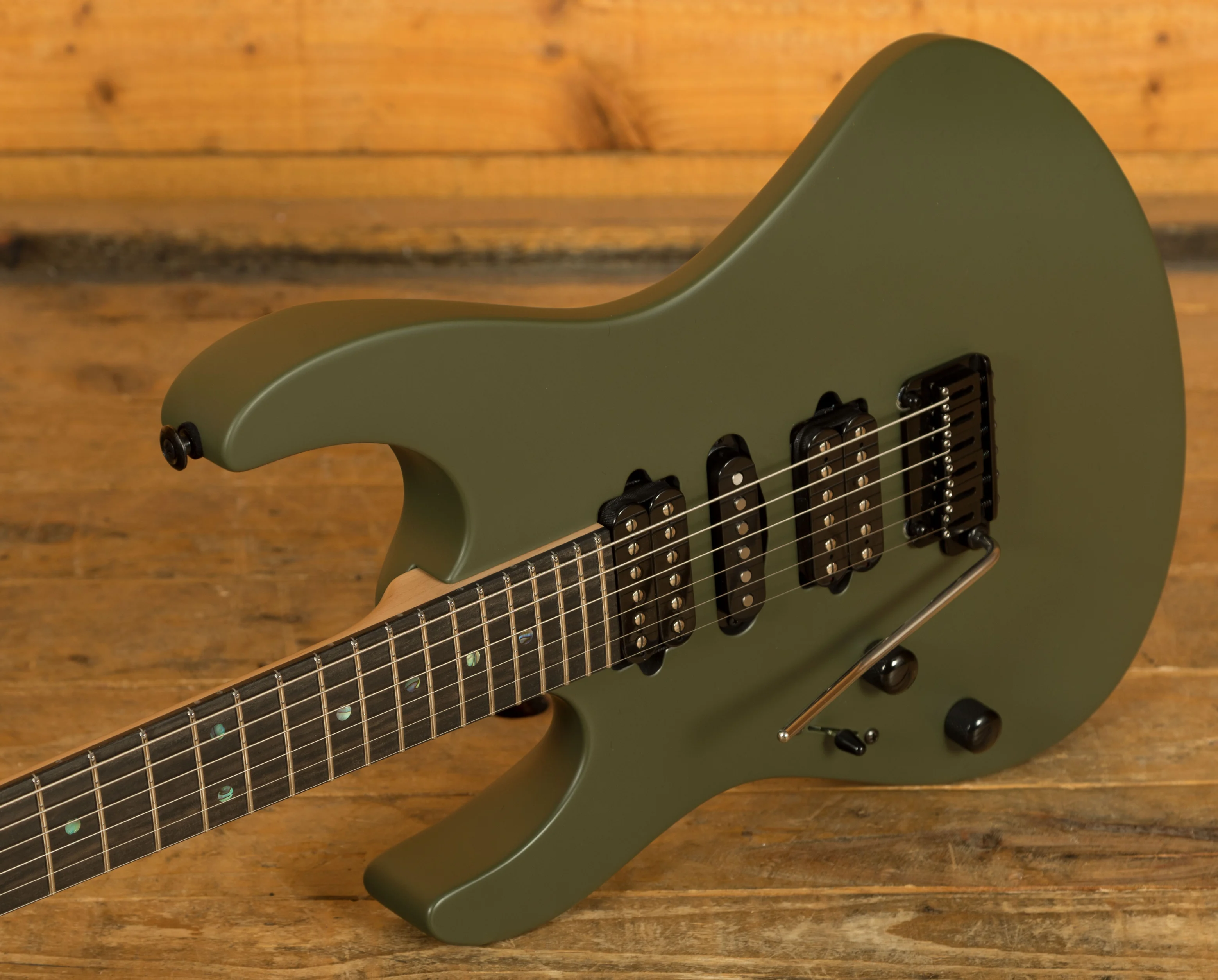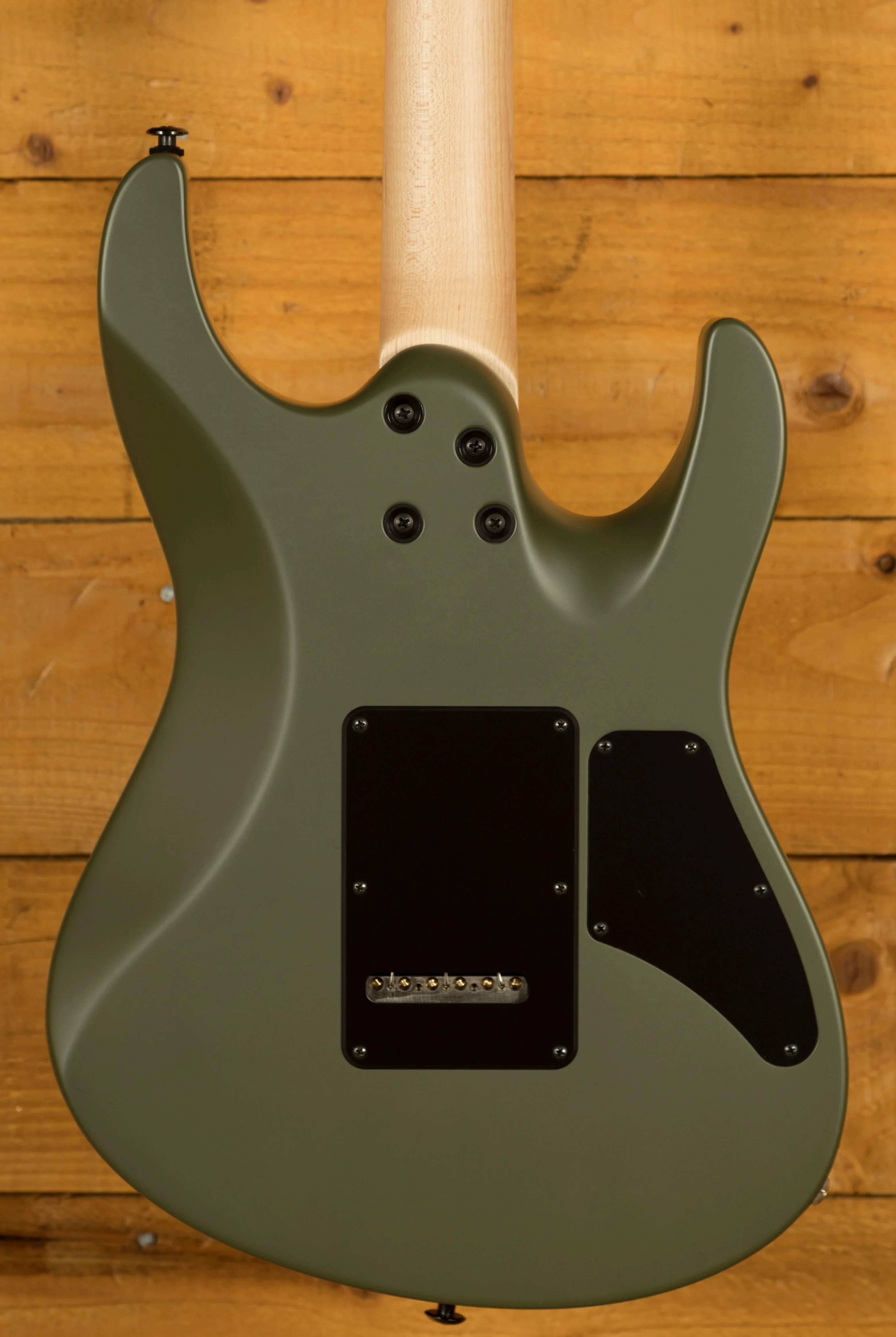 The Modern Terra is equipped with Suhr's Even C neck profile with rolled edges, The Ebony fingerboard and a 10"- 14" radius offers an extremely comfortable shape. The Maple neck is finished in satin, which provides the smooth feel of natural wood as well as protection from moisture. The 24 Jumbo stainless steel frets offer great string bending potential and long lasting playability while the sculpted heel allows for great access right up the neck.