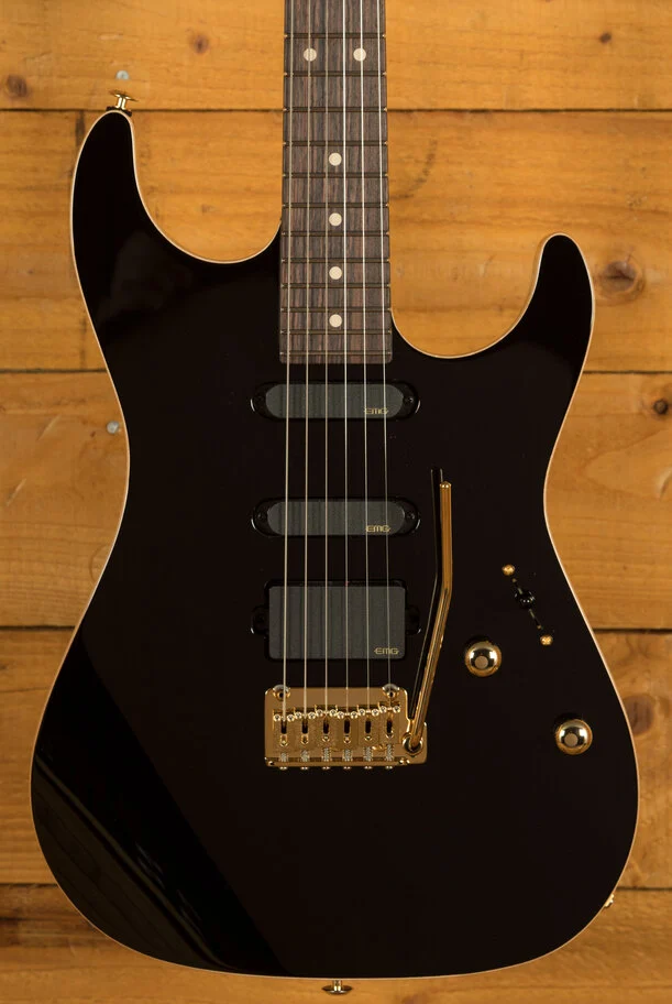 With the powerhouse pickup HSS combo, this guitar delivers monster tonal options. With a pair of EMG SA single coils and an EMG 85 humbucker this guitar is really versatile. Tuning stability comes from a cracking Goth 510 tremolo, it offers improved performance and reliability.
