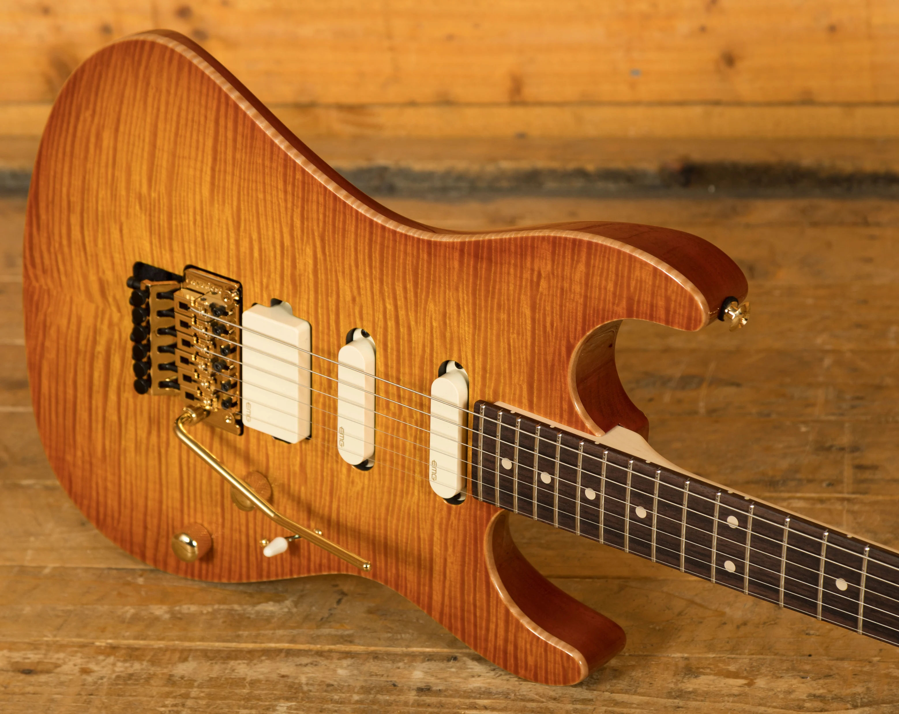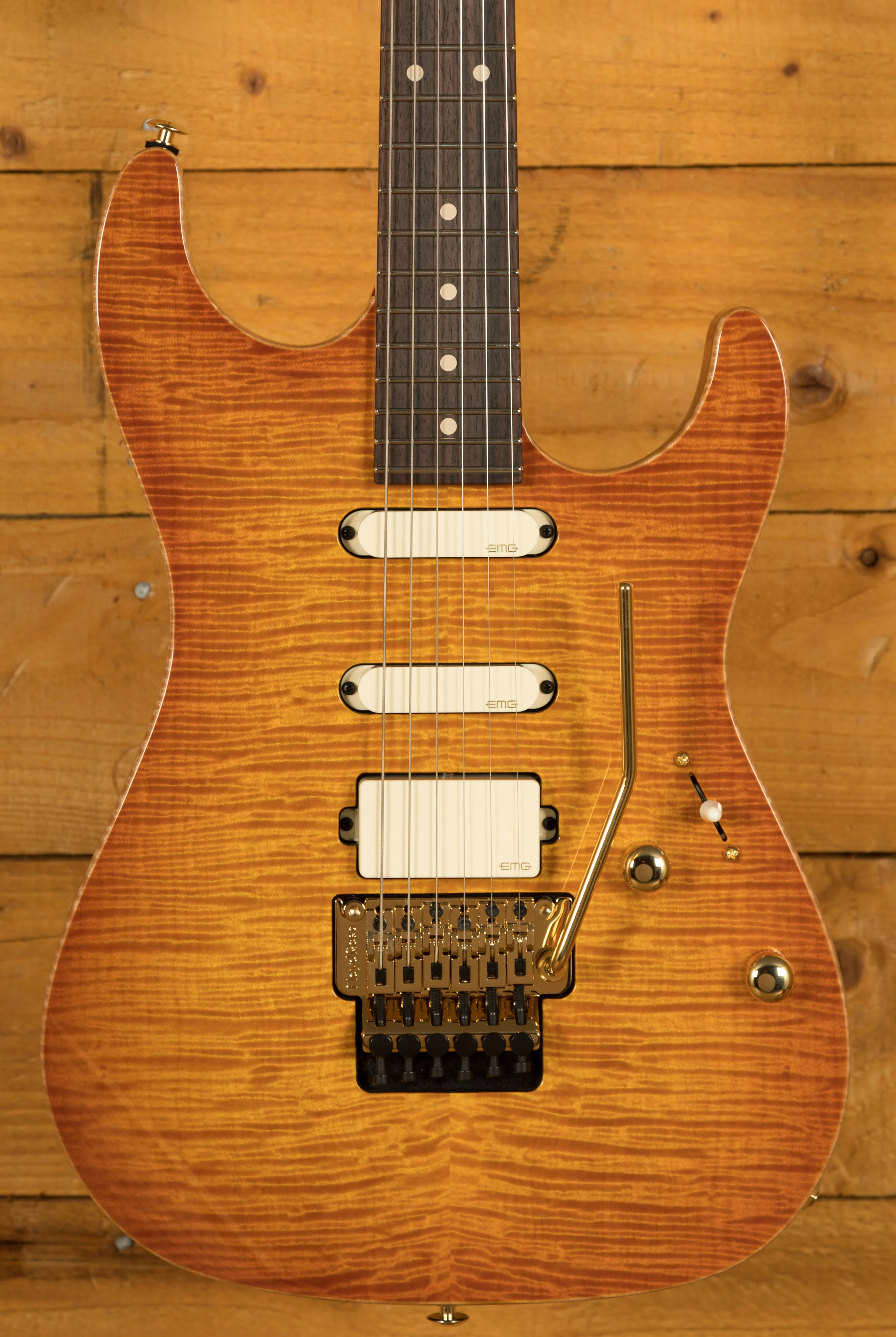 With the powerhouse pickup HSS combo, this guitar delivers monster tonal options. With a pair of EMG SA single coils and an EMG 85 humbucker this guitar is really versatile. Tuning stability comes from a cracking Floyd Rose tremolo, it offers improved performance and reliability.