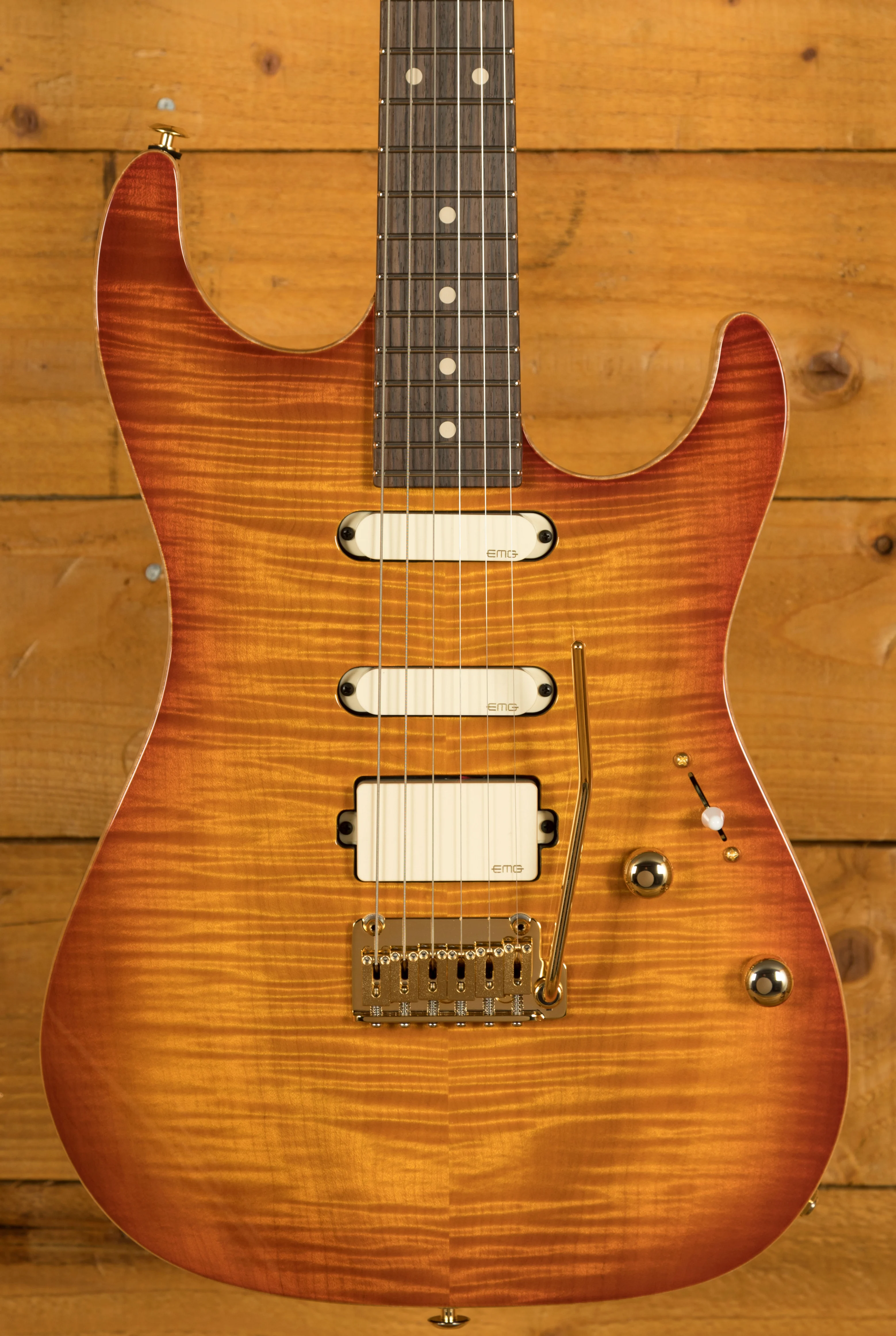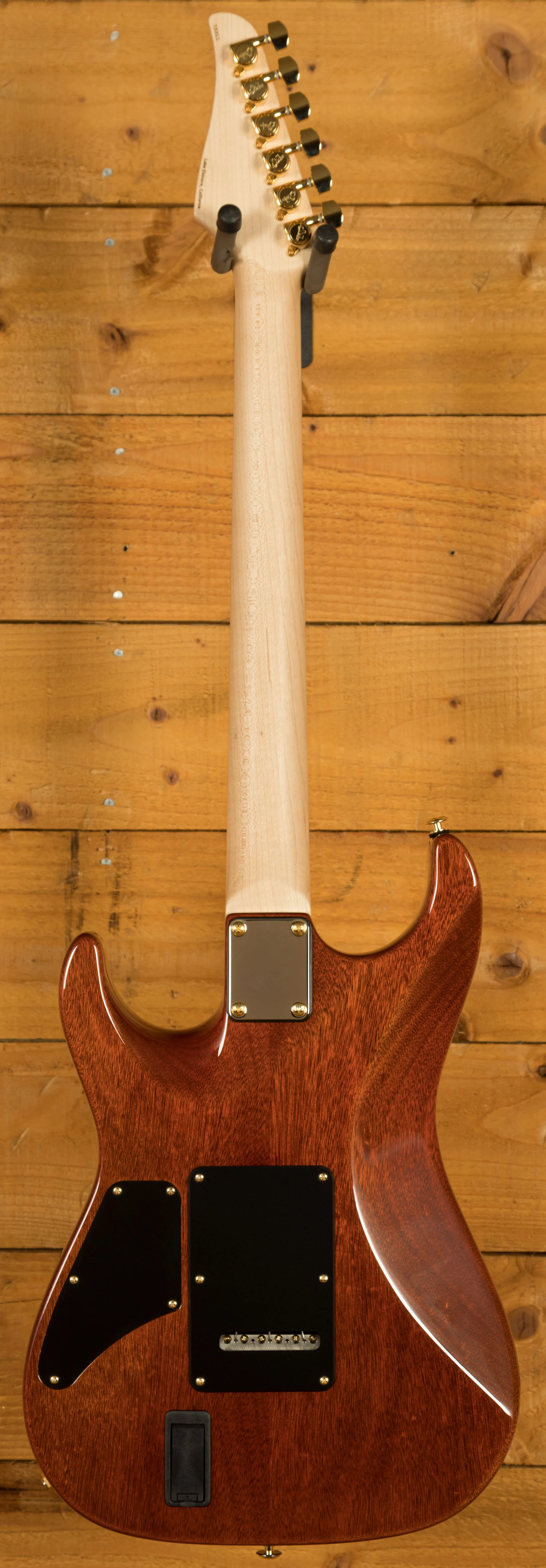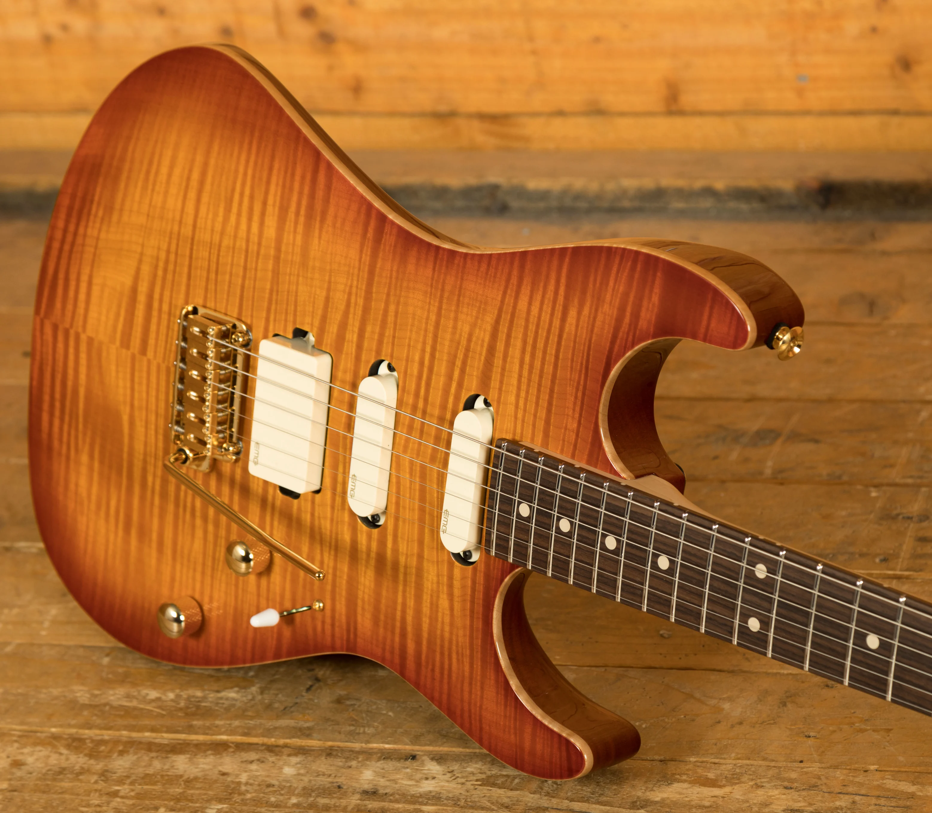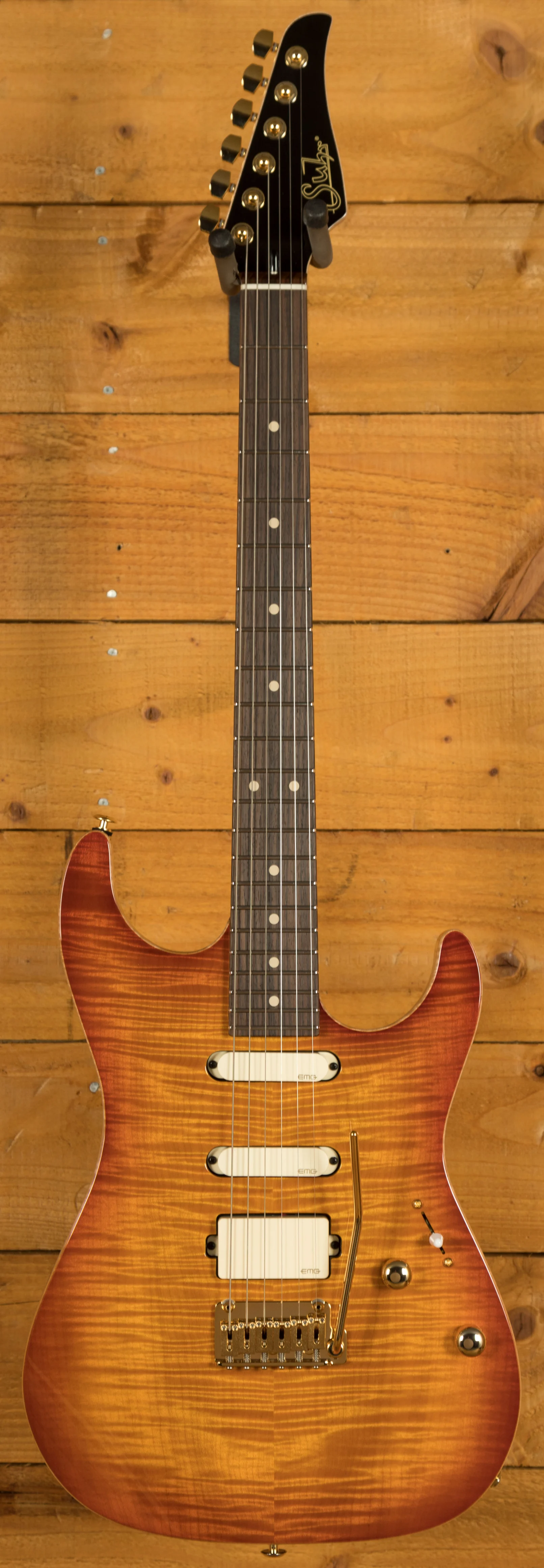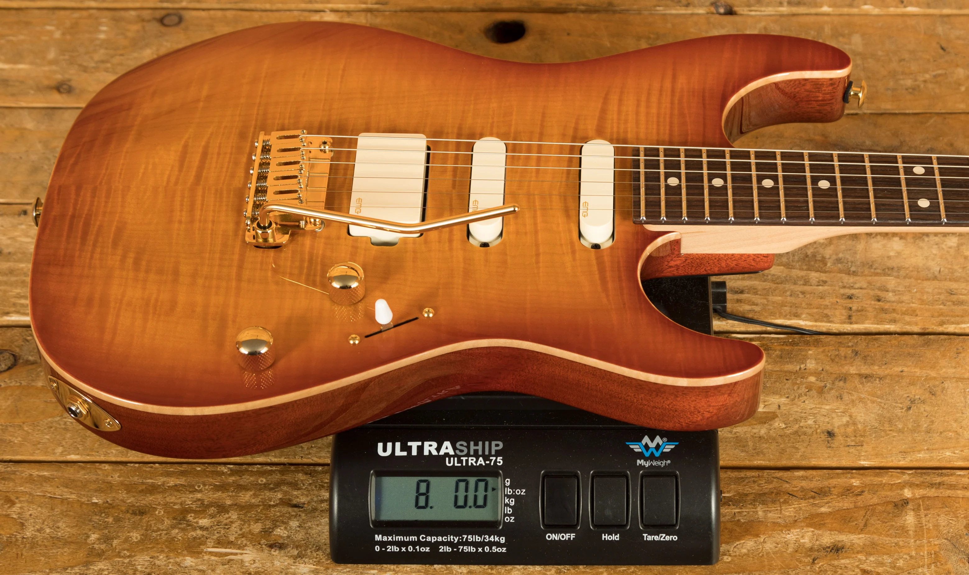 With an African Okoume body and a Curly Maple top, its tonally superior, light weight and beautifully poised for action. Suhr have finished it in an awesome Suhr Burst which looks super slick and really brings out the great figuring on show.