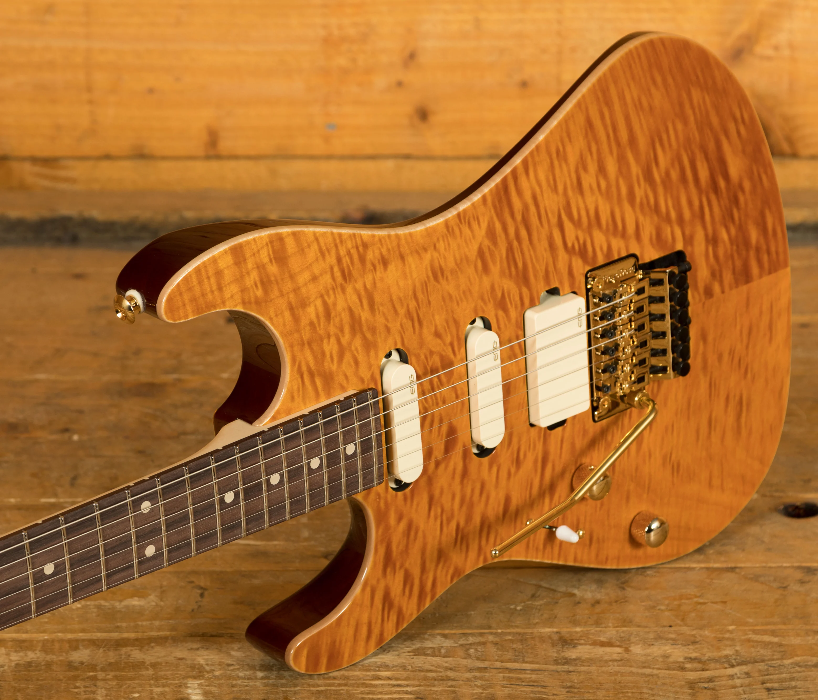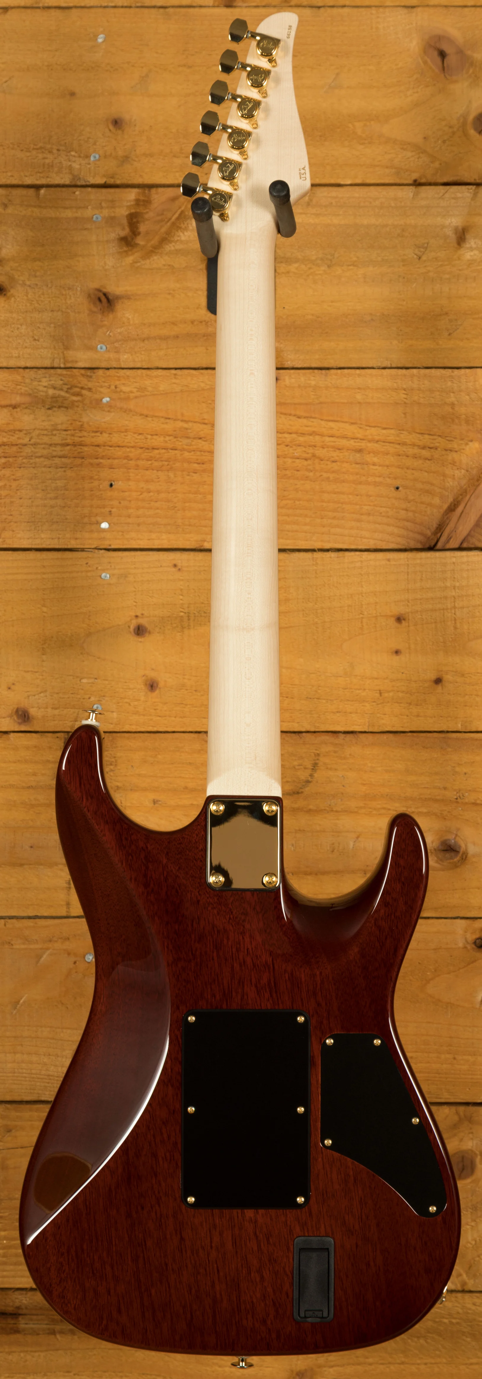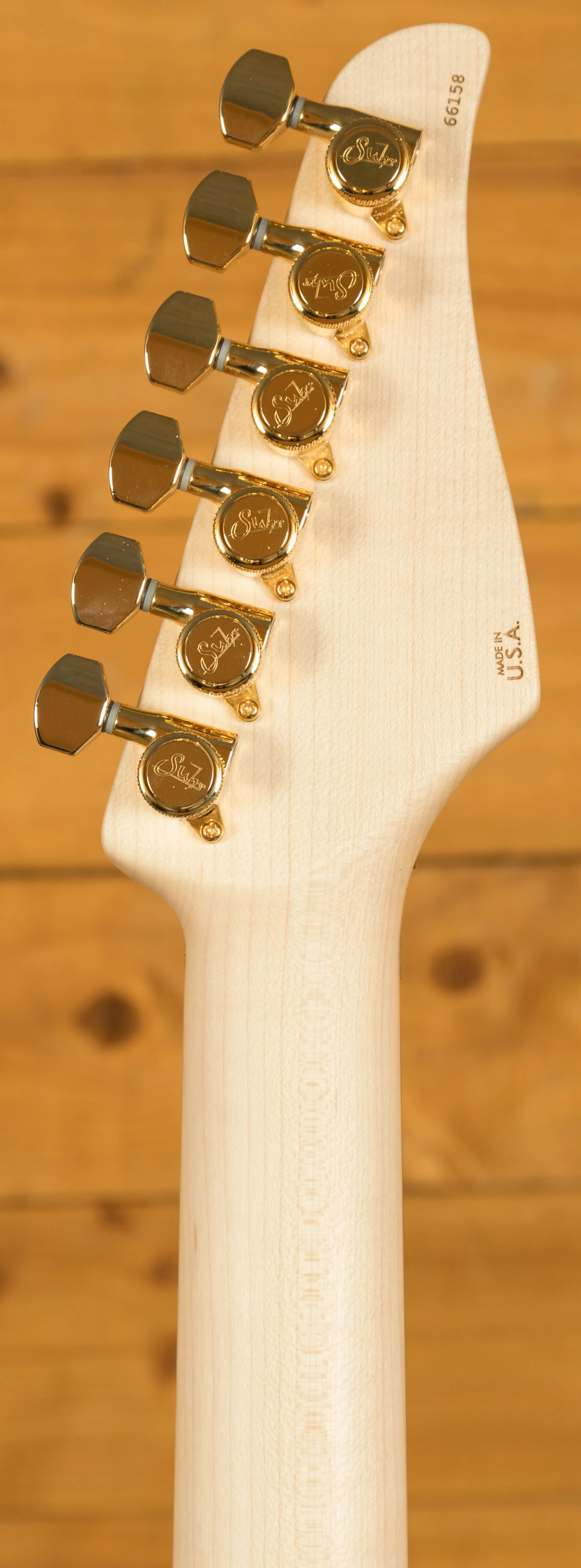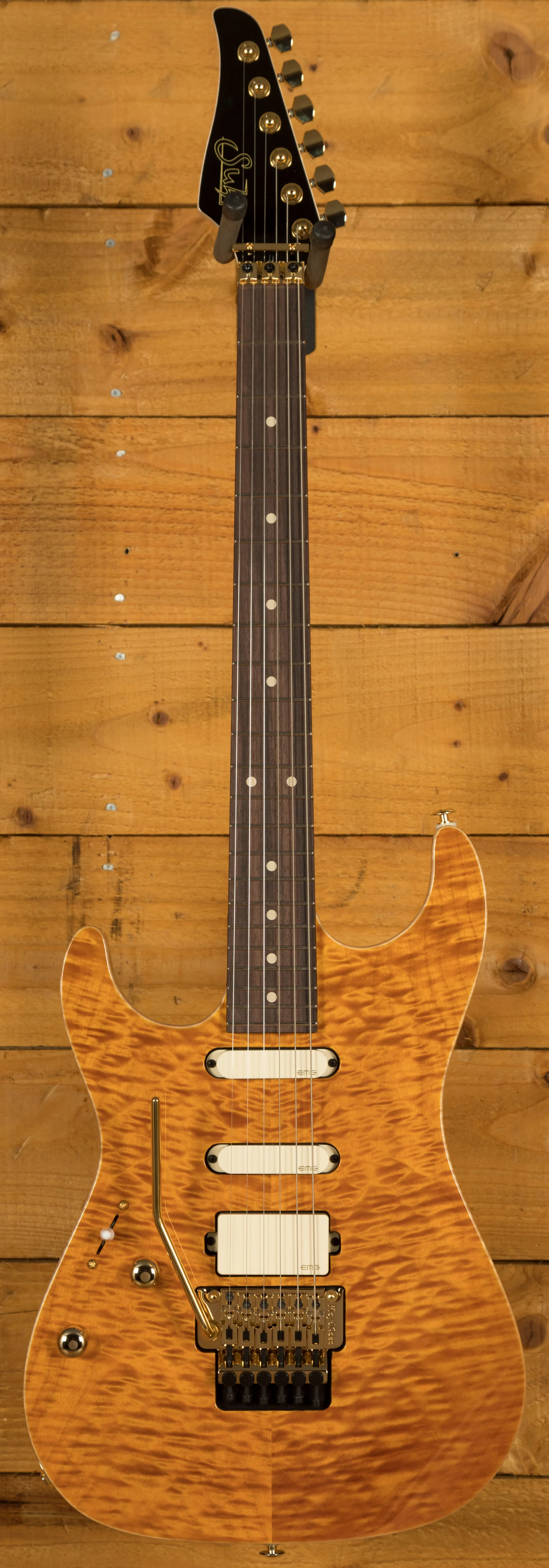 With an African Okoume body and a Plain Maple top, its tonally superior, light weight and beautifully poised for action. Suhr have finished it in an awesome Trans Caramel which looks super slick and really brings out the great figuring on show.