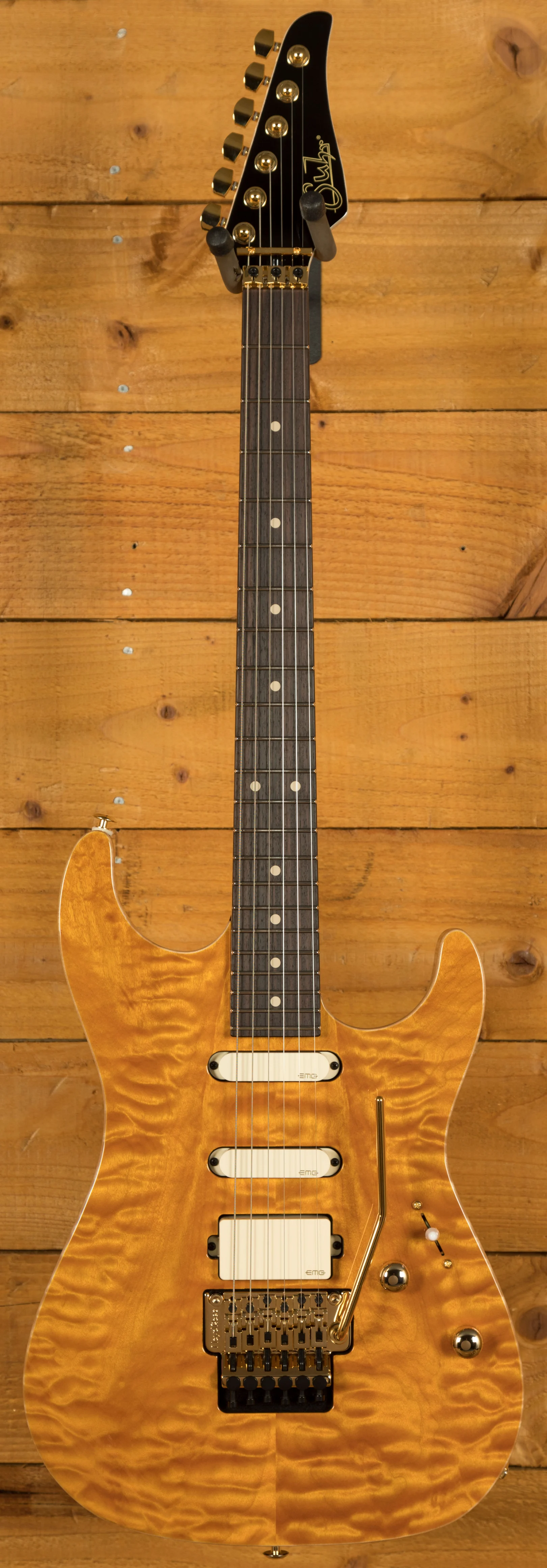 With an African Okoume body and a Plain Maple top, its tonally superior, light weight and beautifully poised for action. Suhr have finished it in an awesome Trans Caramel which looks super slick and really brings out the great figuring on show.