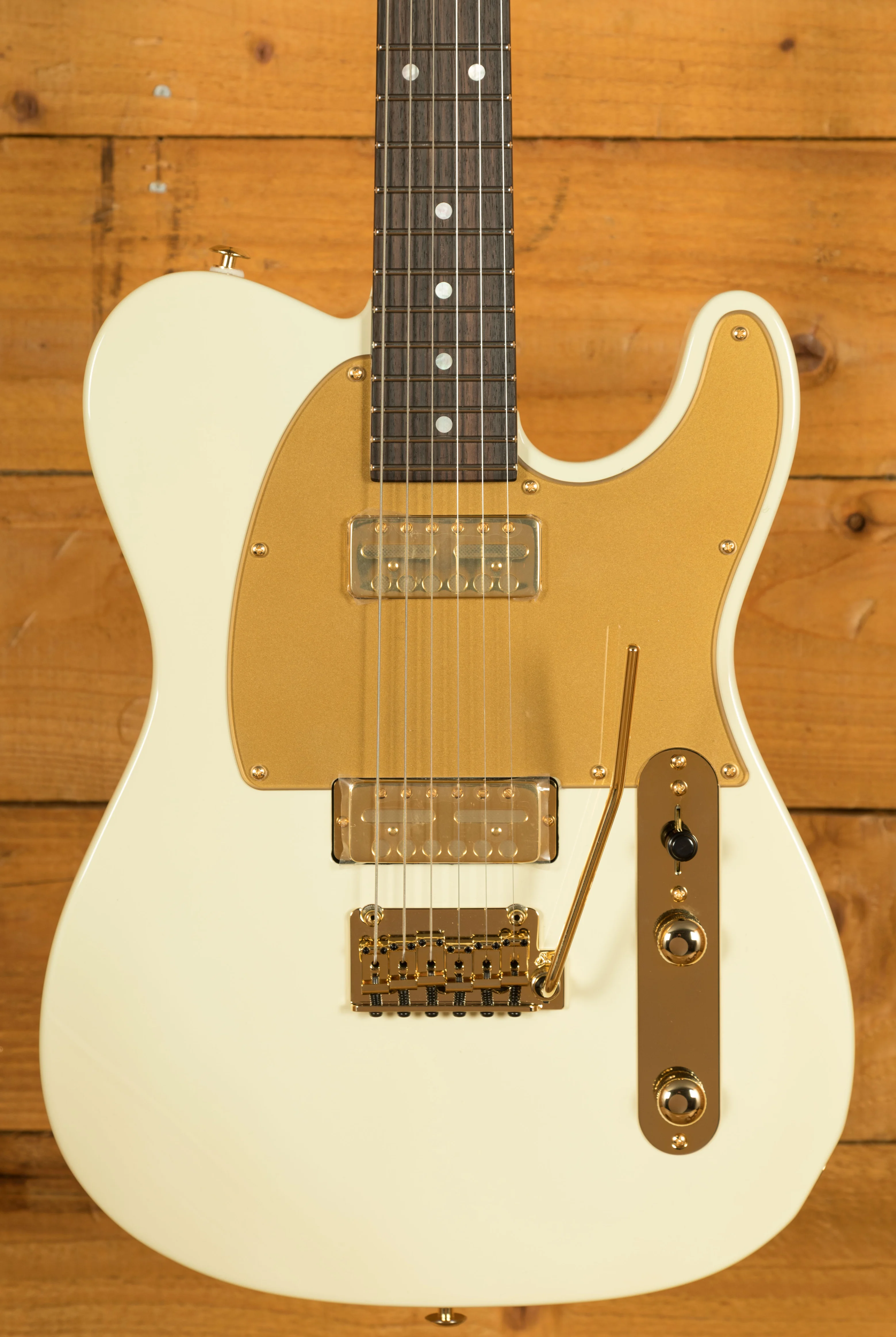 - Bridge: 2-Post Tremolo with bent saddles, in stunning gold