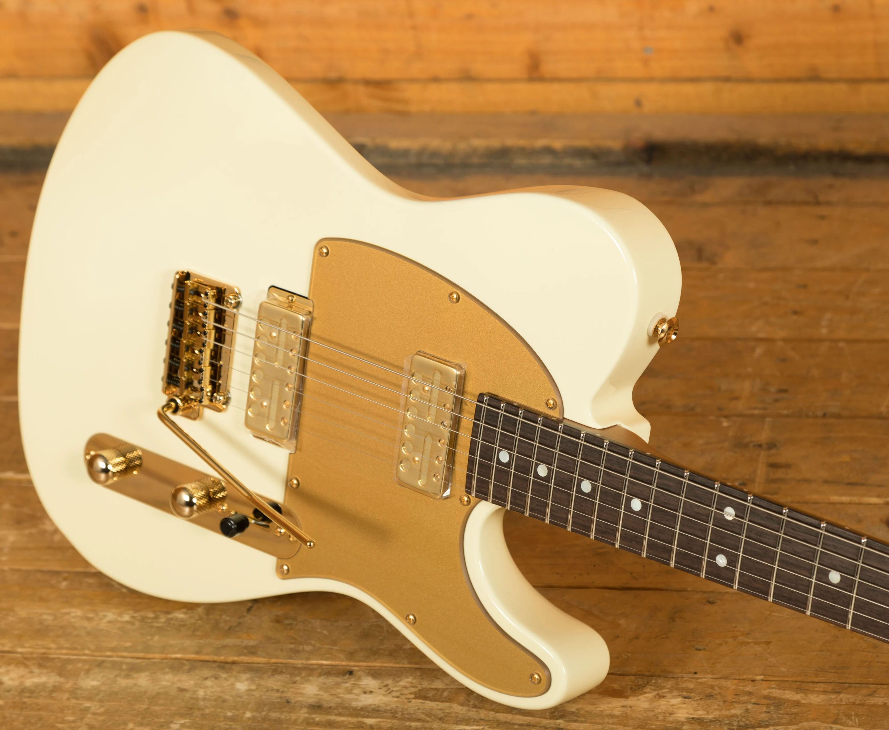 The 2024 edition features an all-new 'M.A.' White gloss finish, elegantly contrasted by a matte gold pickguard and reversed headstock for a touch of sophistication. Equipped with a 2-Post tremolo and Lollar gold-foil pickups, this guitar delivers unmatched sonic clarity and expression, whether you're strumming chords or shredding solos.