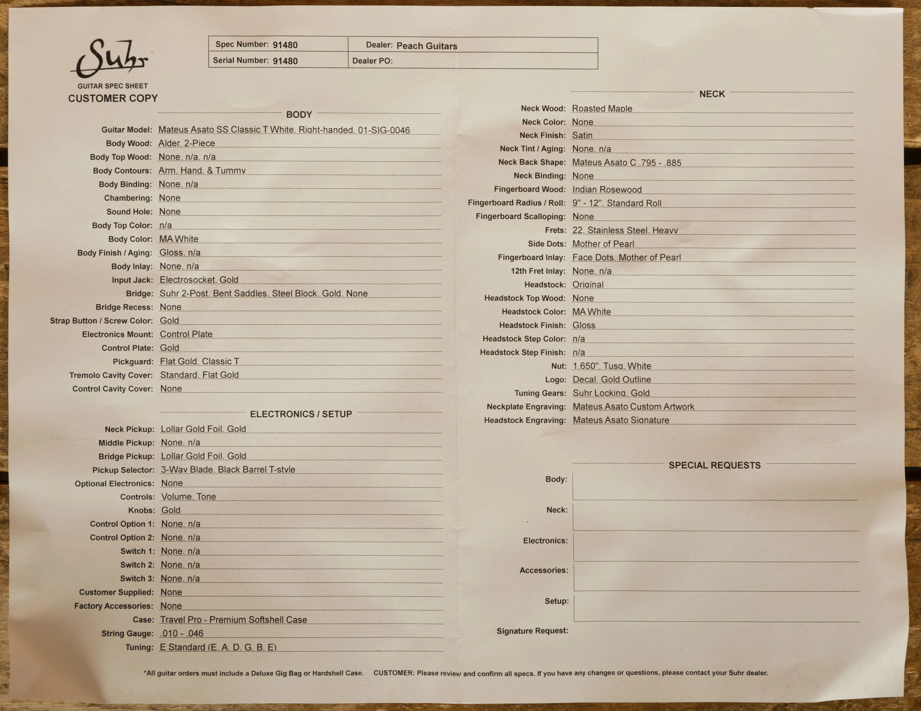 Exclusive Peach Guitars Offer: Purchase your Suhr Mateus Asato Signature Series guitar from Peach Guitars, and enjoy a full professional setup to your exact preferences. Plus, we provide studio-quality photography of the exact guitar you'll be bringing home, so you can admire every detail before it arrives.