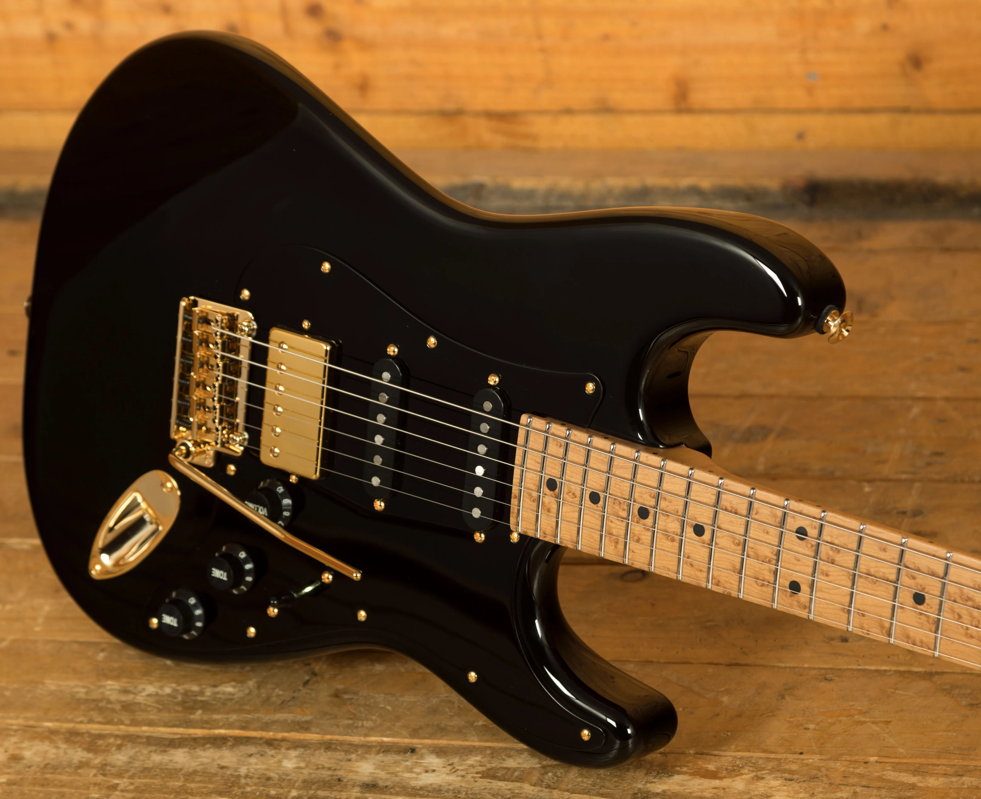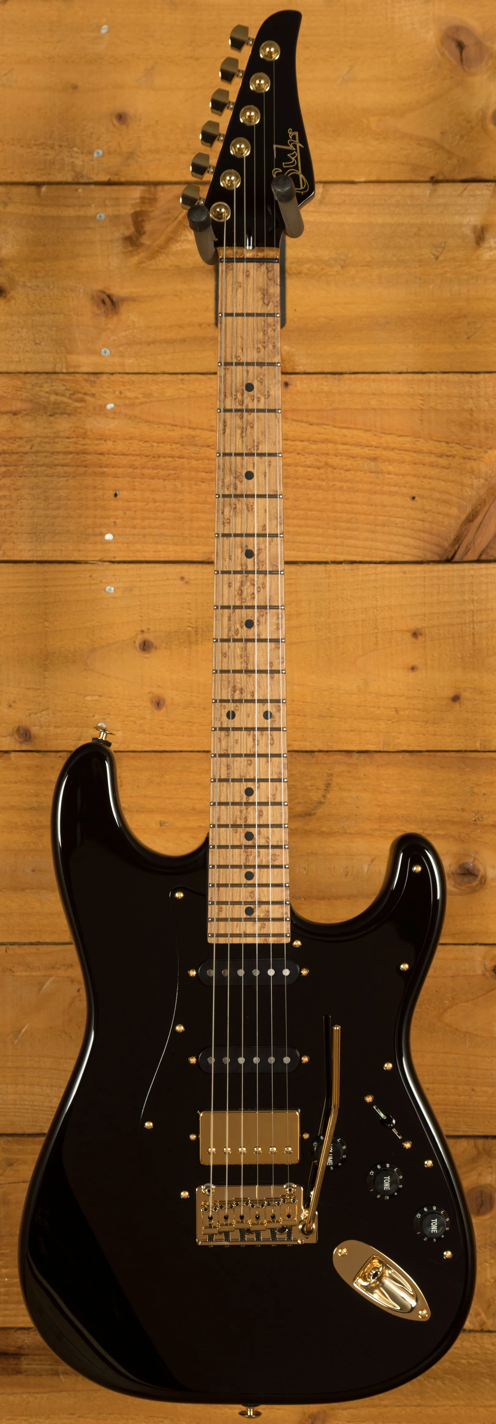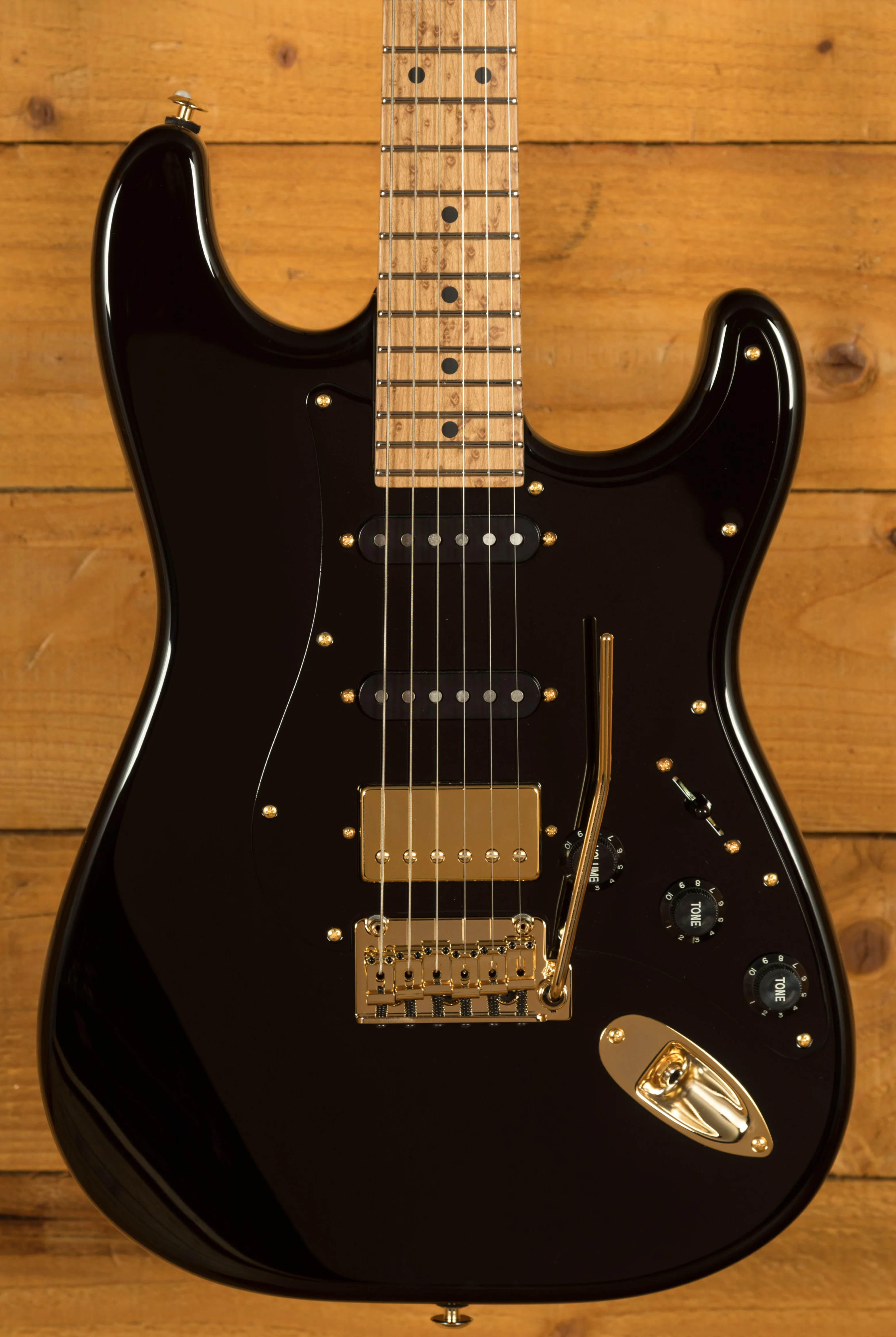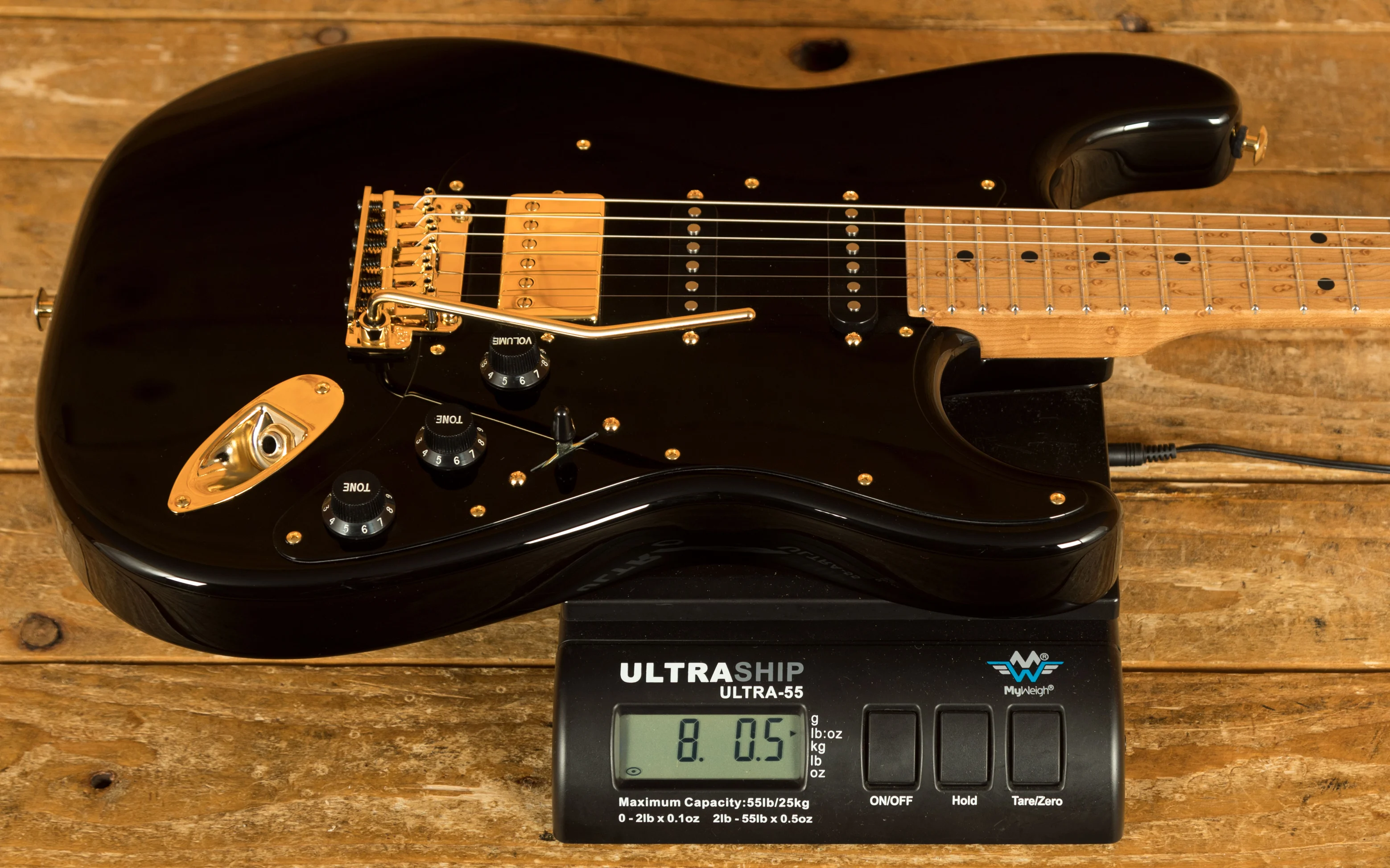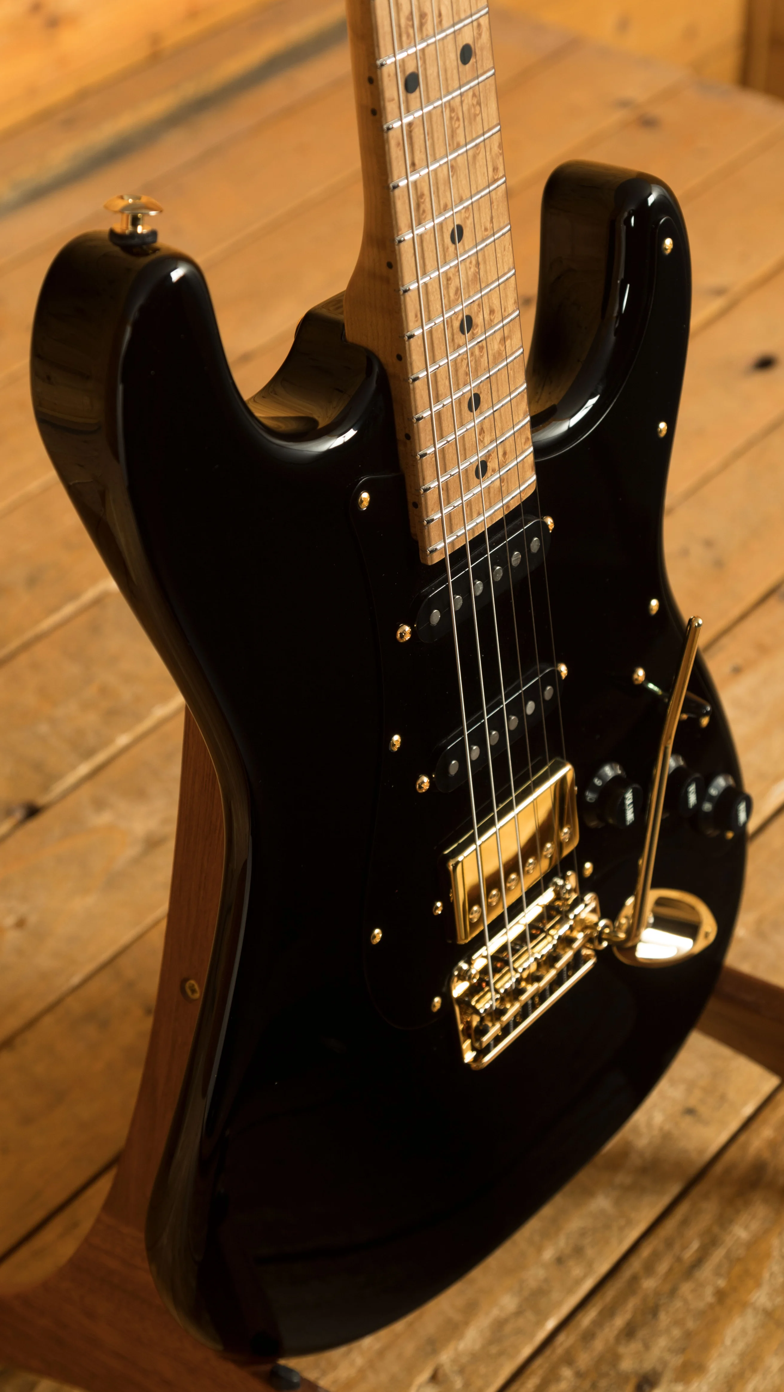 The body, carved from Alder, boasts a sleek and glossy finish, exuding a sense of elegance. The body shape, reminiscent of the Classic S model, ensures a familiar yet sophisticated aesthetic. Adorning the body is a glossy Bakelite pickguard, adding to the guitar's vintage appeal while offering durability and style.