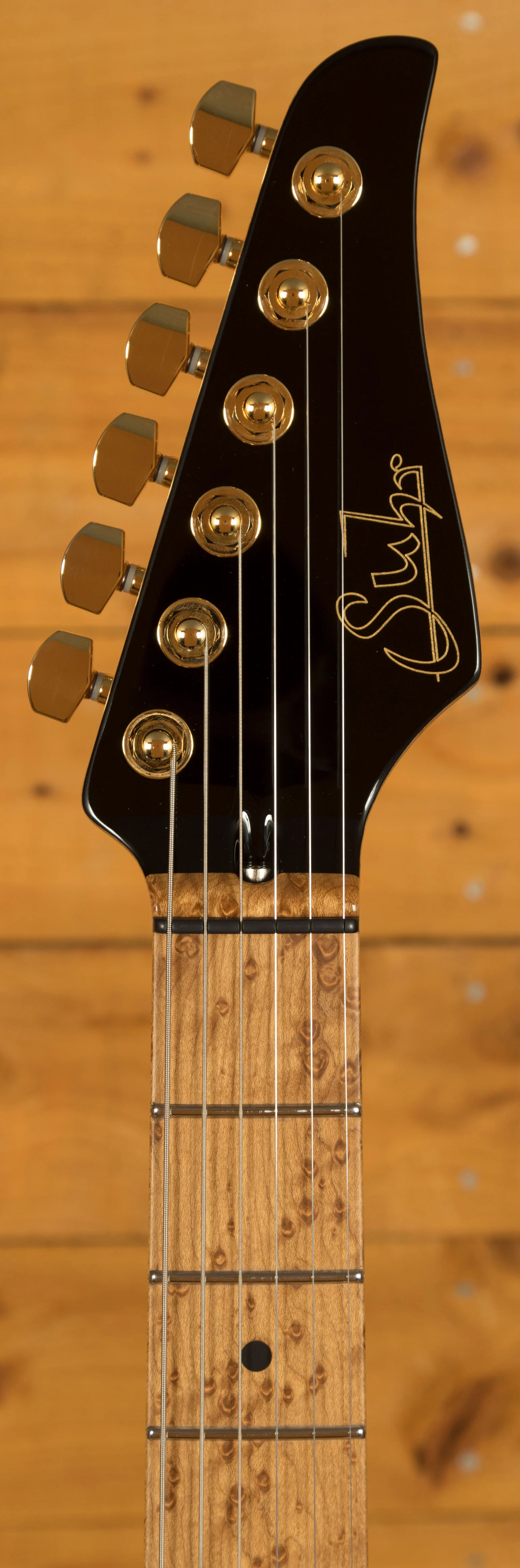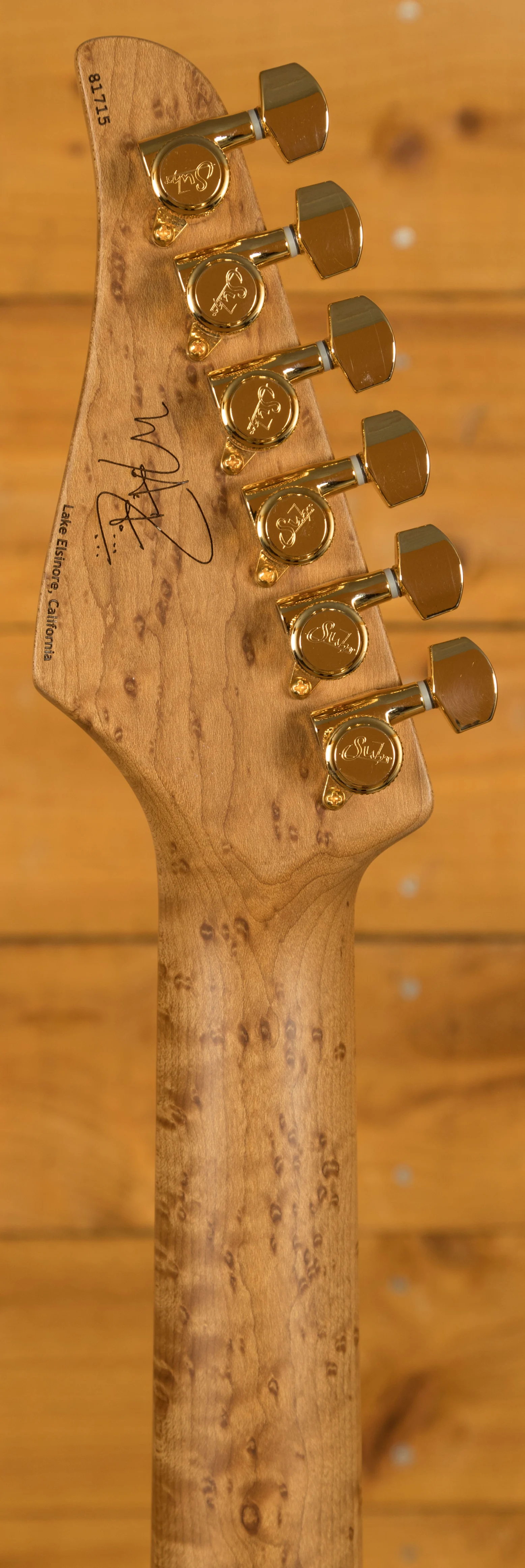 Adding to the guitar's uniqueness are several custom appointments that celebrate Mateus Asato's signature style. Each guitar comes with a special laser-engraved neck plate and Mateus' signature on the back of the headstock, adding a personal touch to the instrument. The headstock itself features a gold laser-etched Suhr logo, enhancing the guitar's elegant aesthetic. Delivered in a classy black Tolex hardshell case, the Mateus Asato Classic S Signature guitar is protected and ready for any stage or studio.