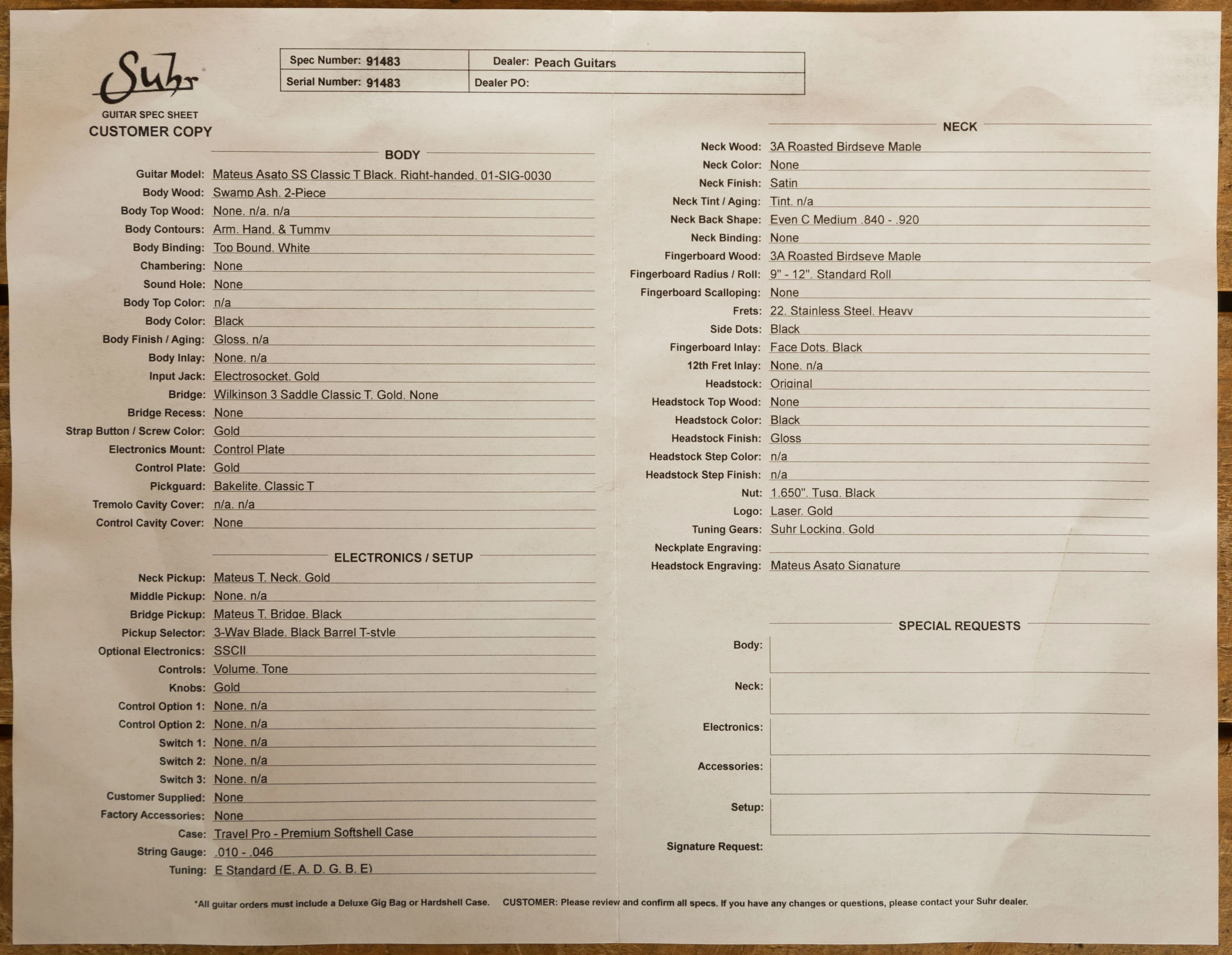 Mateus Asato has emerged as a leading voice in the guitar world, captivating audiences with his musicality, impeccable tone, and extraordinary technique. Recognised as one of the most versatile and well-rounded musicians of his generation, Mateus has now collaborated with Suhr to create his next signature instrument: the Suhr Mateus Asato Classic T Signature guitar. This masterpiece represents the culmination of Mateus's artistic vision and Suhr's unmatched craftsmanship.