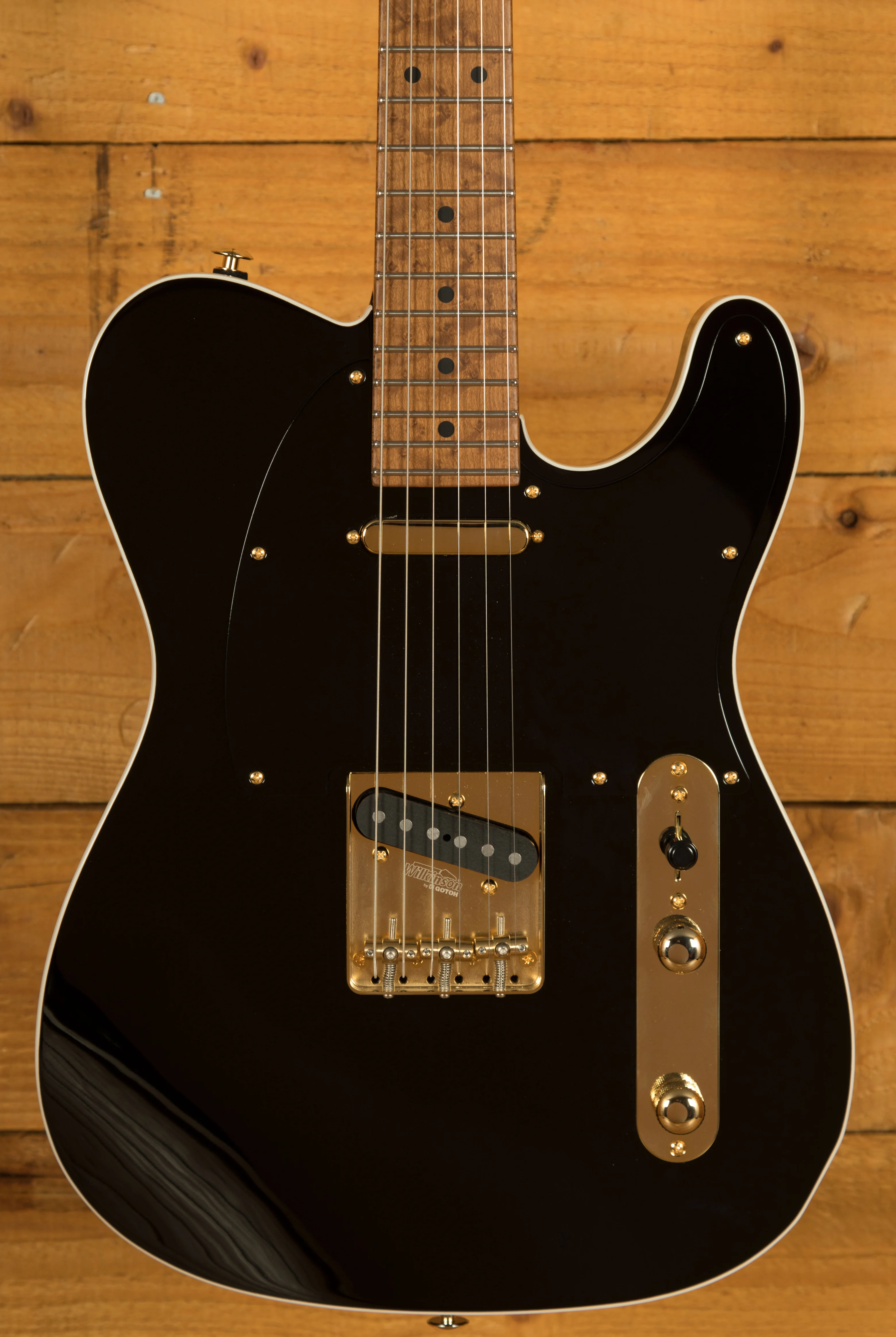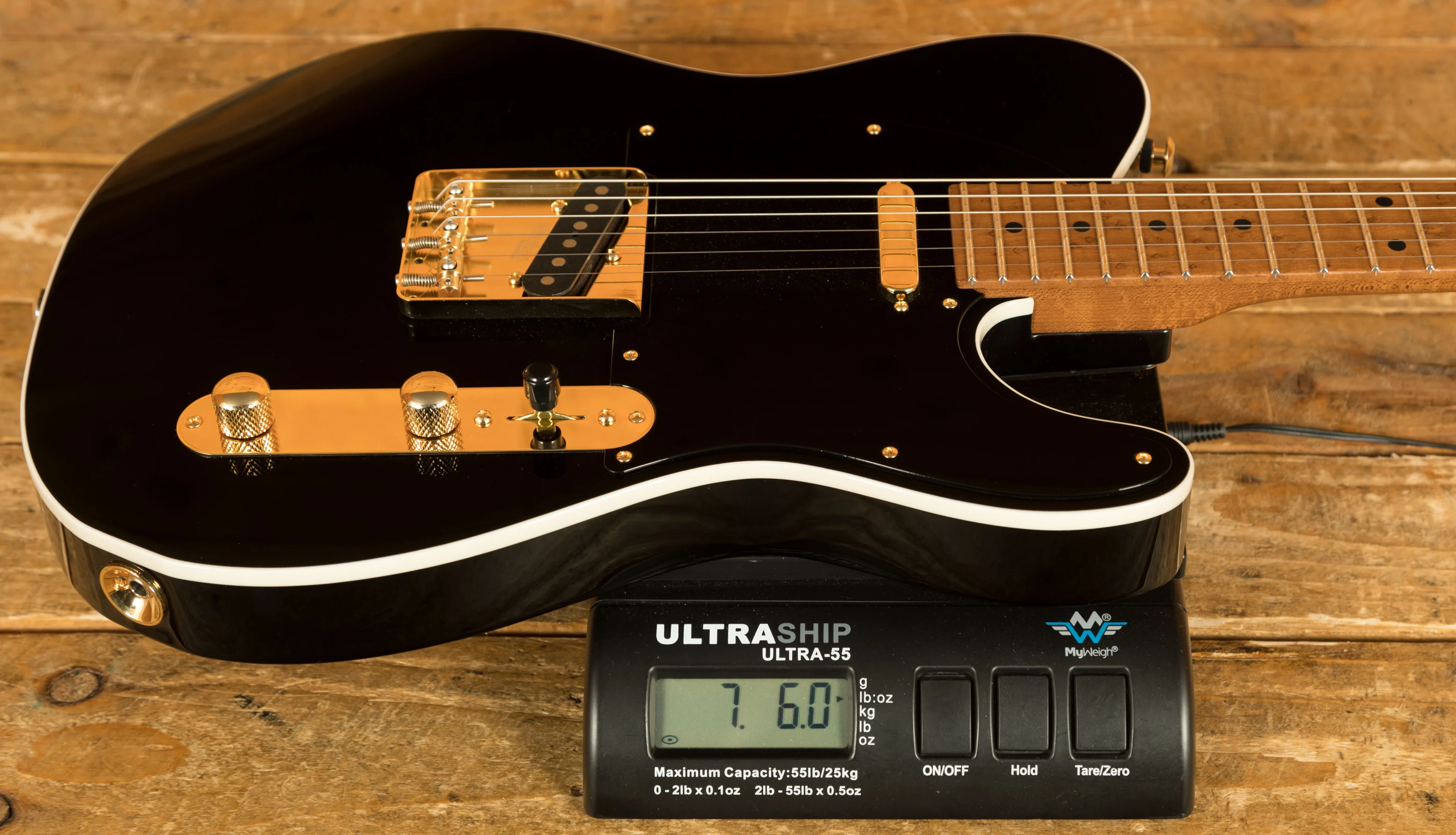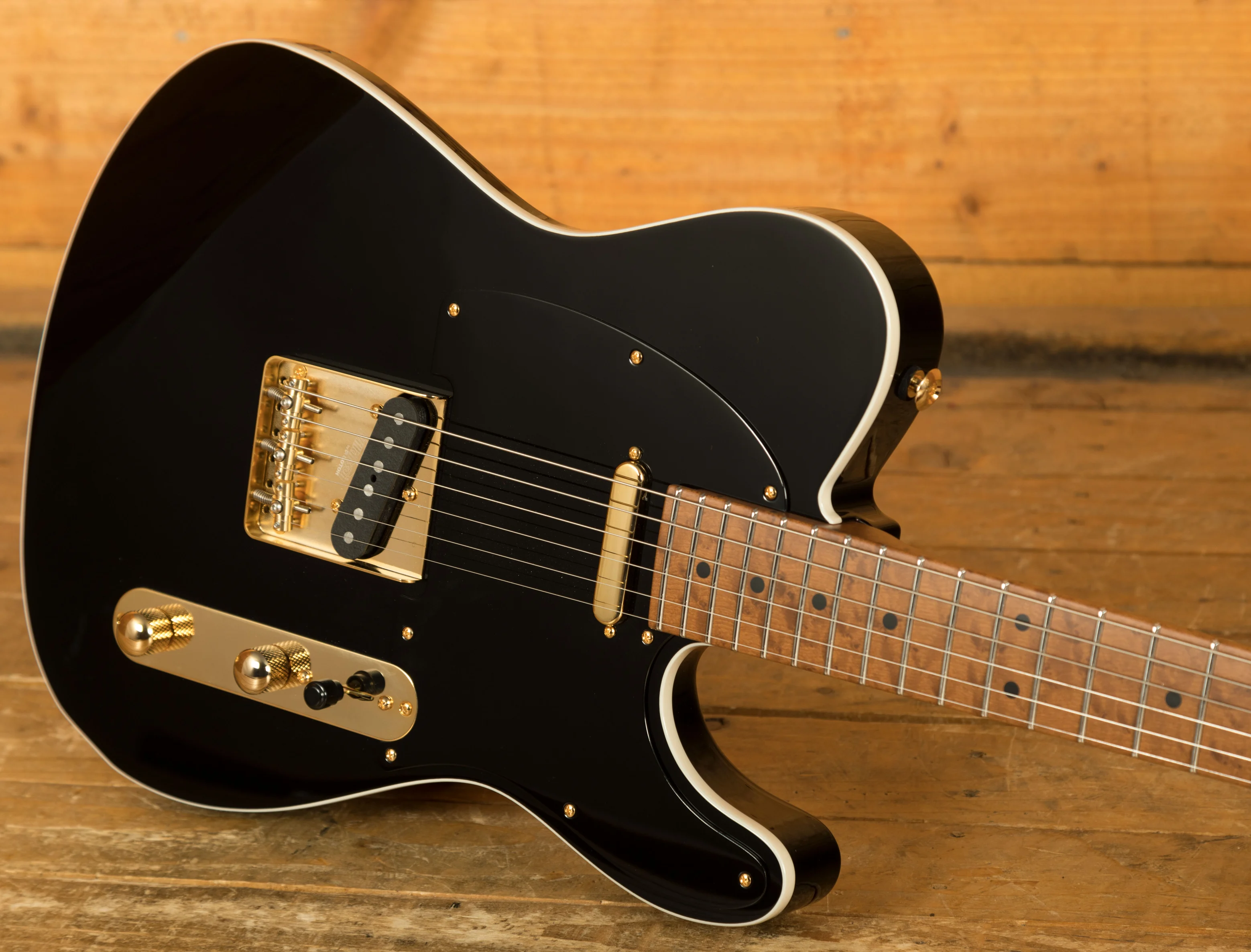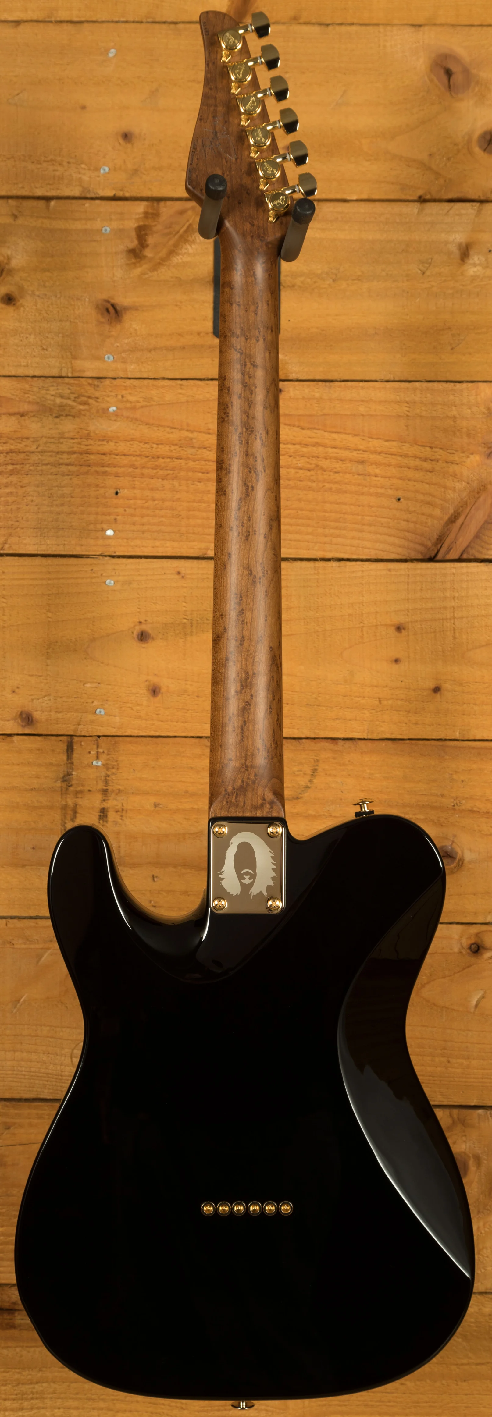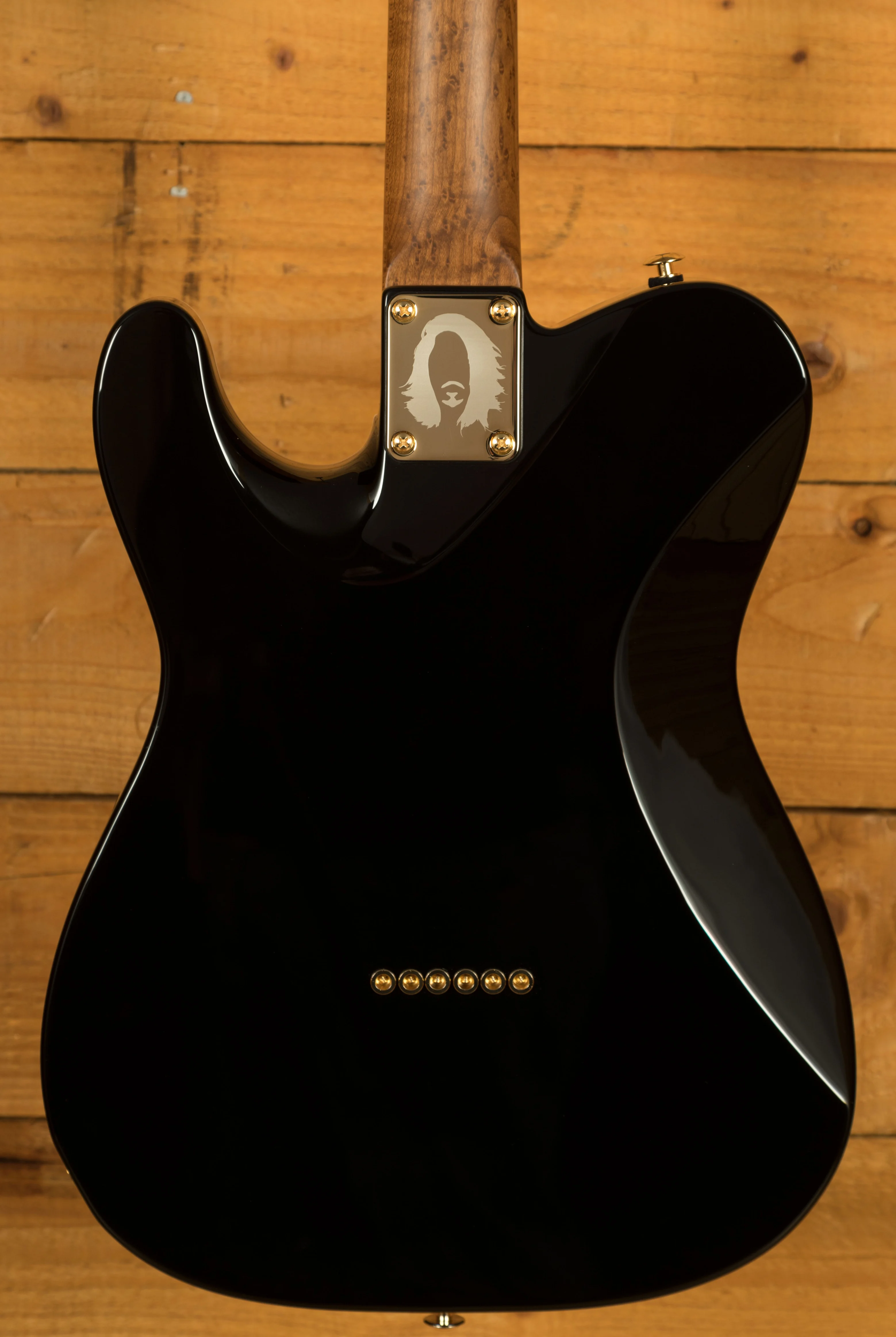 The Mateus Asato Classic T Signature guitar is a testament to refined elegance and innovative design. Its body, crafted from top-bound Swamp Ash, is finished in a sleek, piano black gloss. Complementing the body is a 3A Roasted Birdseye Maple neck, renowned for its stability and unique grain patterns, adding a visual and tactile appeal to the instrument.