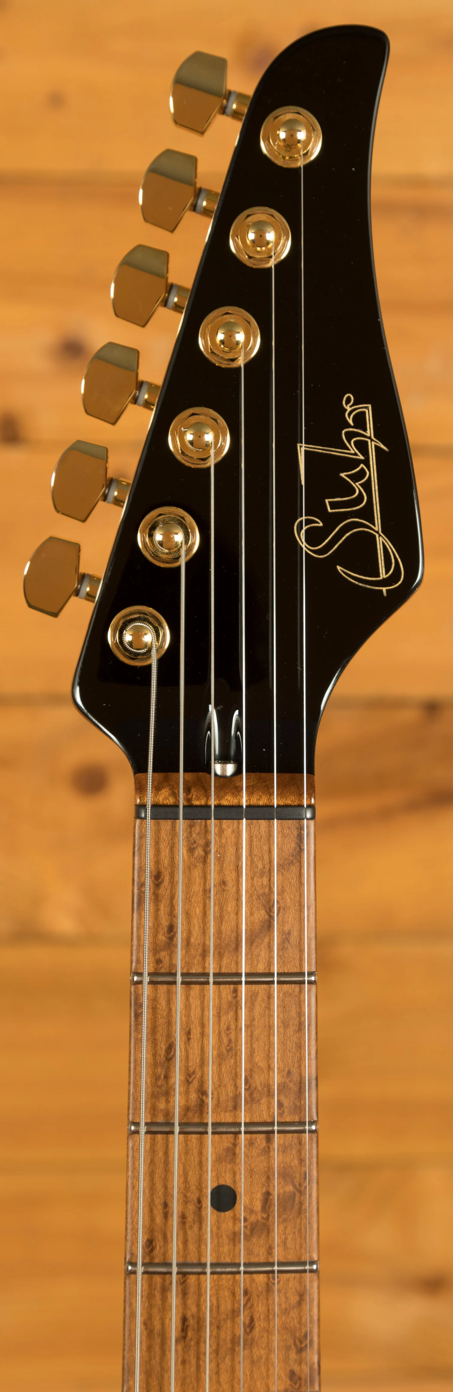 Heavy stainless steel frets measuring .051x.108 contribute to a durable and fast-playing experience, while the satin finish on the neck and the gloss finish on the headstock highlight the guitar's sophisticated look. A gold laser-etched Suhr logo on the headstock adds a touch of elegance.