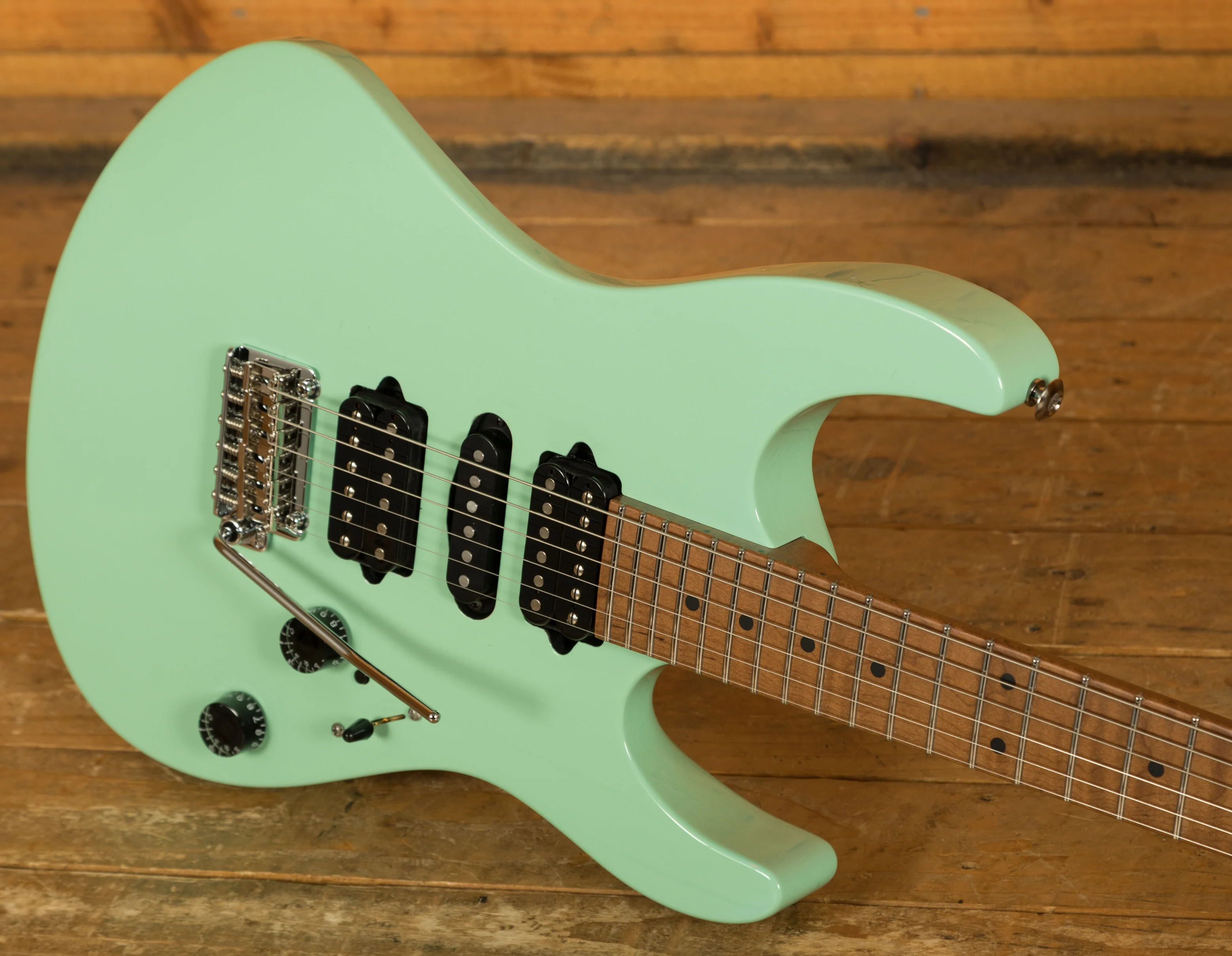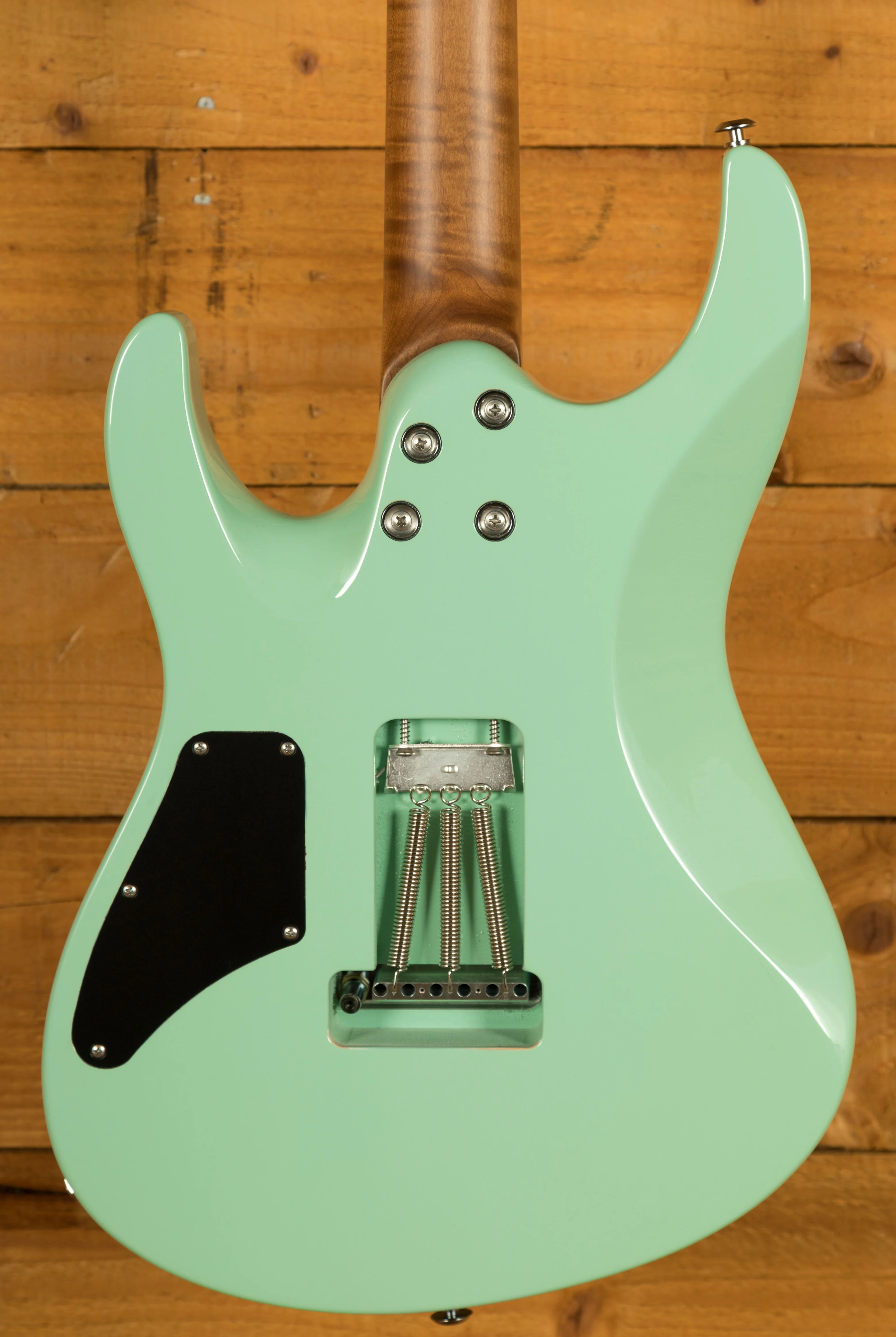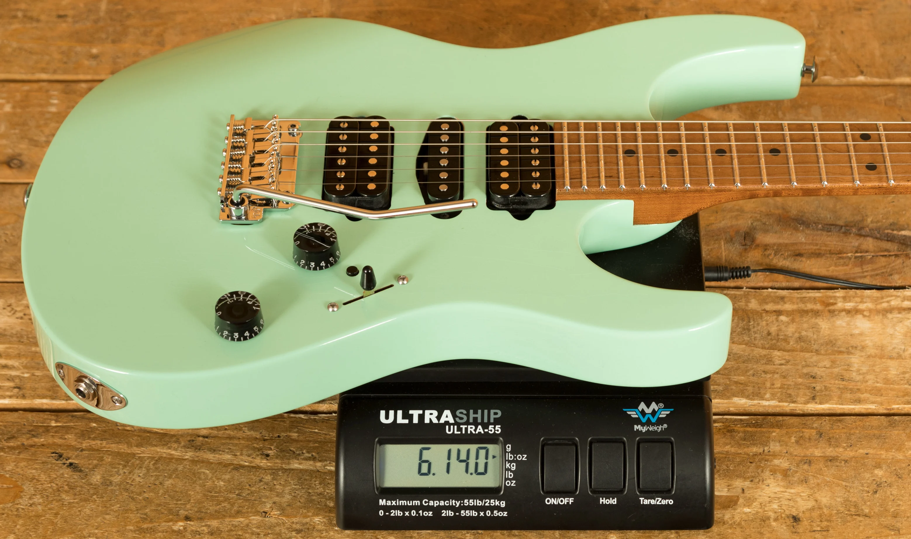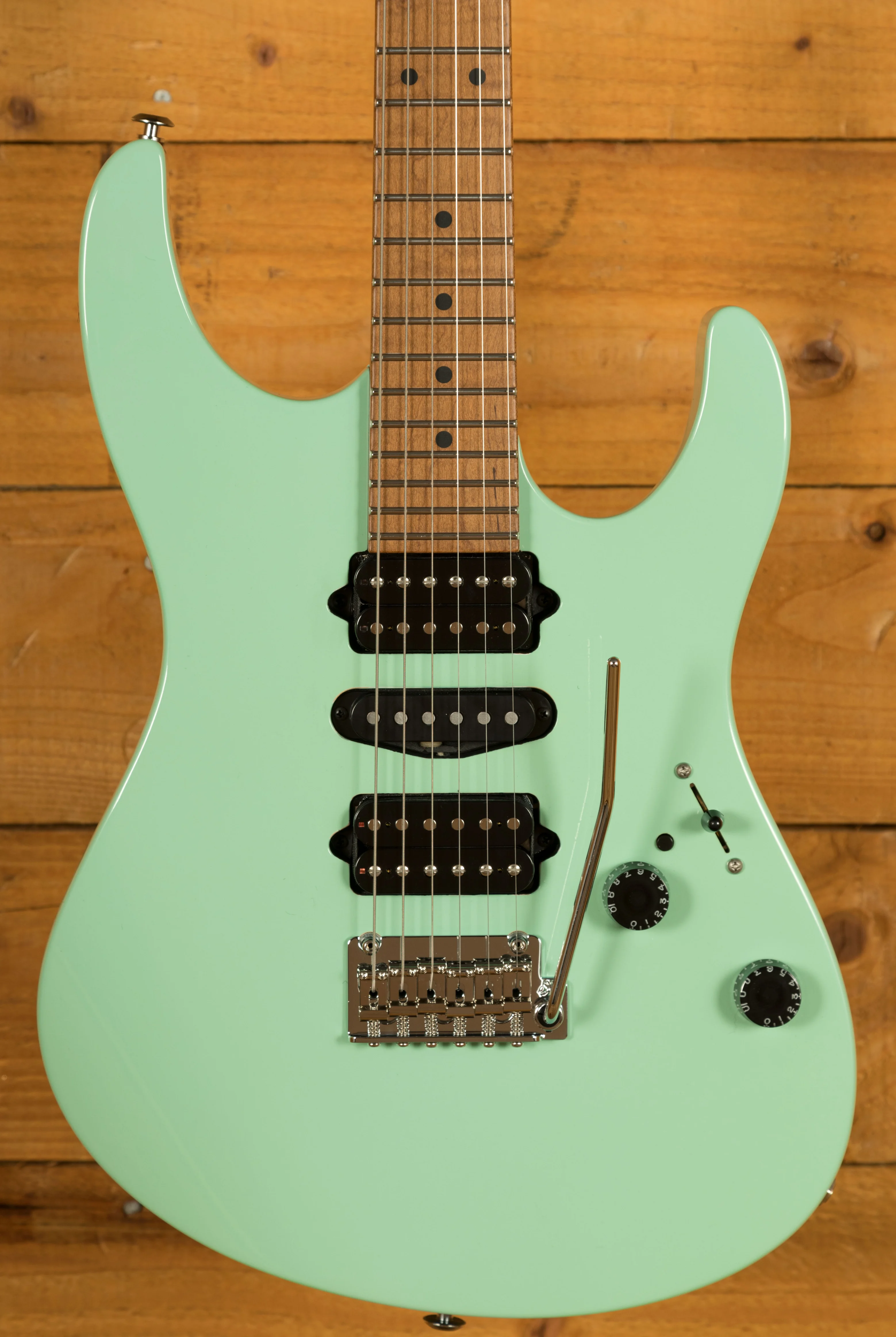 The Suhr Modern Antique Limited Edition is a high-performance guitar that combines premium materials, expert craftsmanship, and versatile features. Built with a basswood body and plain maple top, it offers a balanced tonal foundation with warmth and clarity. The roasted flame maple neck and fingerboard add stability and durability, while also providing a refined look. Its Modern Elliptical neck profile (.780"–.830") and compound 10"-14" radius are designed for comfortable playability, making it suitable for both fast lead work and precise chord playing. With 24 jumbo stainless steel frets and a 1.650" Tusq nut, players benefit from long-lasting fret life, smooth bends, and accurate intonation.