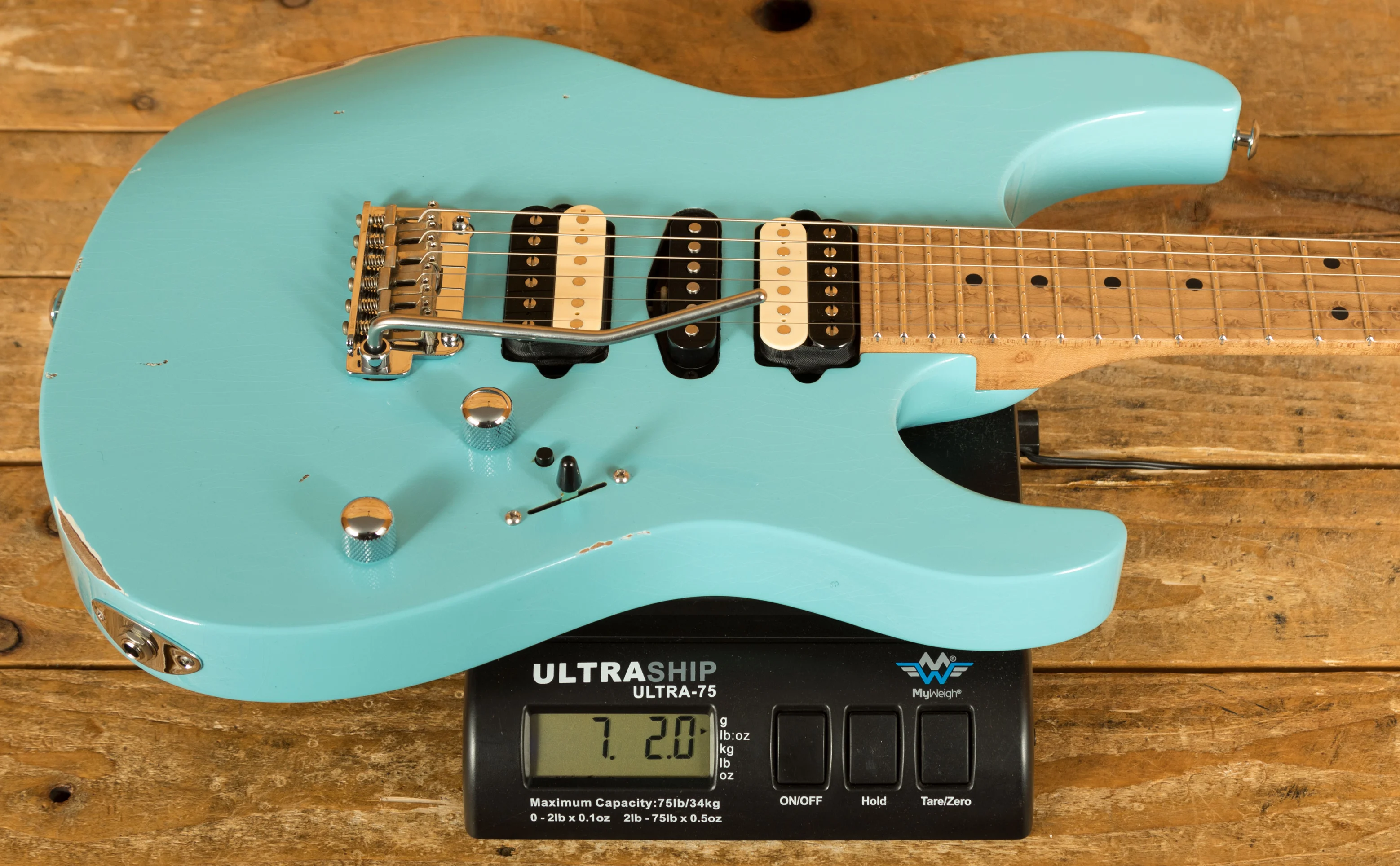 Sporting a roasted Alder Modern body in a gorgeous Dahne Blue - expertly aged to stylishly reveal the wood grain beneath, this pastel-esque colour matches amazingly with the Zebra pickup bobbins that hold the main source of sonic goodness. A set of SSV(neck), ML Standard(middle), and SSH Plus(bridge) pickups offer a wide selection of tones right at the players fingertips. From rock and metal prowess, to vintage warmth, to punchy jazz, you'll be sure to find the right voice - especially when you look at the control options. With a 5-way blade switch and push-pull coil split for both humbuckers, the options don't stop coming. Add on the secret weapon that is the Blower Switch circuit - a tool to override your output with the bridge pickup wired straight to the jack with a single button press - and you have yourself a sonic machine ready for any situation!