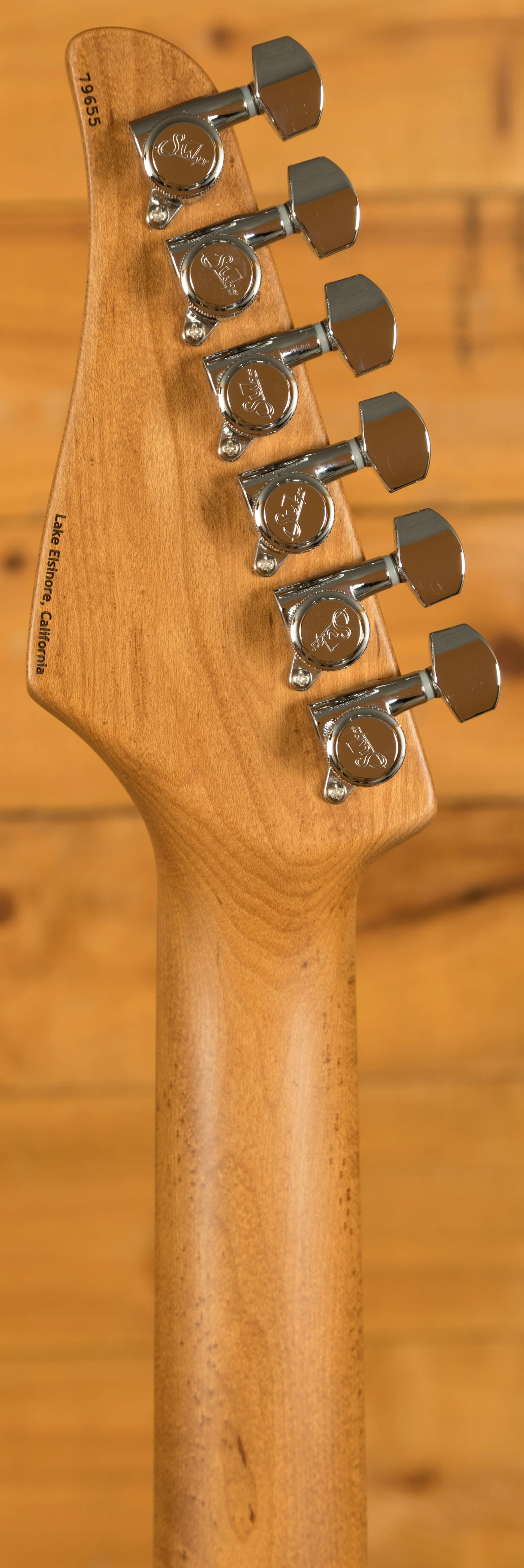 The Modern Plus is equipped with Suhr's Modern Elliptical neck profile with rolled edges, Pau Ferro fingerboard and a 10"- 14" radius it offers an extremely comfortable shape. The Roasted Maple neck is finished in satin, which provides the smooth feel of natural wood as well as protection from moisture. The 24 Jumbo stainless steel frets offer great string bending potential and long lasting playability while the sculpted heel allows for great access right up the neck.