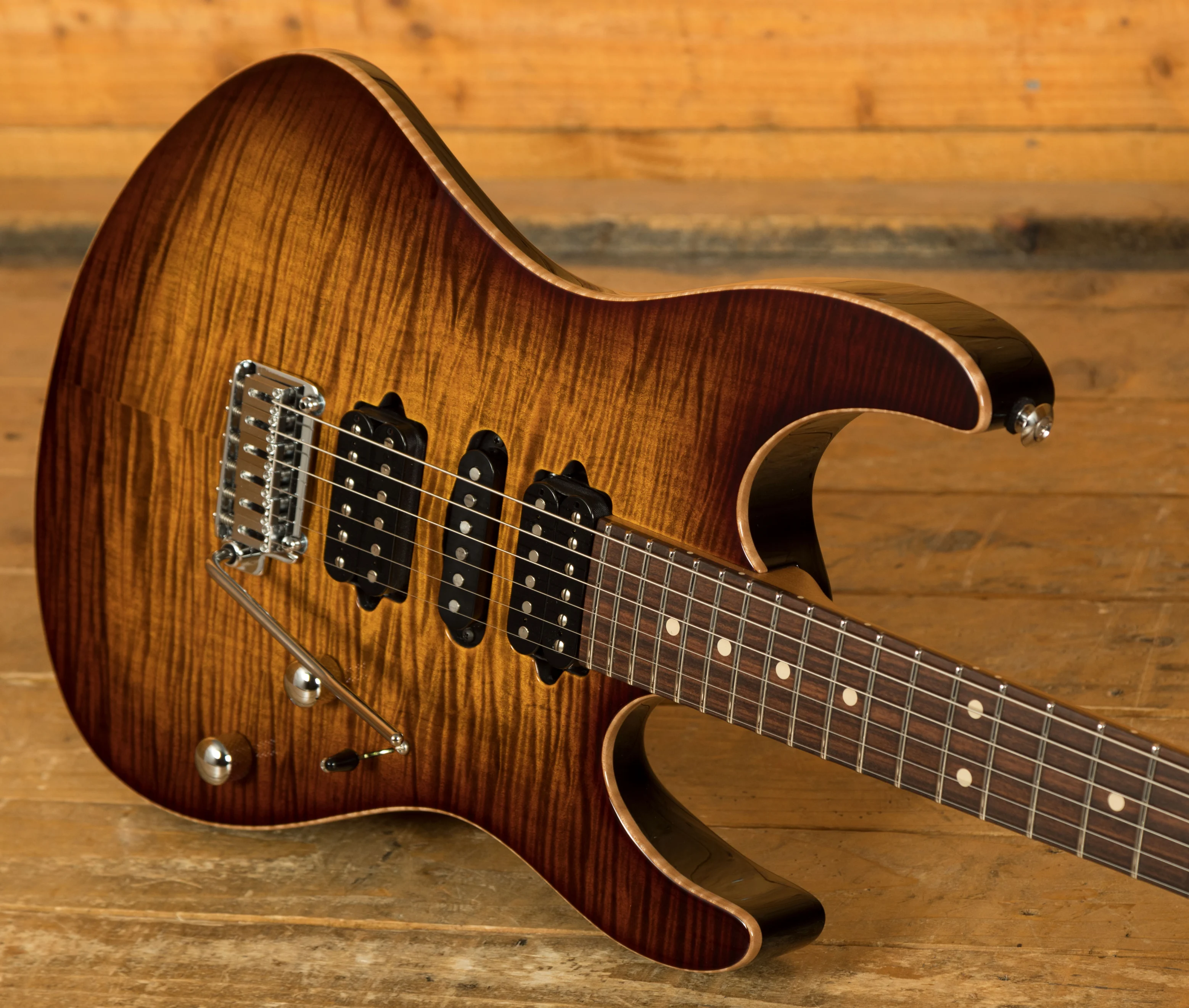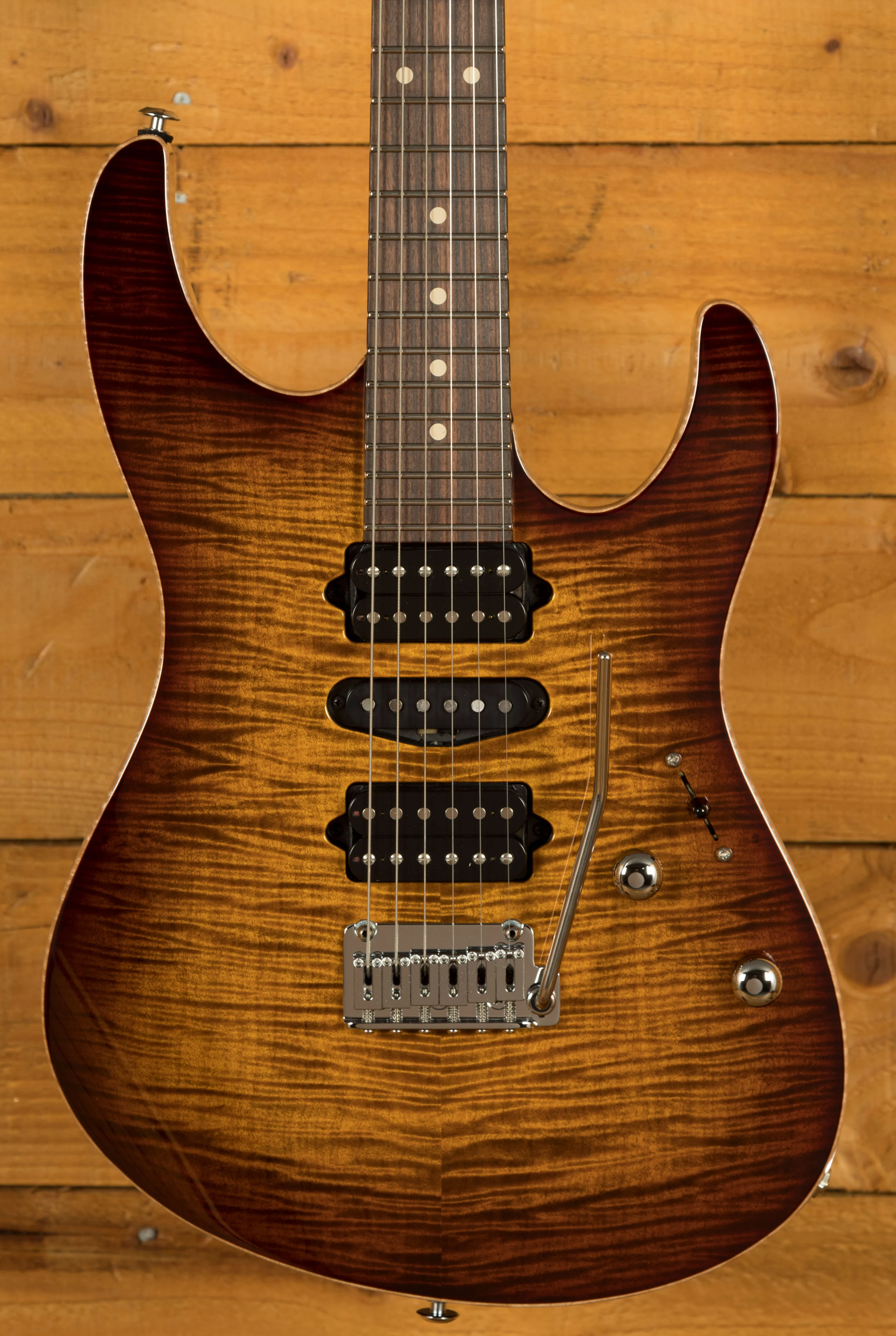With a Basswood body and a lush Flame Maple top, its tonally superior, light weight and beautifully poised for action. Suhr have finished it in Bengal Burst and utilised arm, hand and tummy contours for a really comfortable playing experience.