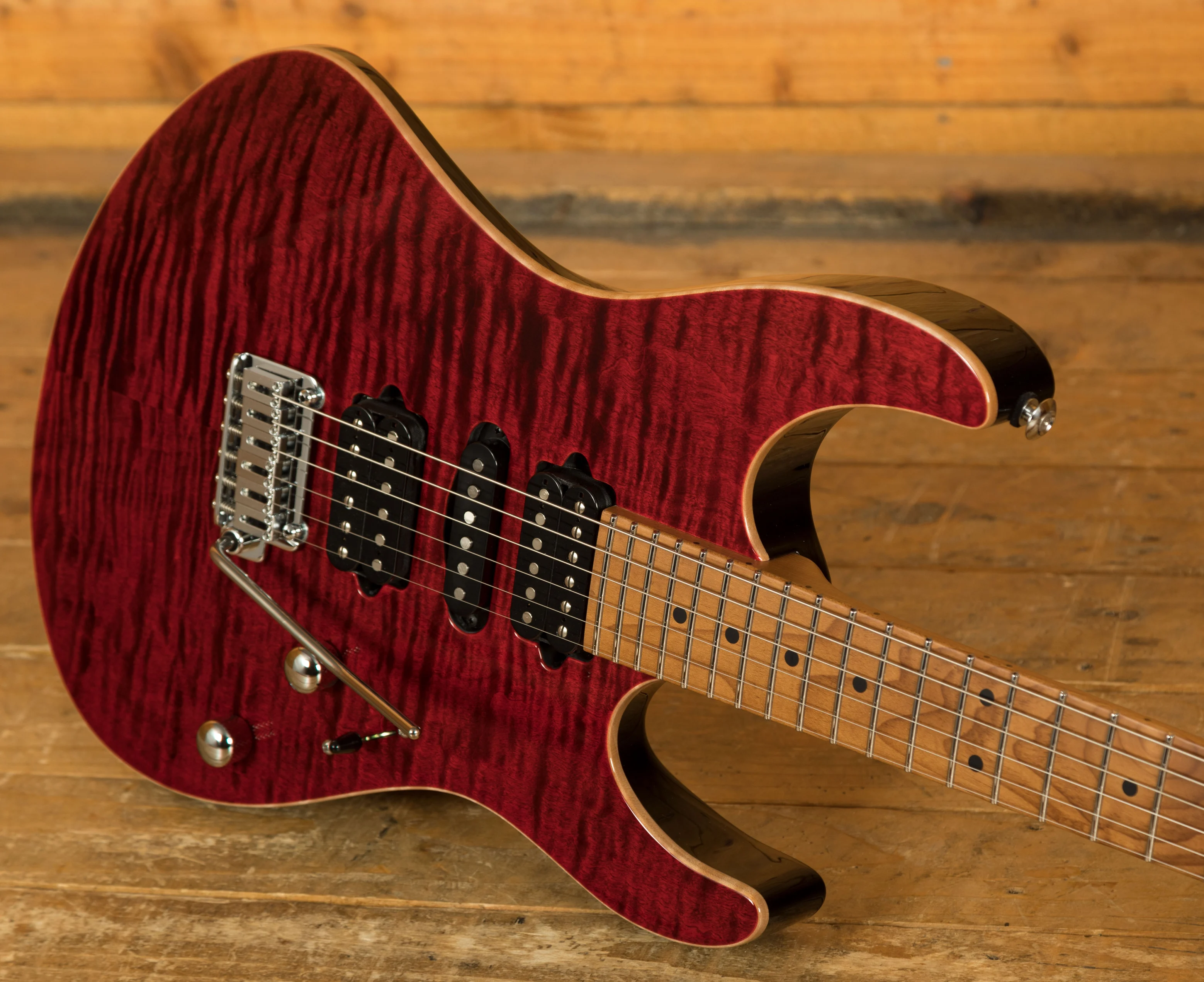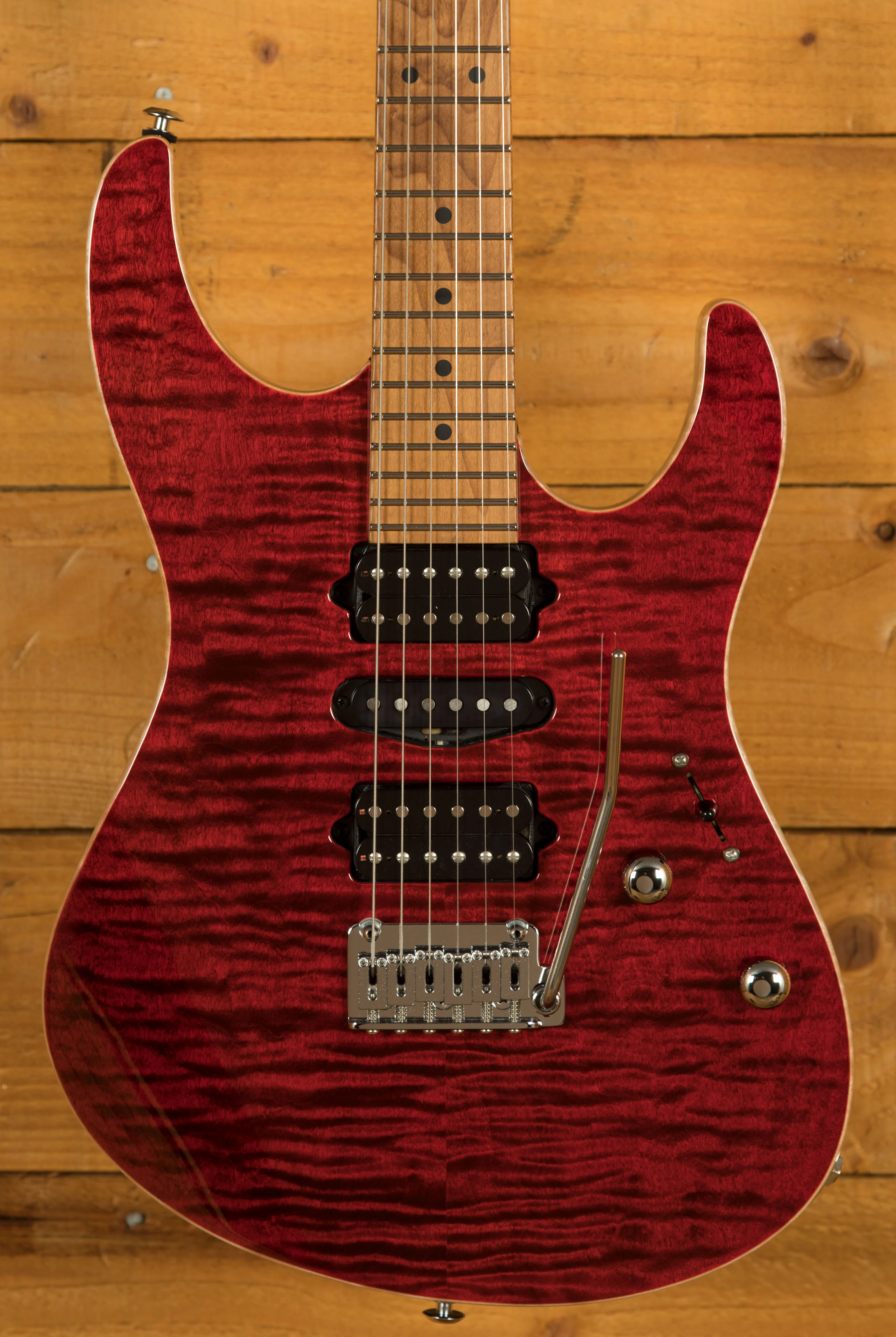 With a Basswood body and a lush Flame Maple top, its tonally superior, light weight and beautifully poised for action. Suhr have finished it in Chilli Pepper Red and utilised arm, hand and tummy contours for a really comfortable playing experience.