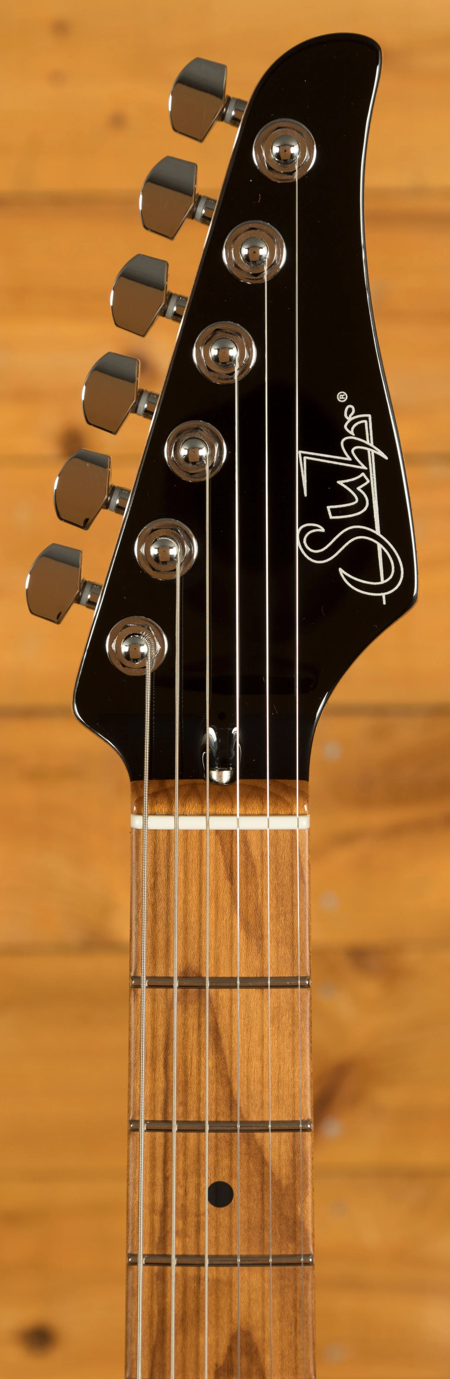 The Modern Plus is equipped with Suhr's Modern Elliptical neck profile with rolled edges, Maple fingerboard and a 10"- 14" radius it offers an extremely comfortable shape. The Maple neck is finished in satin, which provides the smooth feel of natural wood as well as protection from moisture. The 24 Jumbo stainless steel frets offer great string bending potential and long lasting playability while the sculpted heel allows for great access right up the neck.