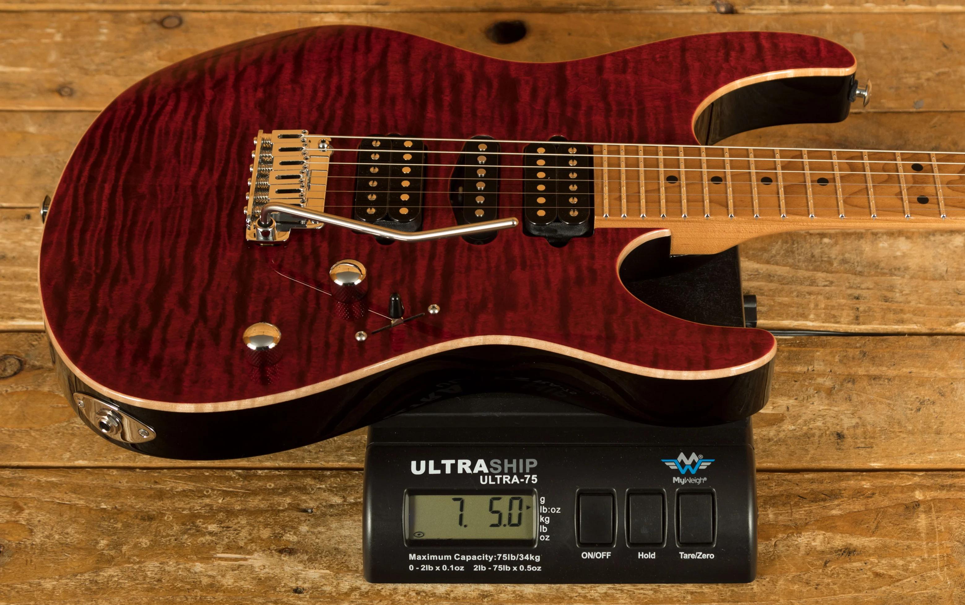 With the powerhouse pickup HSH combo, this guitar delivers monster tonal options. With an SSV Neck humbucker and an SSH+ either side of a V60LP single coil, this guitar is really versatile. Tuning stability comes from a cracking Gotoh 510 tremolo, it offers improved performance and reliability.