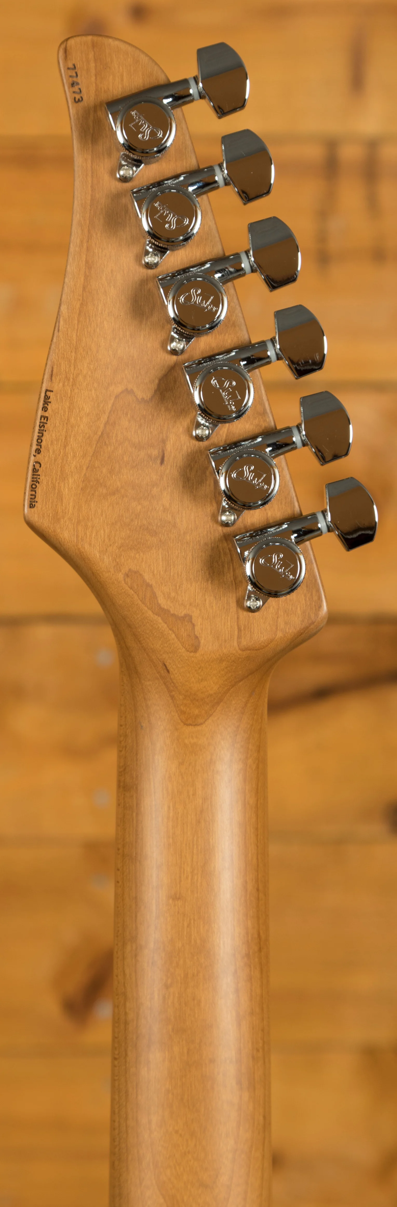 The Modern Plus is equipped with Suhr's Modern Elliptical neck profile with rolled edges, Pau Ferro fingerboard and a 10"- 14" radius it offers an extremely comfortable shape. The Maple neck is finished in satin, which provides the smooth feel of natural wood as well as protection from moisture. The 24 Jumbo stainless steel frets offer great string bending potential and long lasting playability while the sculpted heel allows for great access right up the neck.