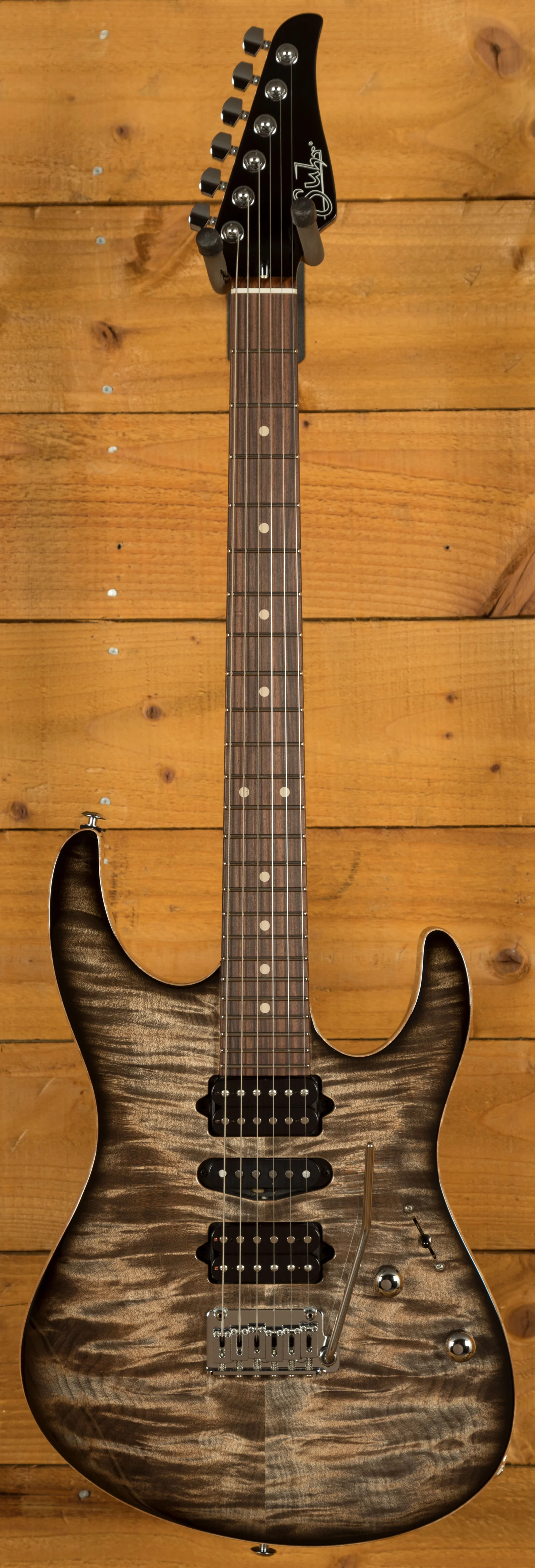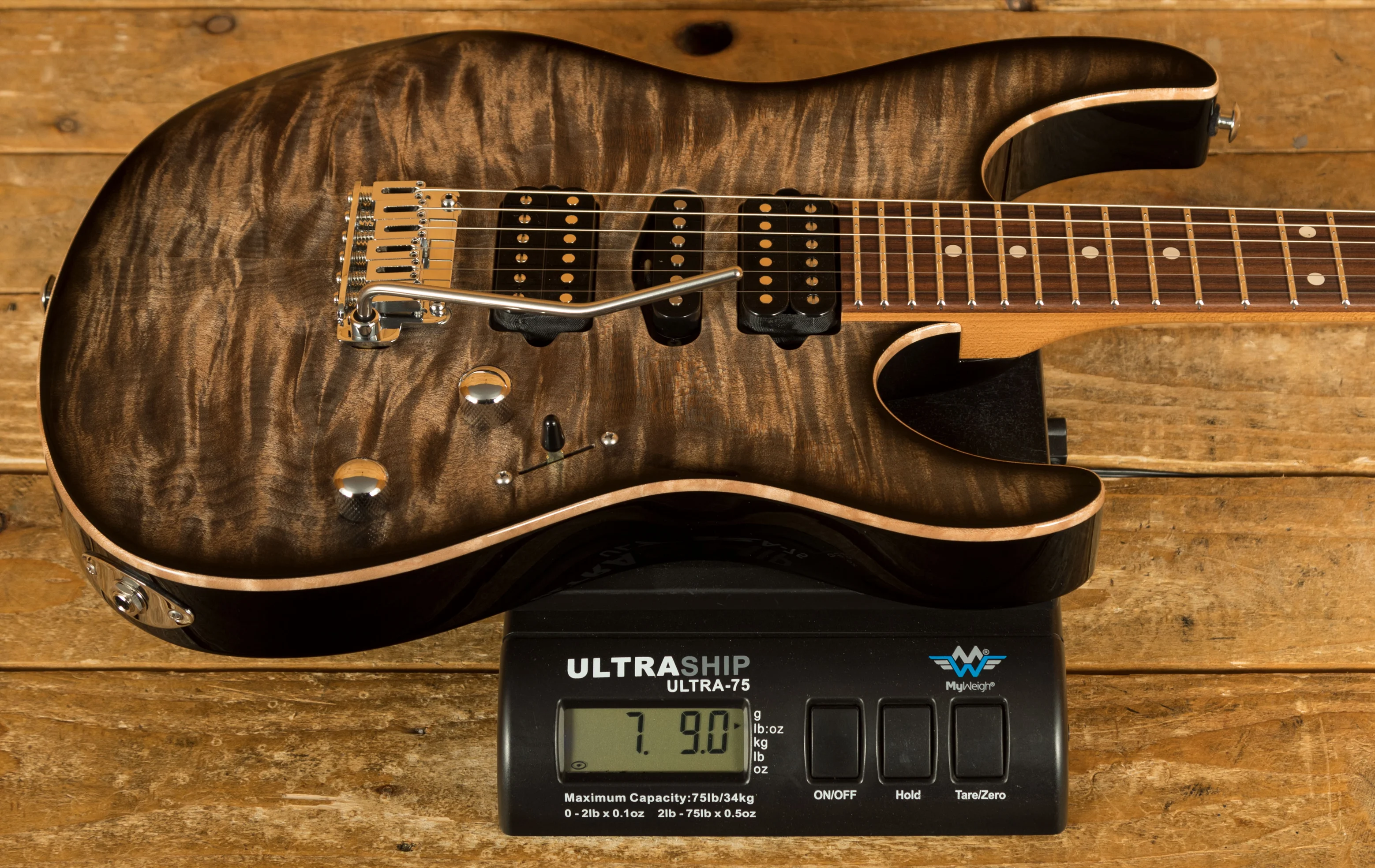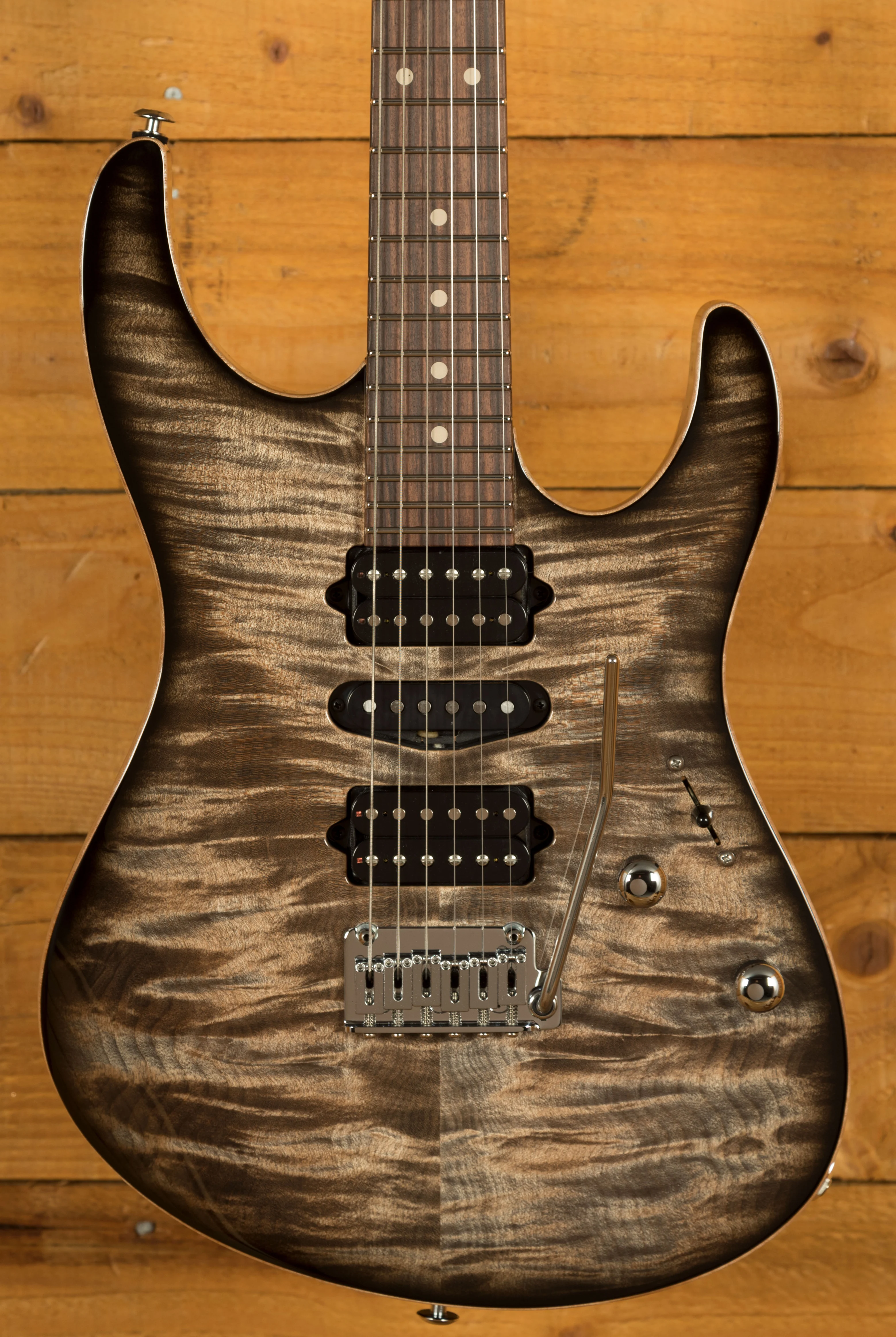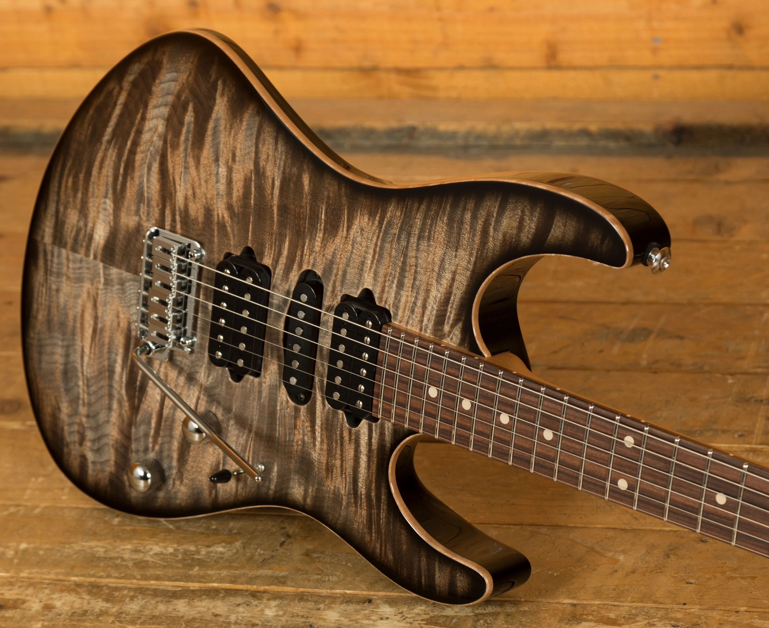 With a Basswood body and a lush Flame Maple top, its tonally superior, light weight and beautifully poised for action. Suhr have finished it in Trans Charcoal Burst and utilised arm, hand and tummy contours for a really comfortable playing experience.