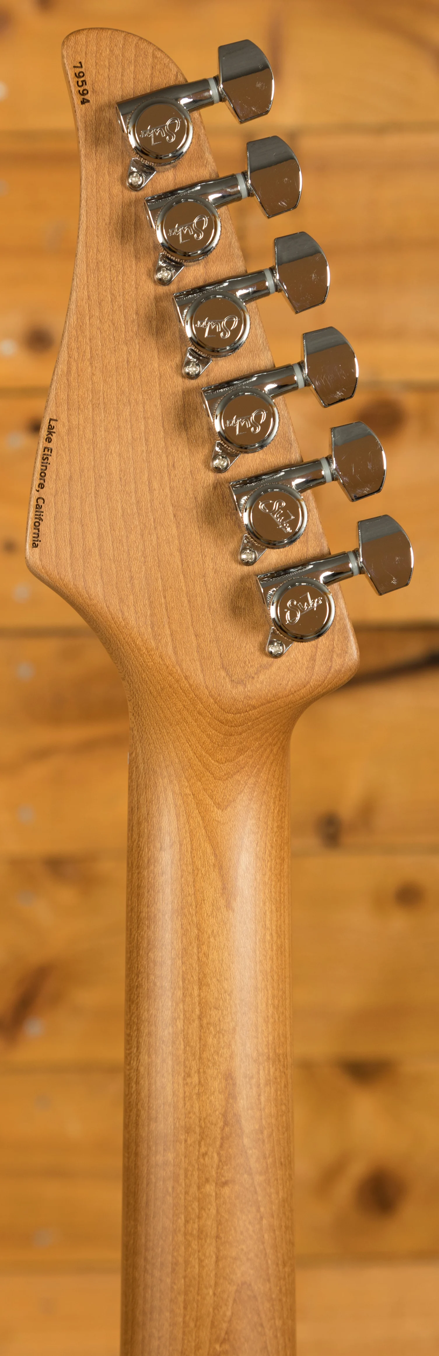 The Modern Plus is equipped with Suhr's Modern Elliptical neck profile with rolled edges, Pau Ferro fingerboard and a 10"- 14" radius it offers an extremely comfortable shape. The Maple neck is finished in satin, which provides the smooth feel of natural wood as well as protection from moisture. The 24 Jumbo stainless steel frets offer great string bending potential and long lasting playability while the sculpted heel allows for great access right up the neck.
