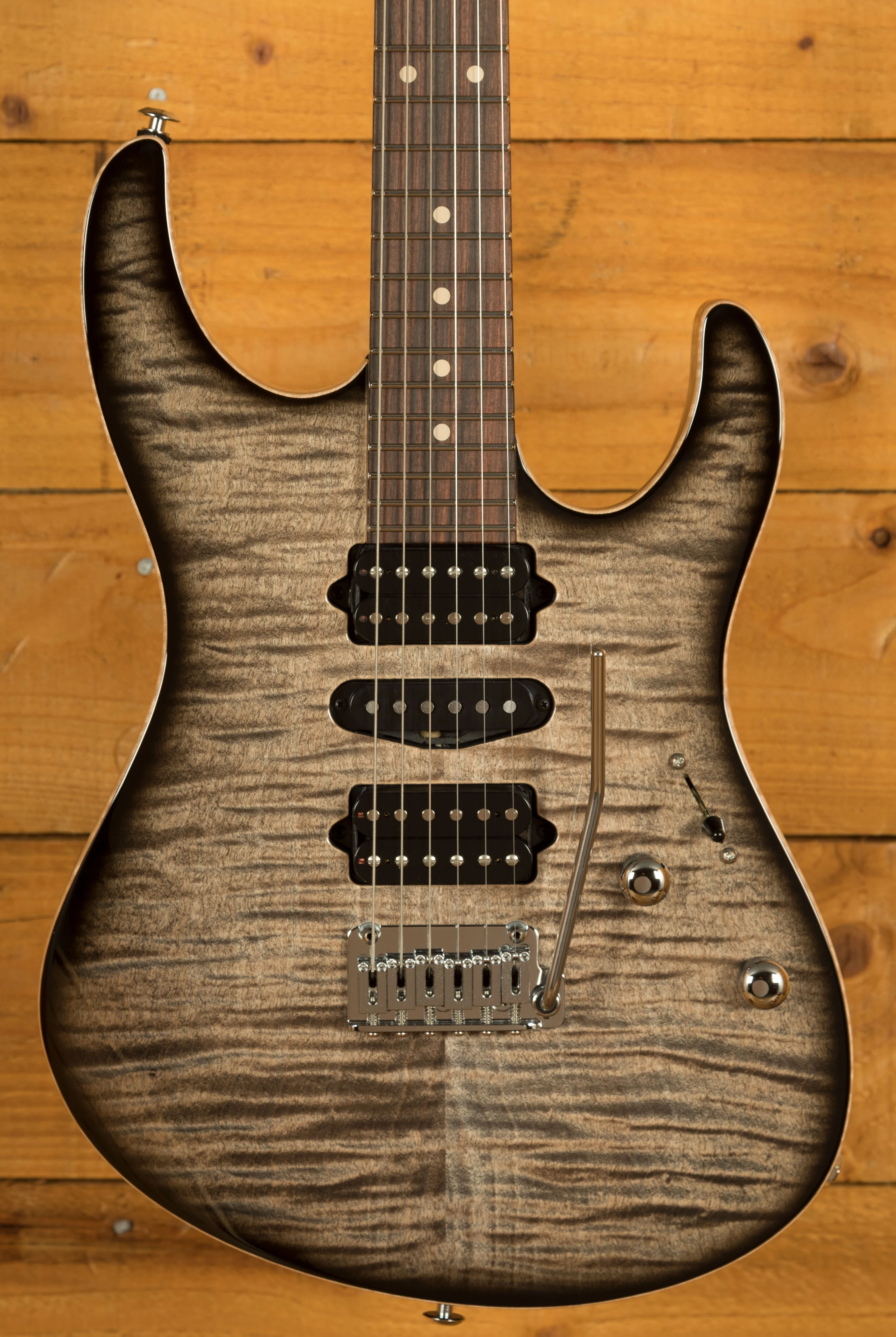 Hardware enthusiasts will appreciate the Gotoh 510 tremolo, featuring solid saddles and a steel tremolo block for supreme tone. Suhr Locking Tuners with an 18:1 gear ratio eliminate the need for a traditional string tree, improving tuning stability.