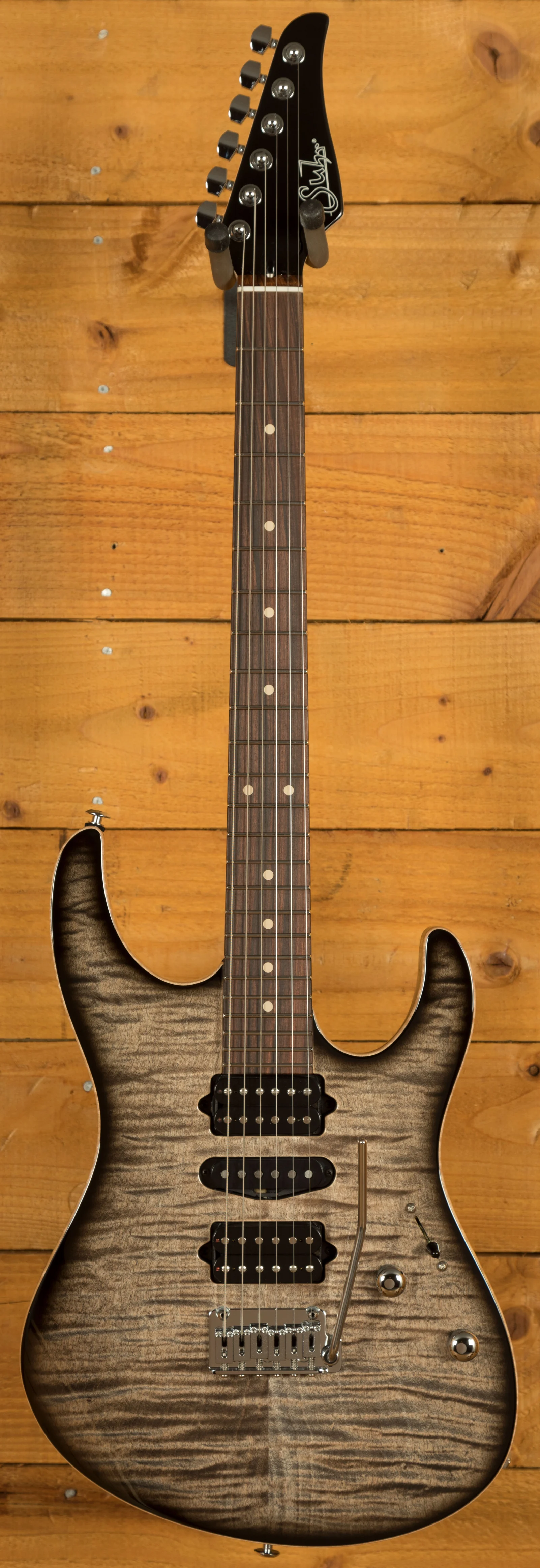 Introducing the Suhr Modern Pro HSH, a guitar that seamlessly combines legendary craftsmanship with cutting-edge features. The Maple neck, finished with a satin acrylic urethane for a smooth natural feel and moisture protection, showcases Suhr's dedication to quality. The Modern Elliptical neck profile, rolled edges, and a 10-14" compound fingerboard radius provide a substantial yet comfortable shape. The Jumbo Stainless Steel frets ensure silky smooth bending and long-lasting playability. Each Suhr guitar undergoes a PLEK fret dress, guaranteeing optimal string action, playability, and intonation.