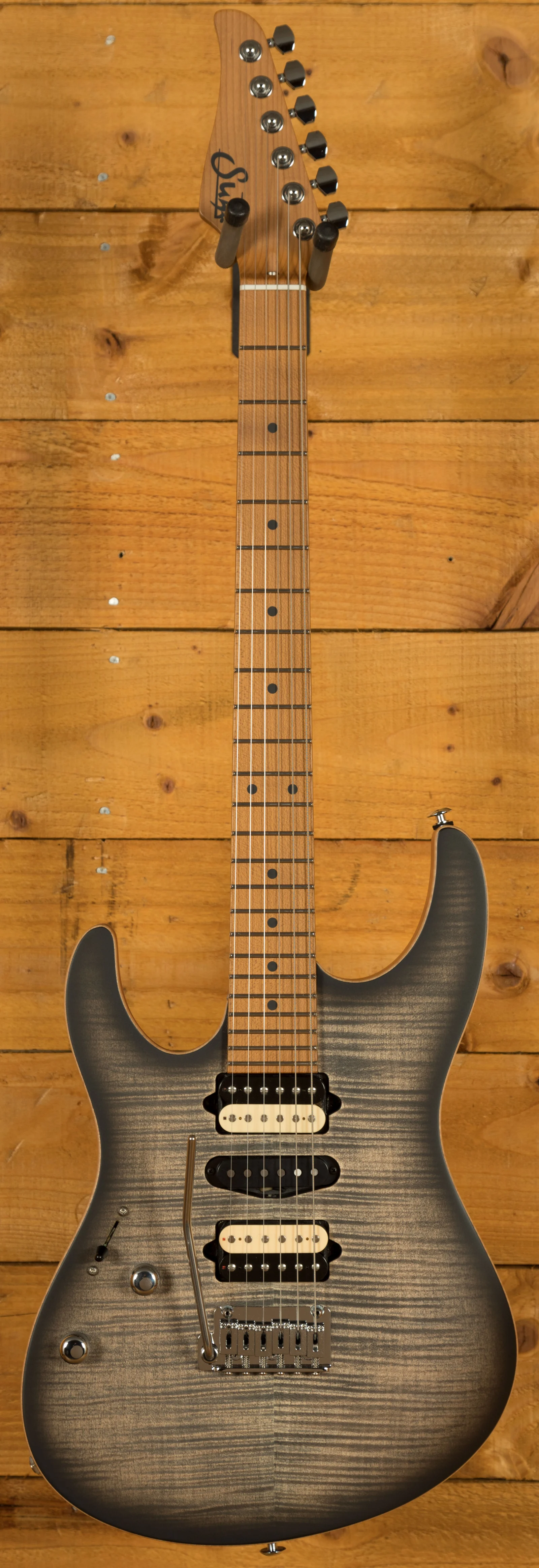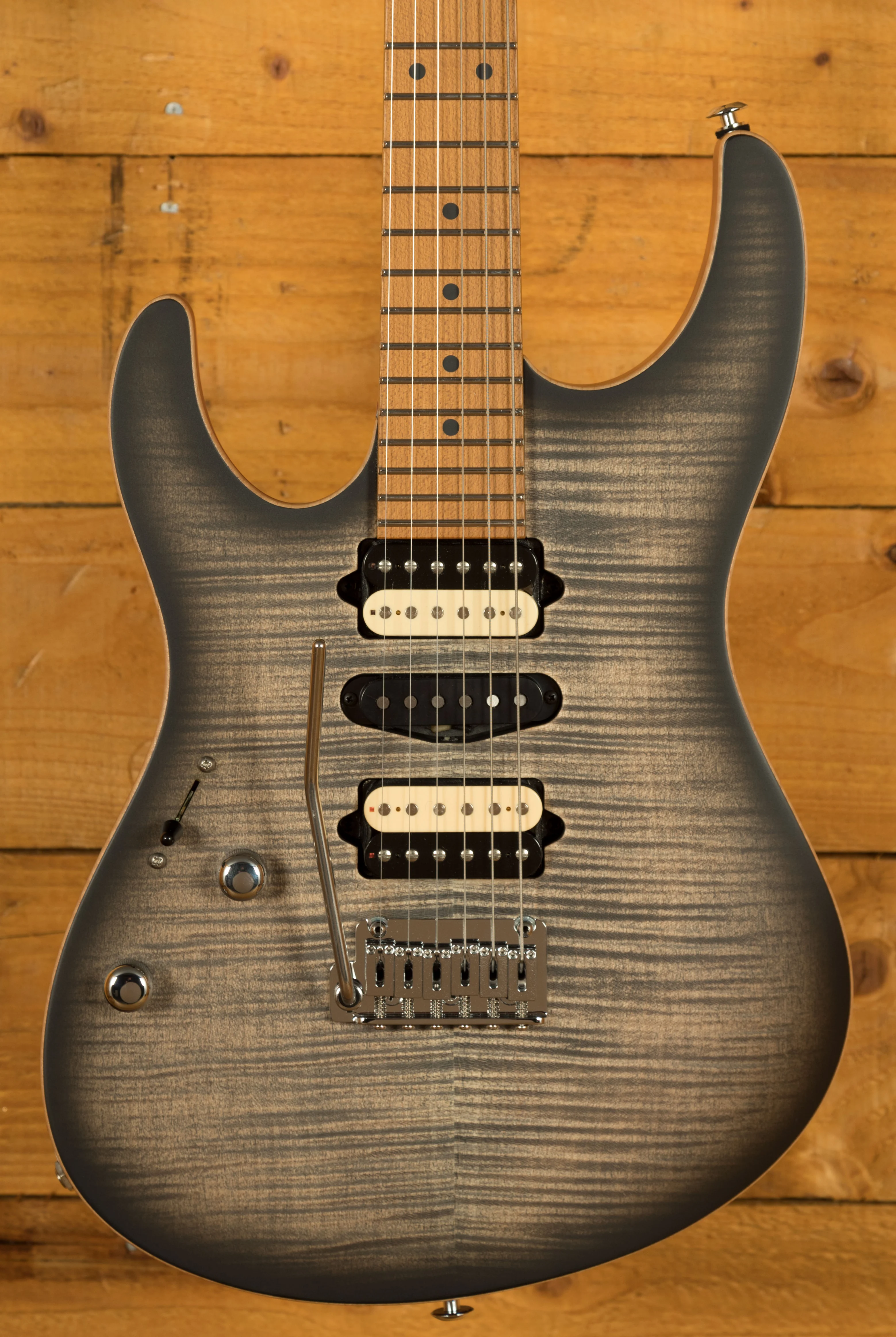 The Suhr Modern Satin Flame HSH in Satin Charcoal Burst is another great example of the continued high-quality work from Suhr, they have revamped this classic line to add an extra touch of finesse to this powerhouse line!