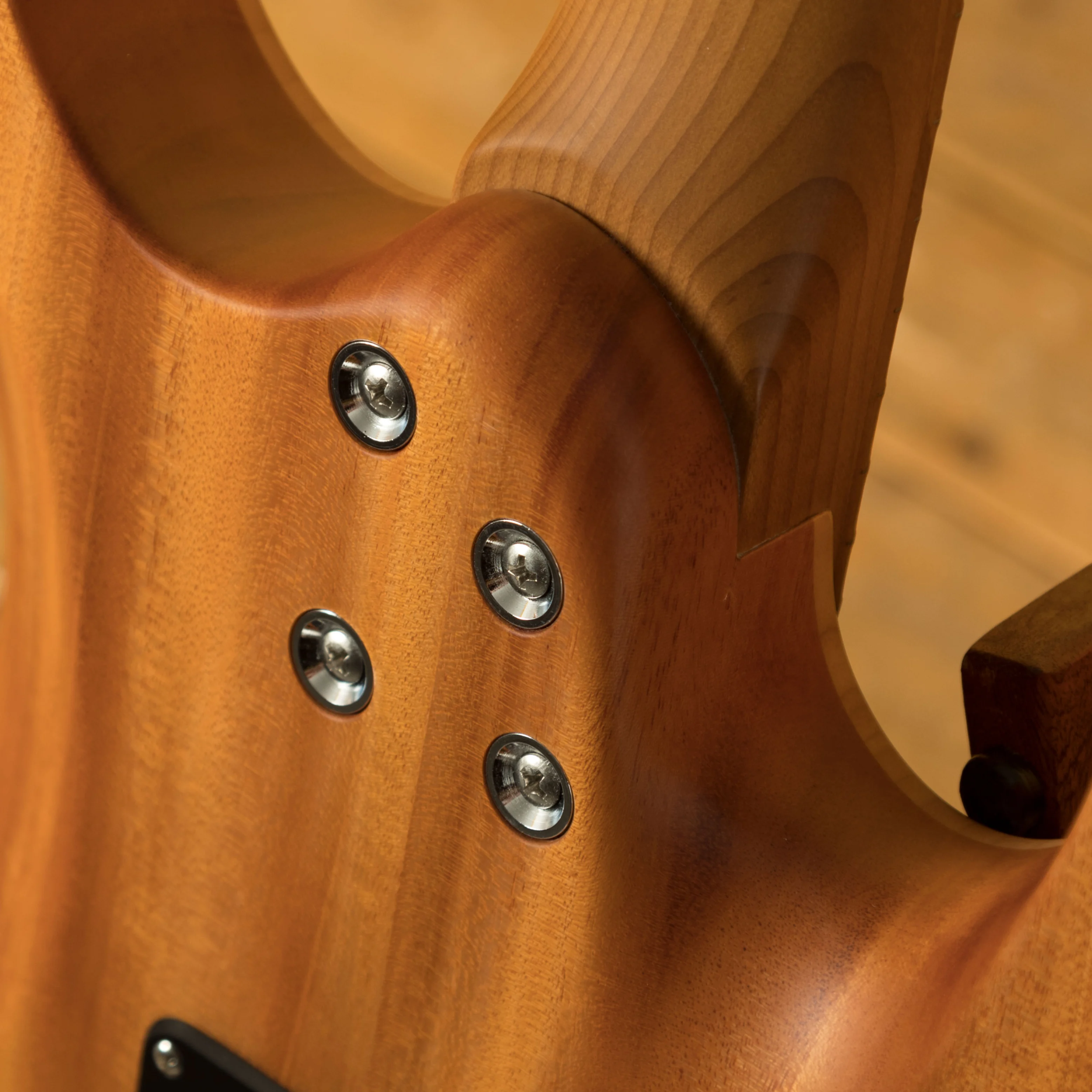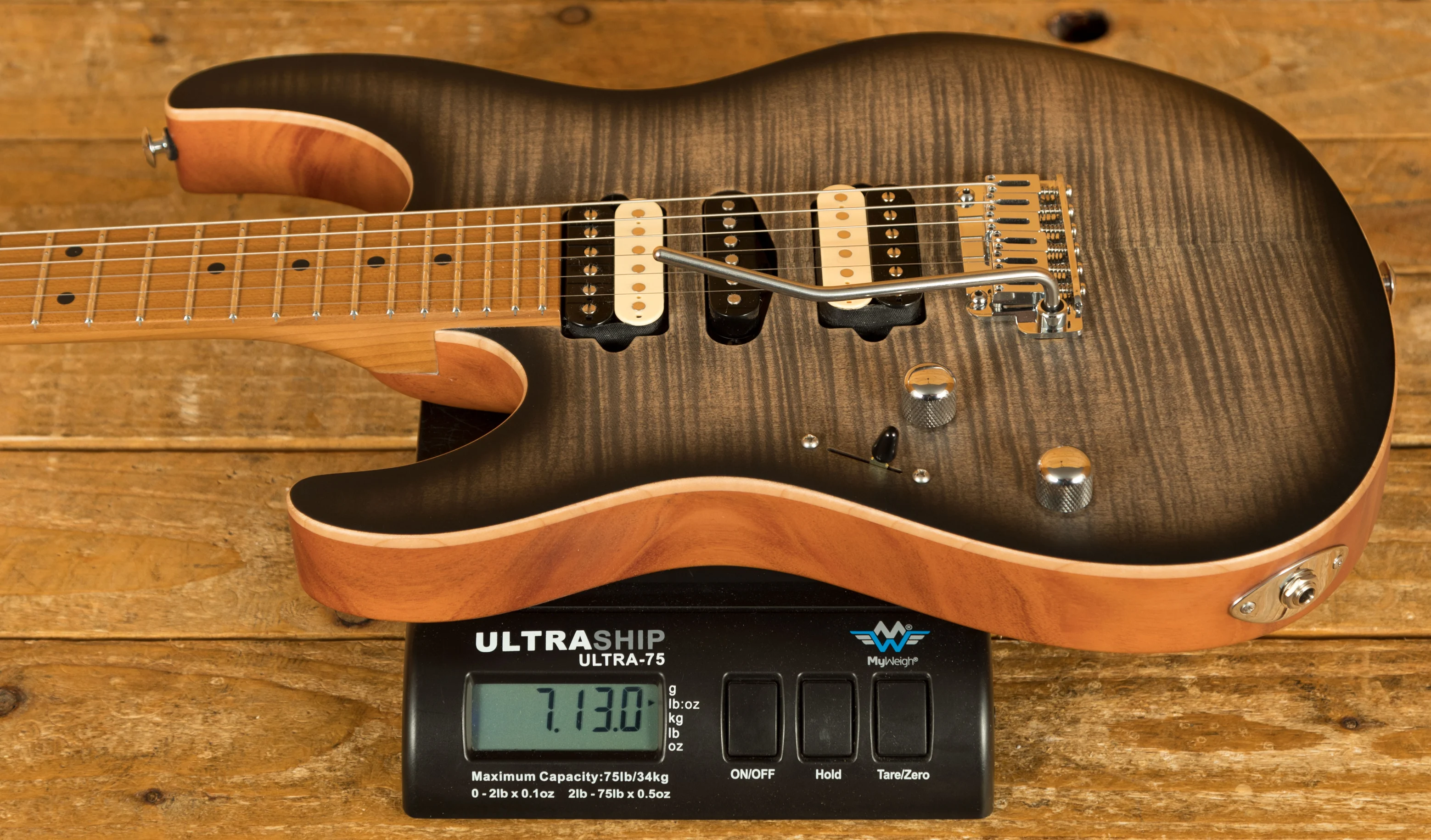 The Modern Satin range has a stunning Mahogany body, tonally superior and light weight it's a great choice of tone wood. Paired with a Flame Maple top you get the all time classic tone wood partnership.