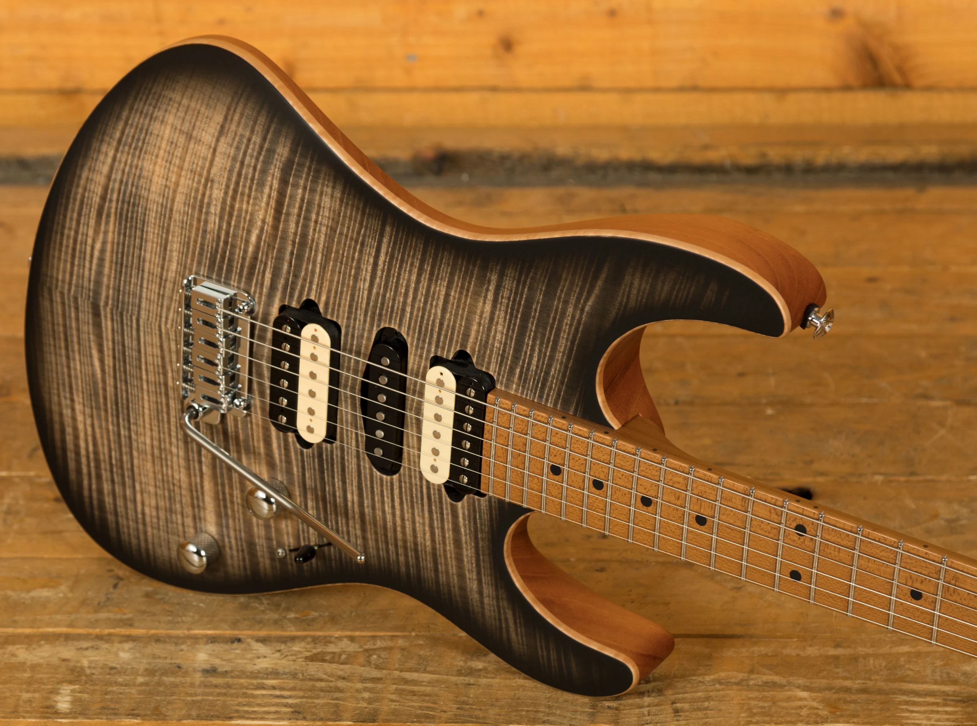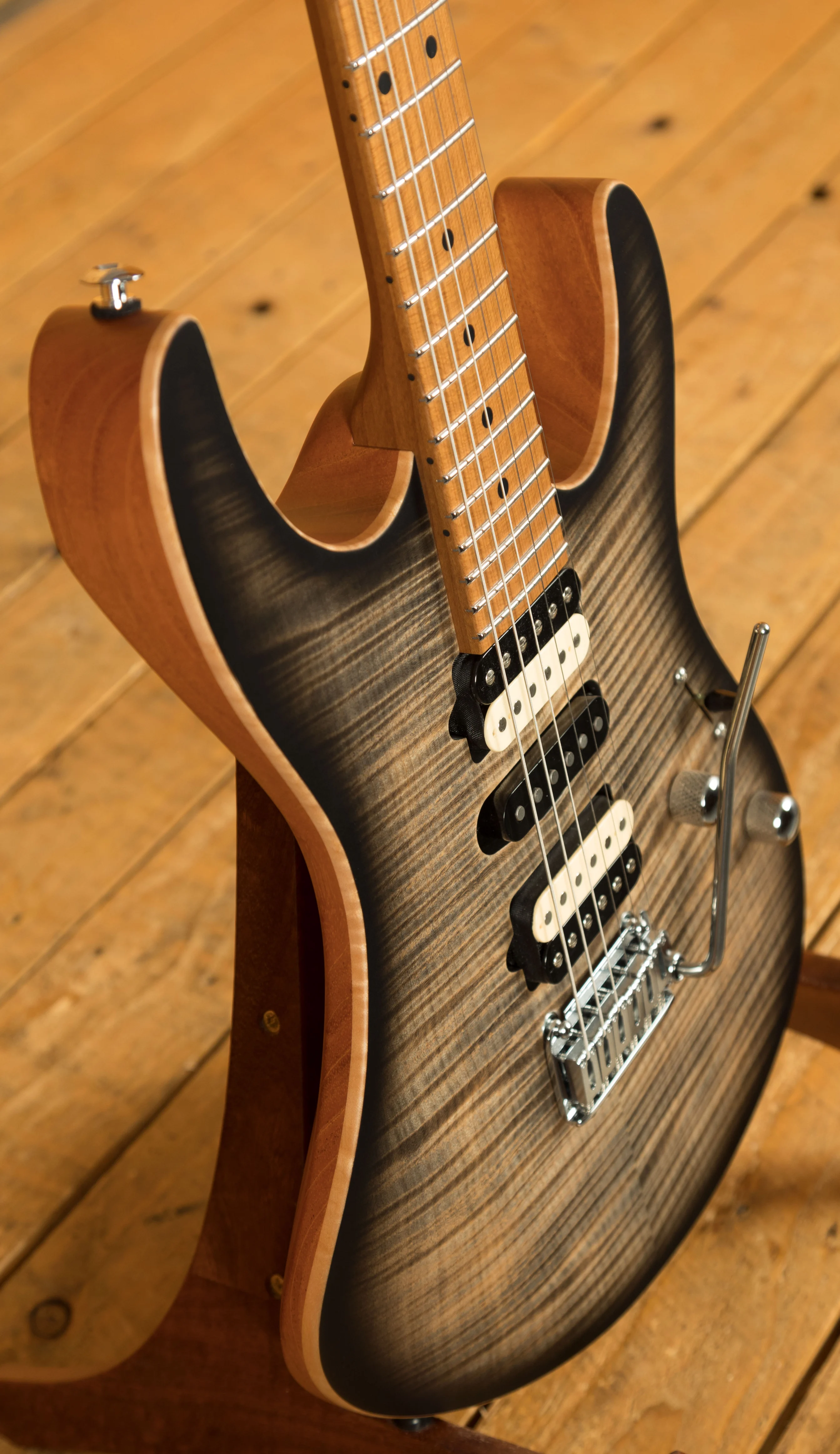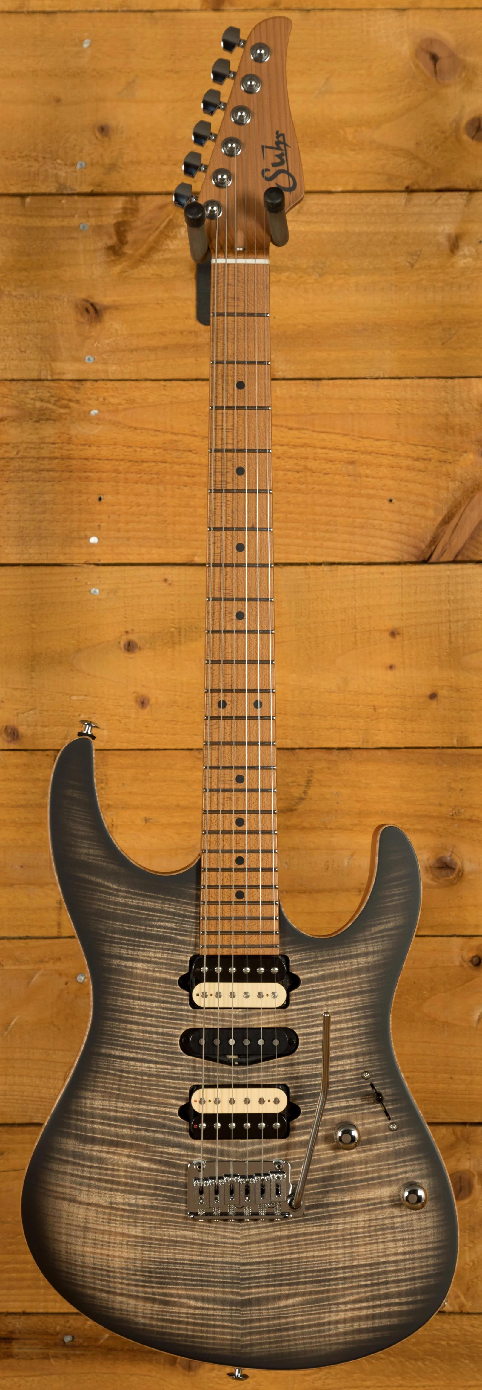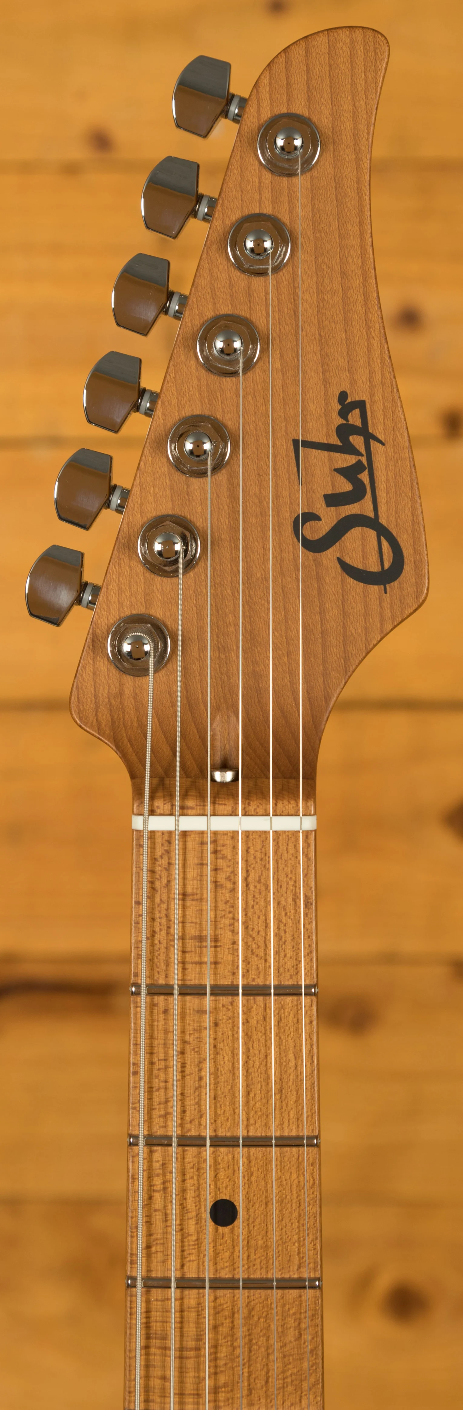 The Modern Satin is equipped with Suhr's Modern Elliptical neck profile with rolled edges and a 10"-14" compound radius it offers an extremely comfortable shape. The Roasted Maple neck is finished in satin, which provides the smooth feel of natural wood as well as protection from moisture.