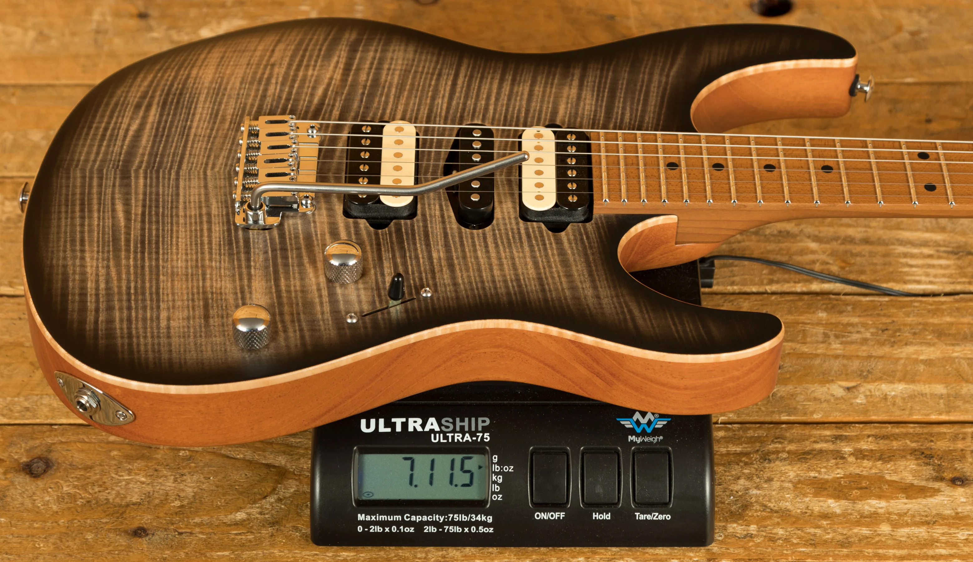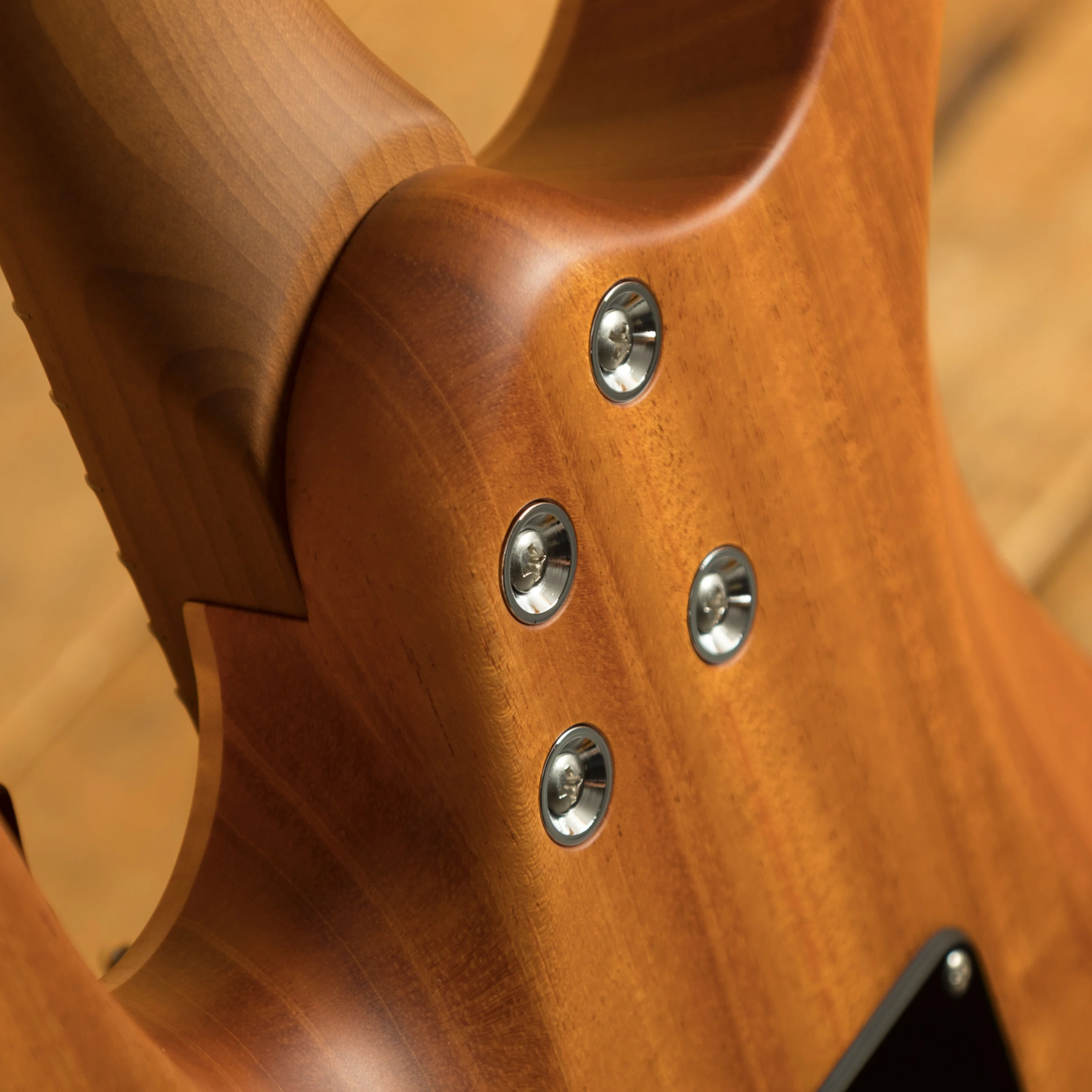The Modern Satin range has a stunning Mahogany body, tonally superior and light weight it's a great choice of tone wood. Paired with a Flame Maple top you get the all time classic tone wood partnership.