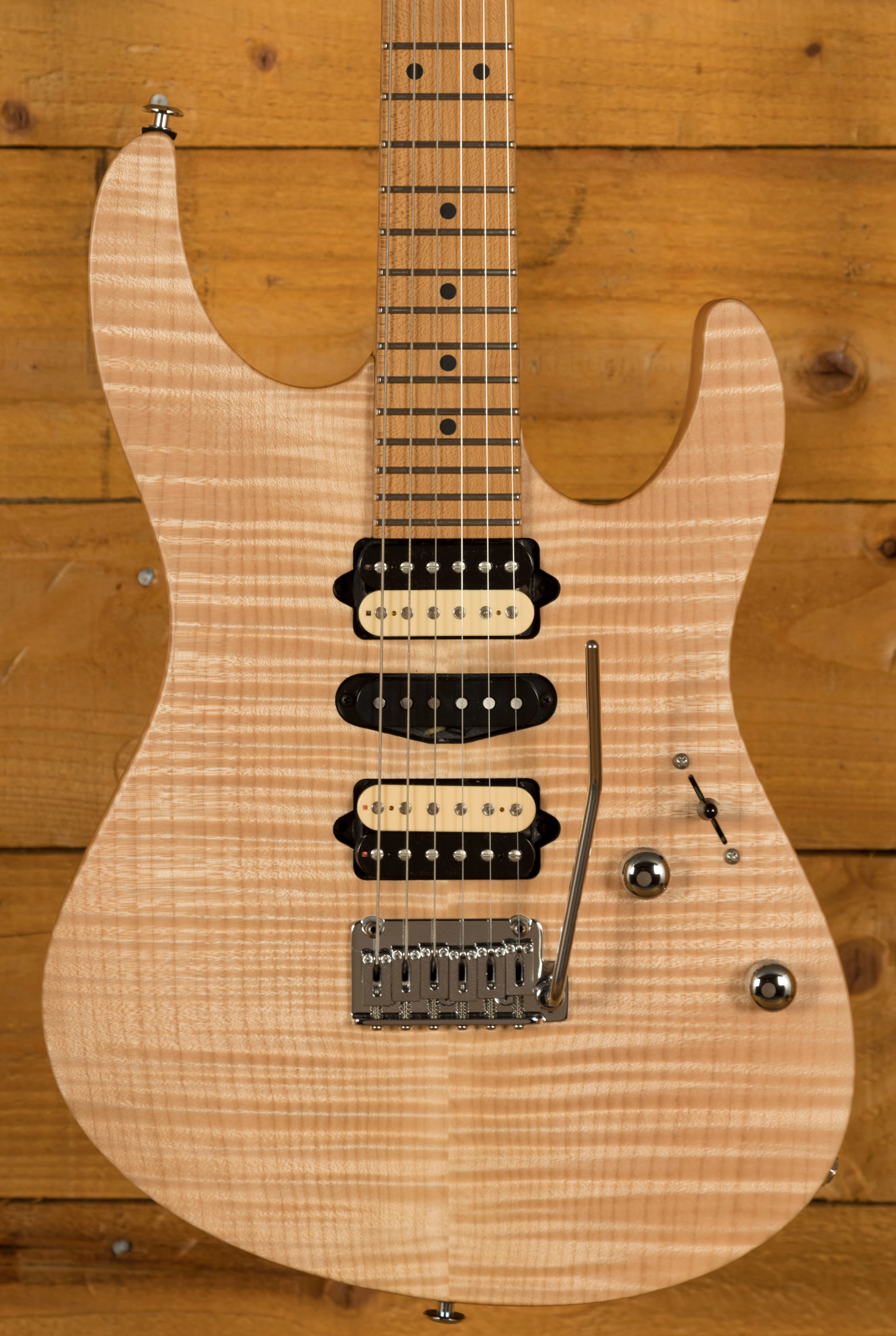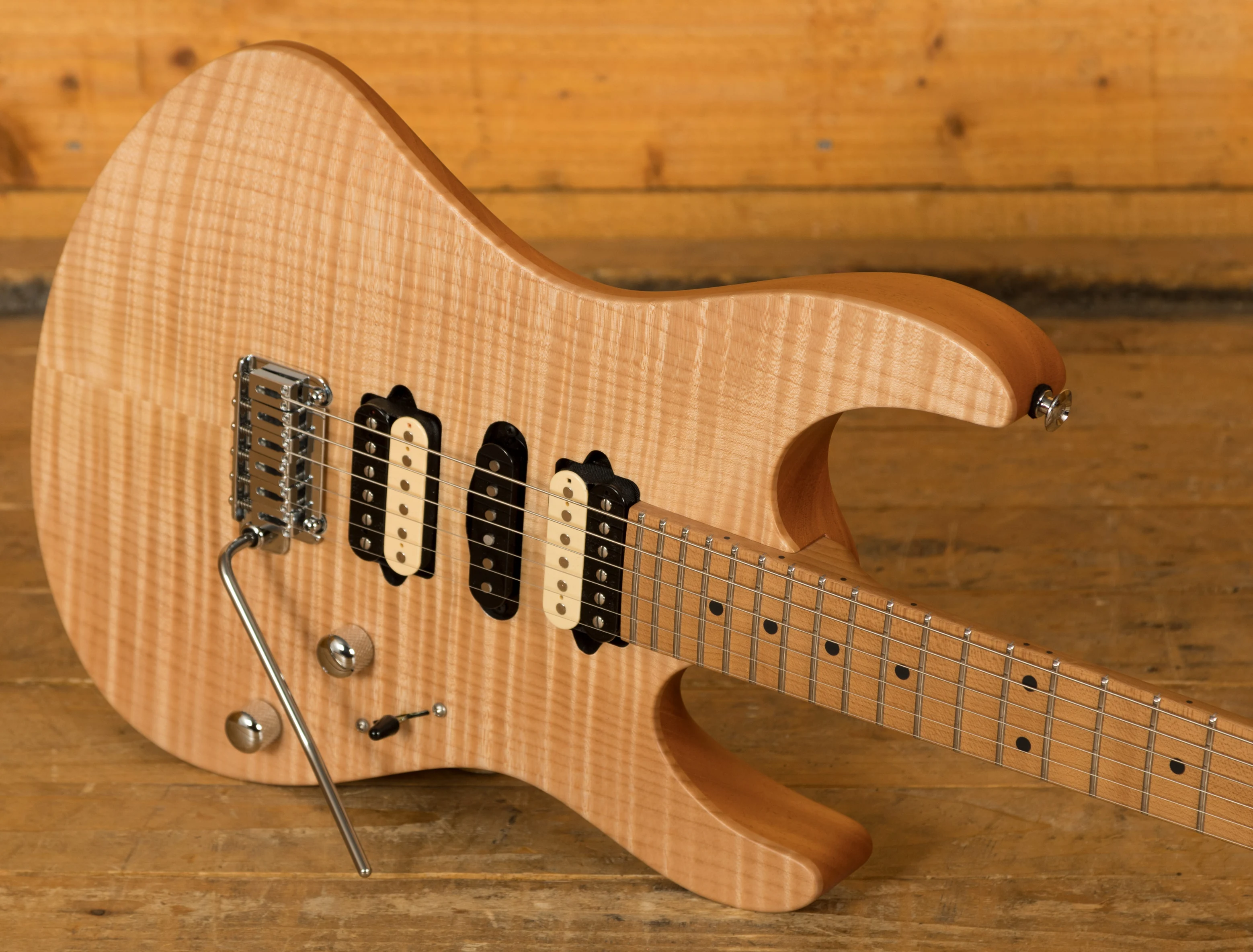The Suhr Modern Satin Flame HSH in Satin Natural is another great example of the continued high-quality work from Suhr. New for 2020, Suhr have revamped this classic line to add an extra touch of finesse to this powerhouse line!