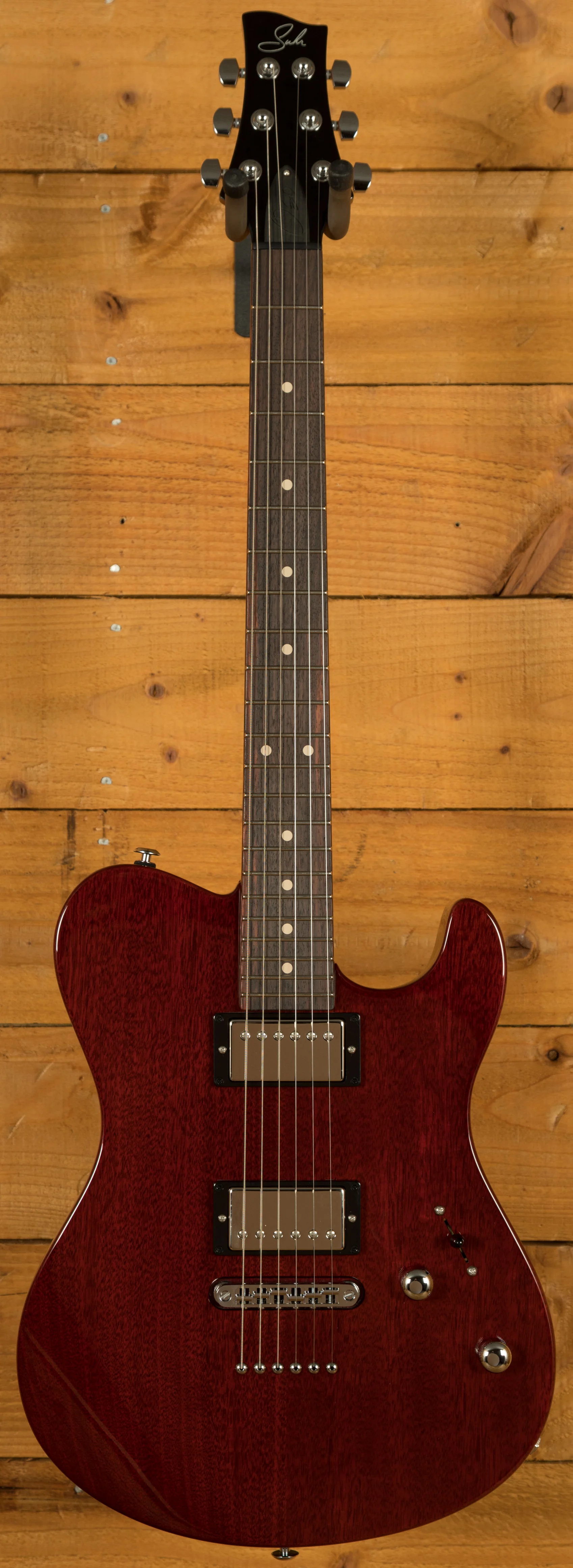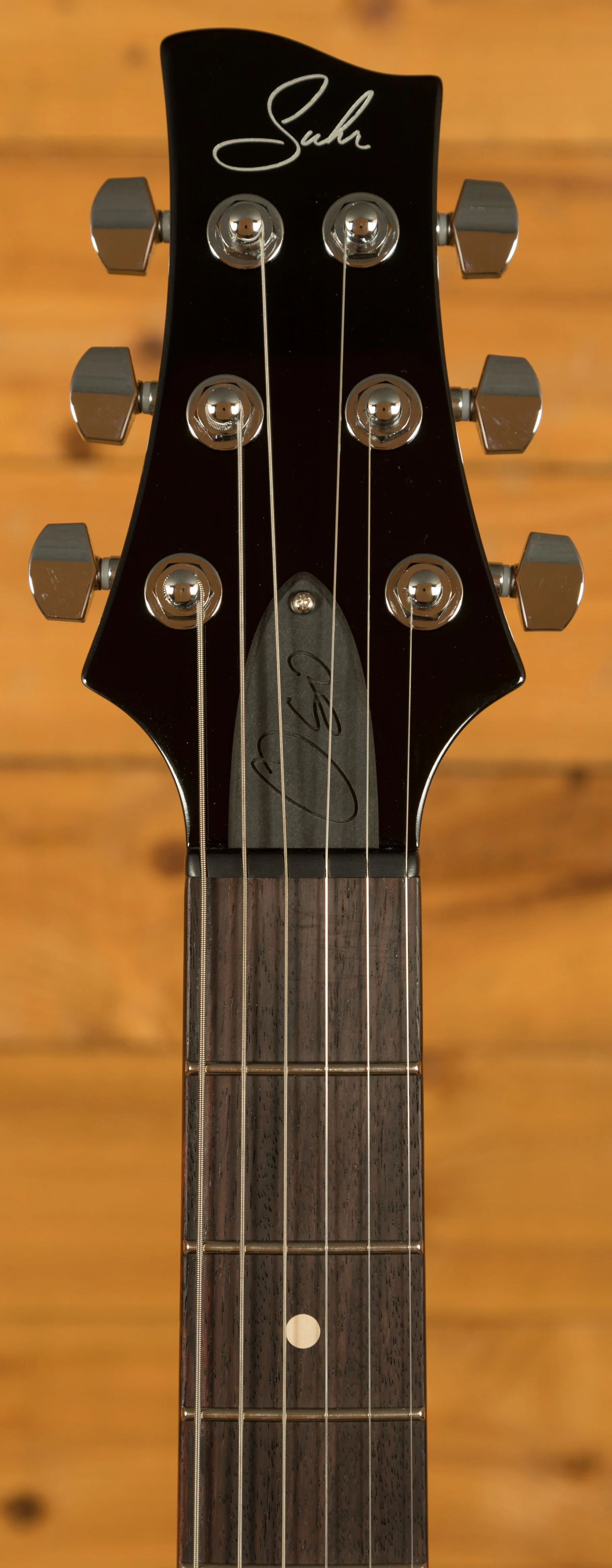 The Suhr Oso is a newly developed short-scale electric guitar designed to offer a comfortable playing experience, precise performance, and reliable build quality. It expands on the idea of a compact T-style instrument and delivers a modern, streamlined feel that appeals to a wide range of players. Its 3x3 tuning layout, adapted from the Suhr Aura, works with the subtly angled headstock to improve tuning stability and create a balanced, familiar feel in the hand.
